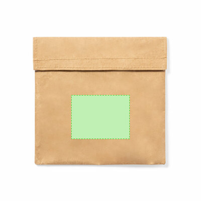 Linie Natur Thermo Lunchbox. Aussen aus widerstandsfähigem, recyceltem, laminiertem Papier und innen aus isothermischem PEVA. Mit Klettverschluss.