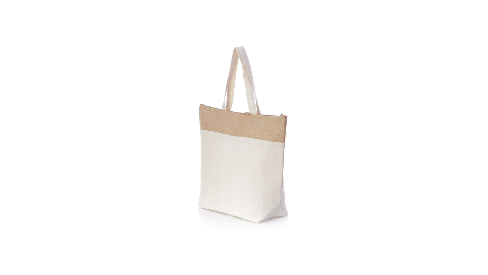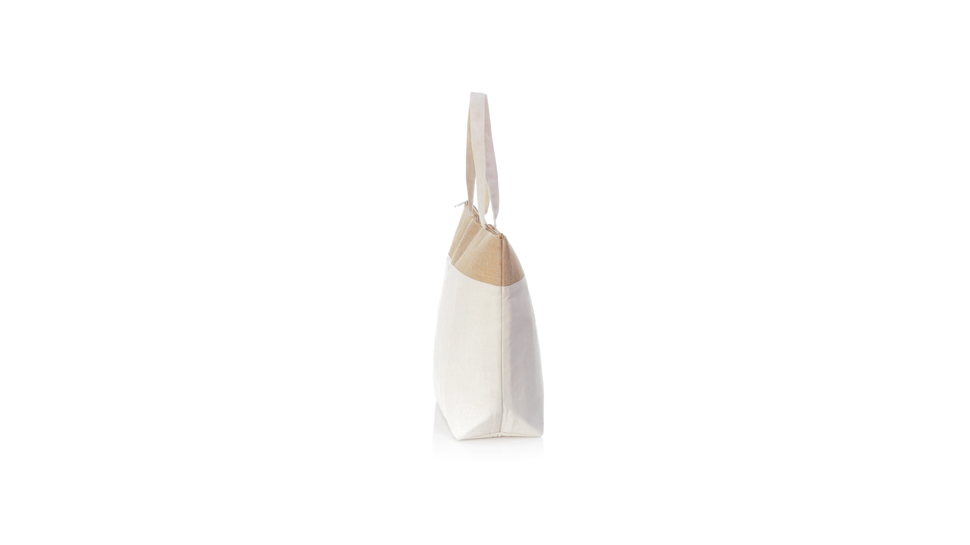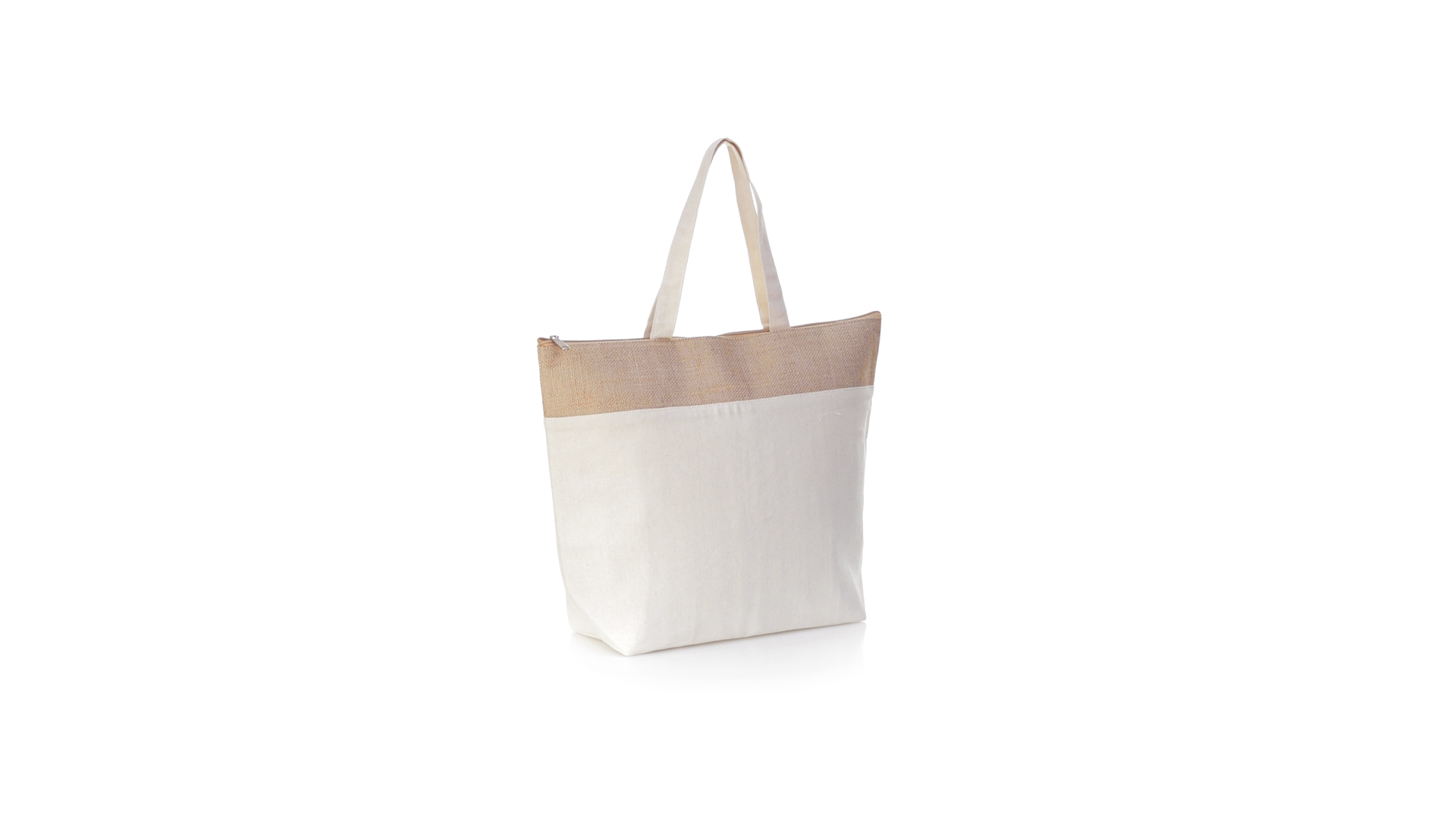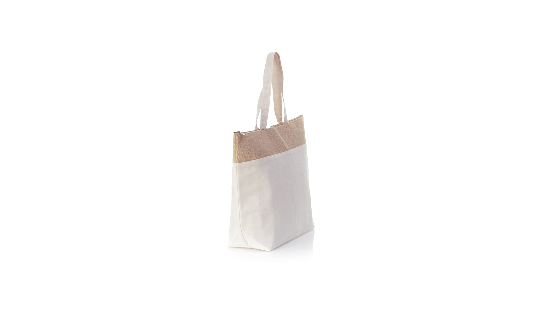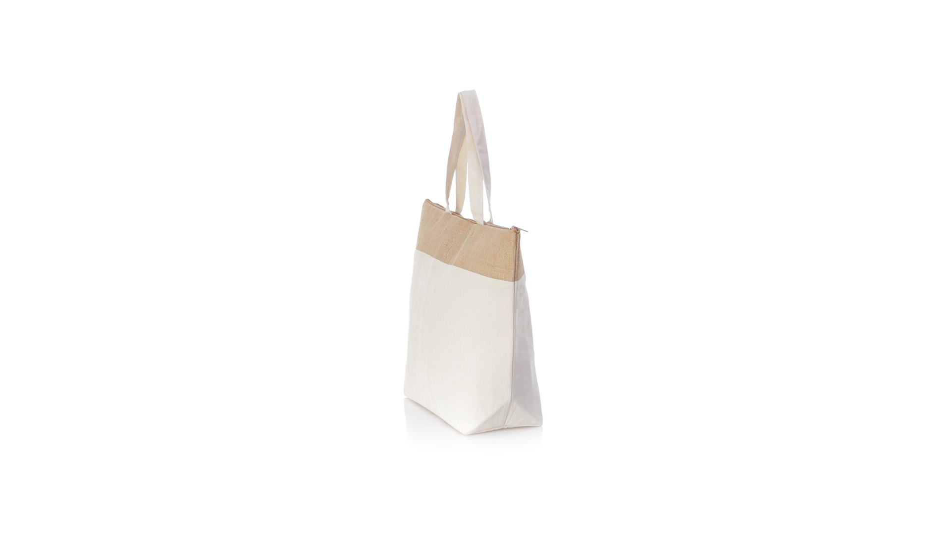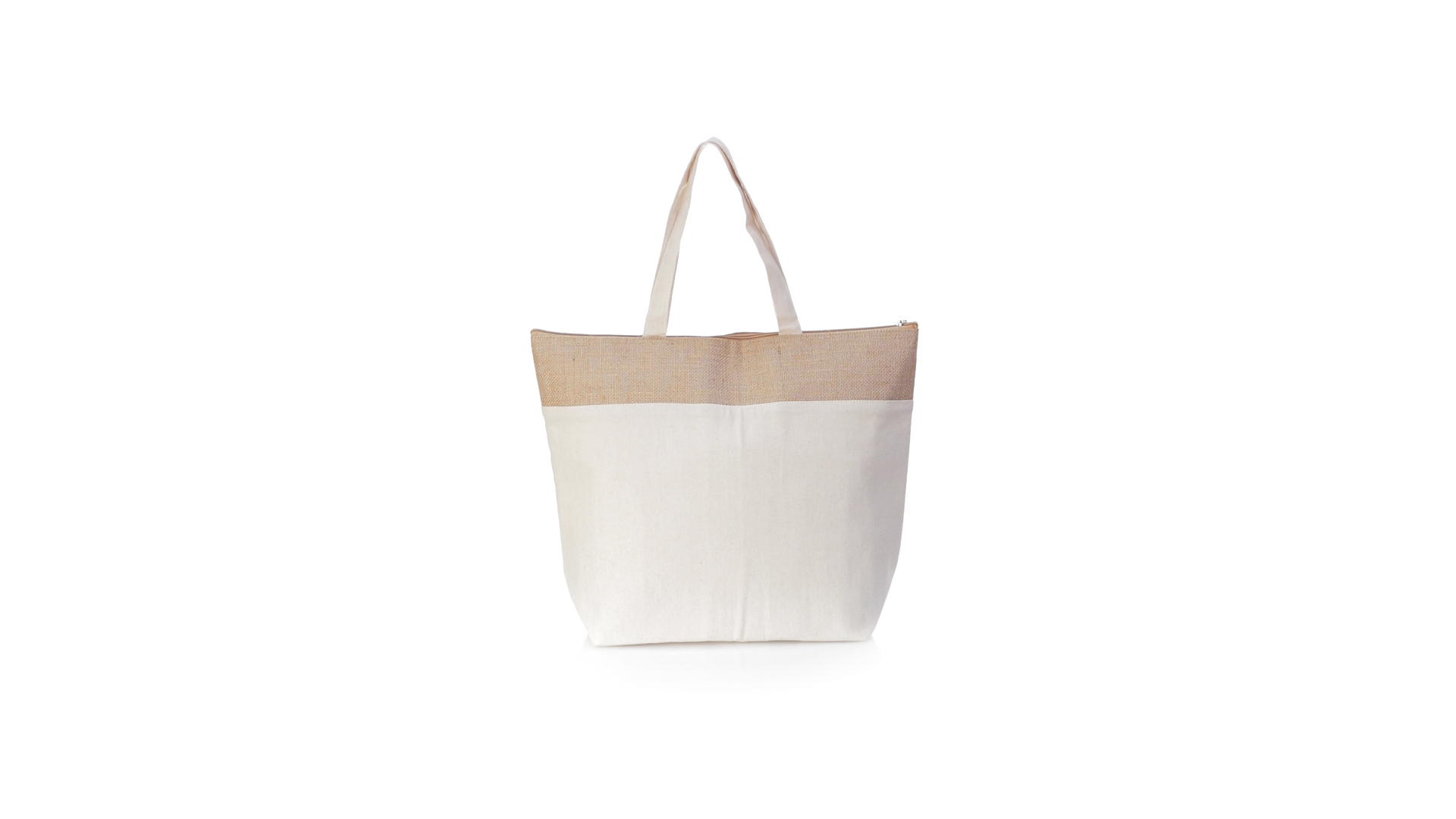 Thermotasche aus widerstandsfähigem Baumwollmaterial von 225g / m2, mit laminiertem Juteoberteil und Baumwollgriffen. Hauptfach mit Reissverschluss und Metallschieber, mit isothermer Aluminium-Innenausstattung. Genähtes Finish, mit verstärkten mittleren Griffen und einer Widerstandsfähigkeit von bis zu 7 kg.