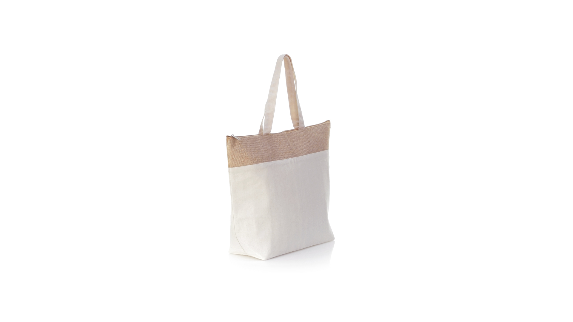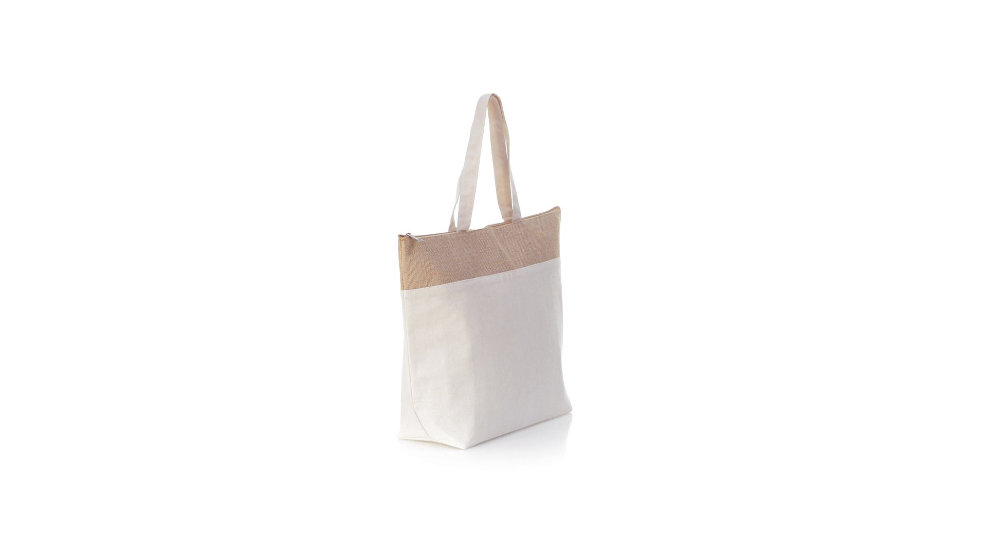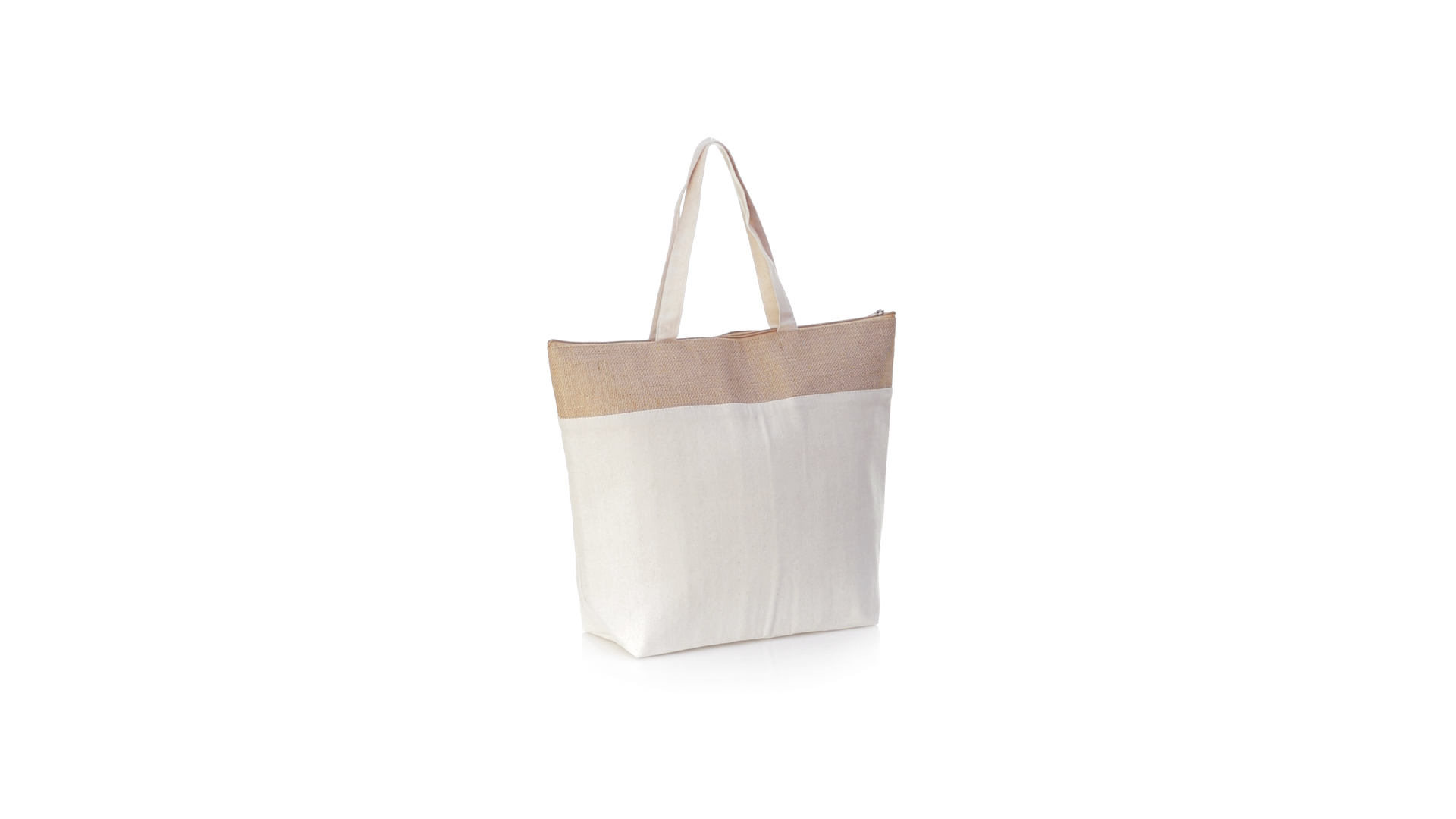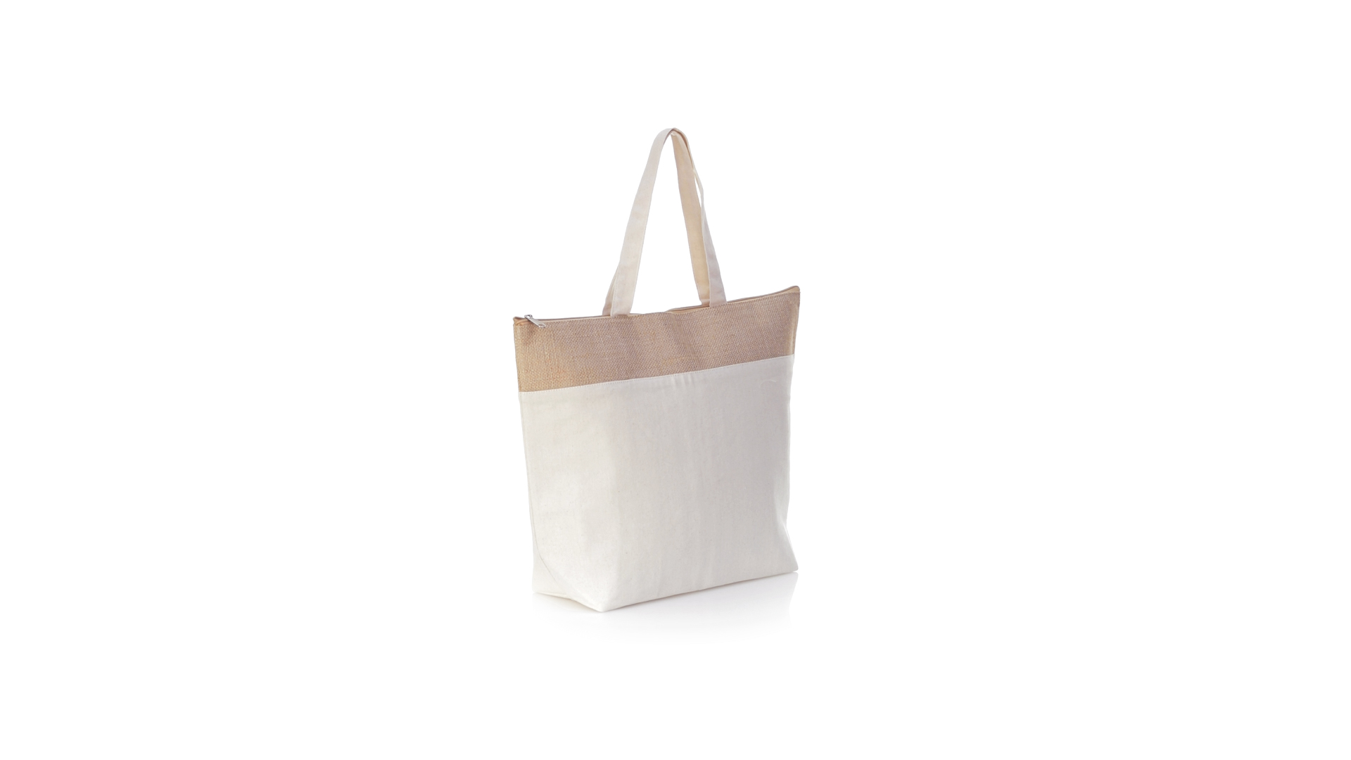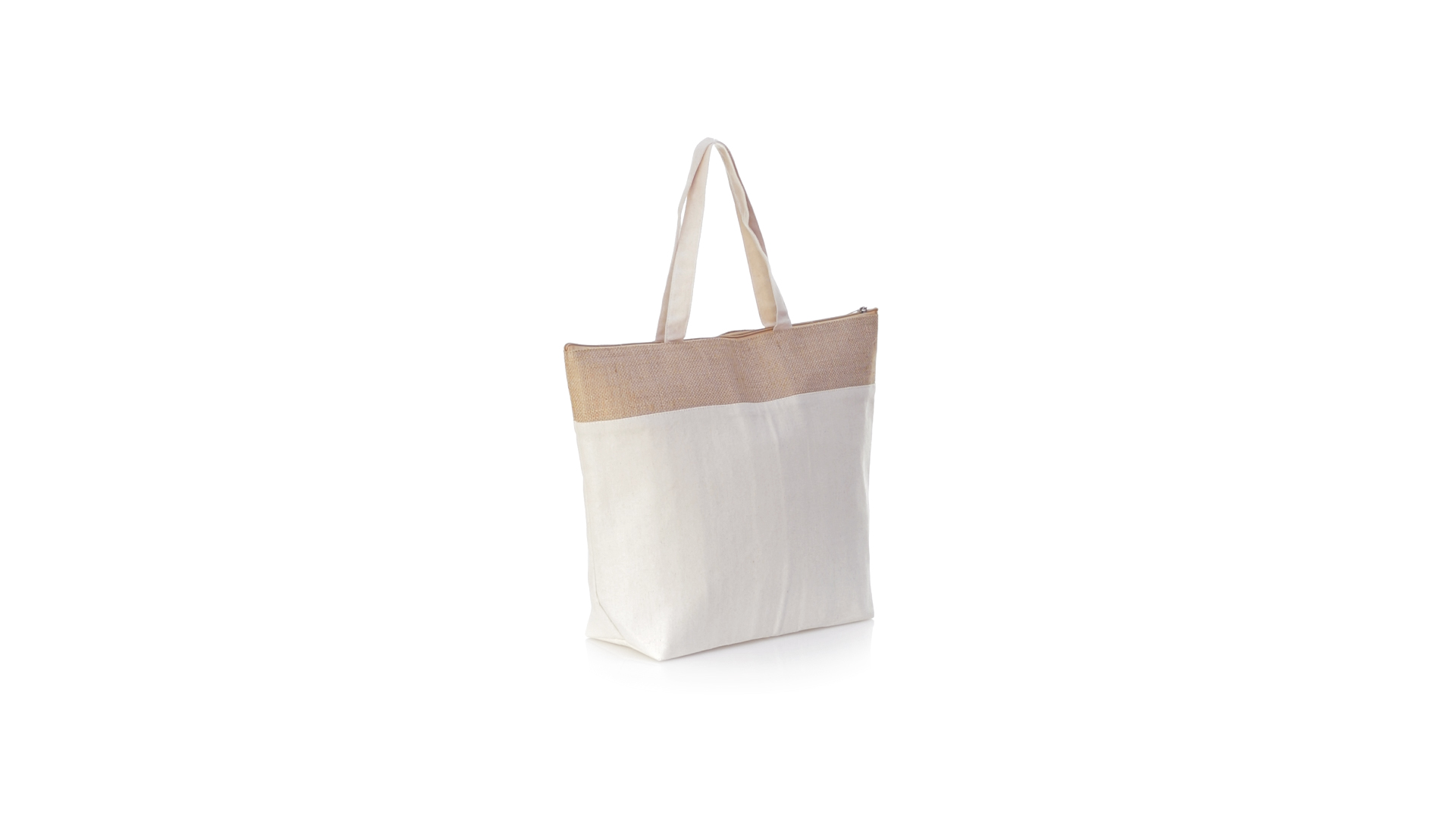 Thermotasche aus widerstandsfähigem Baumwollmaterial von 225g / m2, mit laminiertem Juteoberteil und Baumwollgriffen. Hauptfach mit Reissverschluss und Metallschieber, mit isothermer Aluminium-Innenausstattung. Genähtes Finish, mit verstärkten mittleren Griffen und einer Widerstandsfähigkeit von bis zu 7 kg.