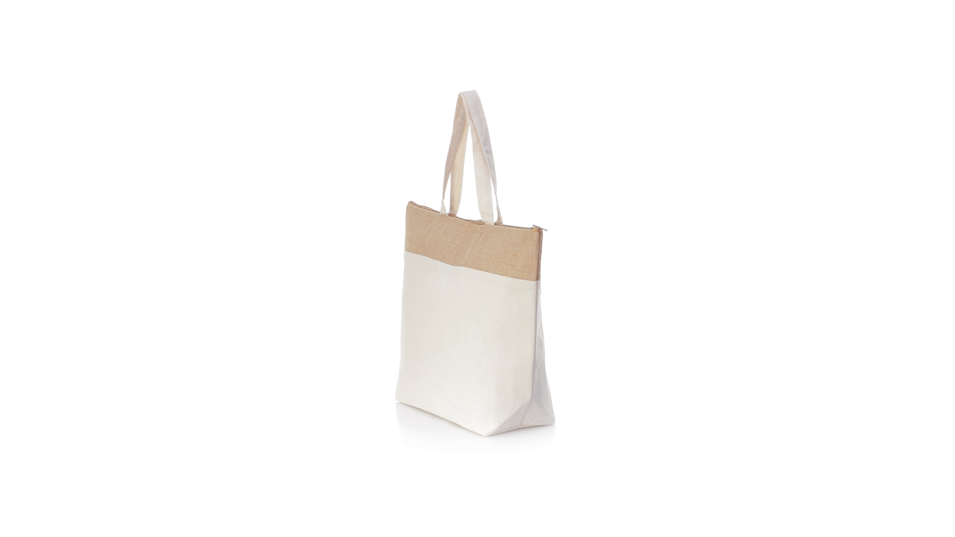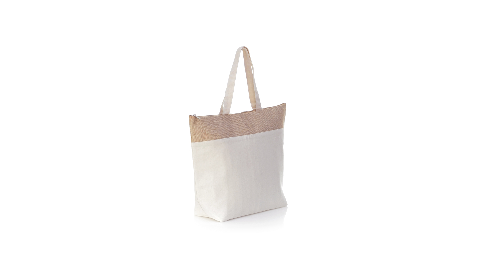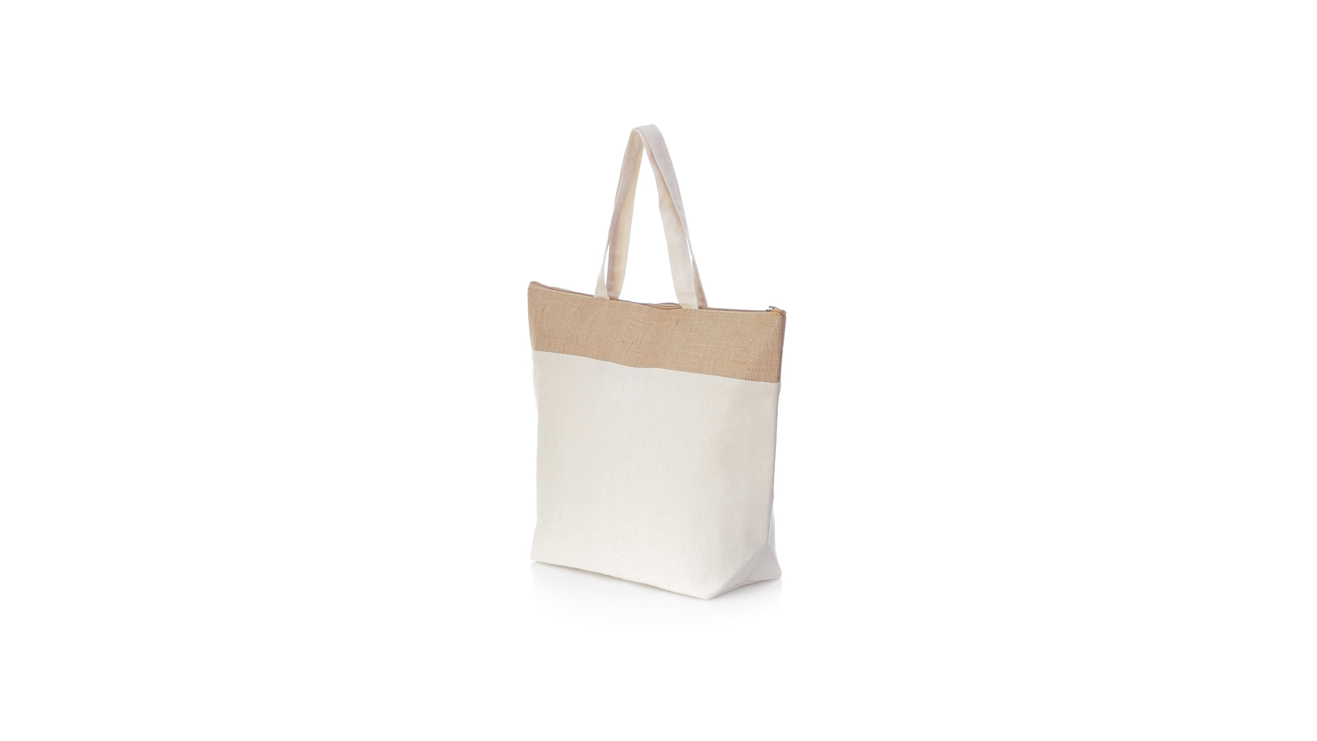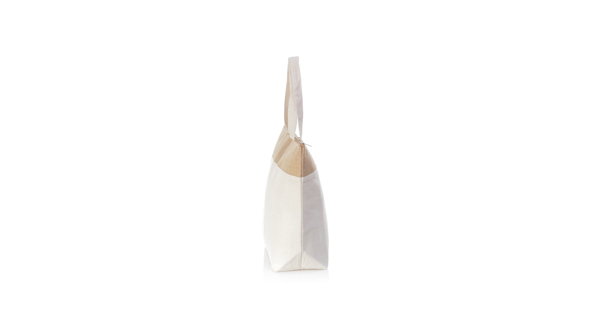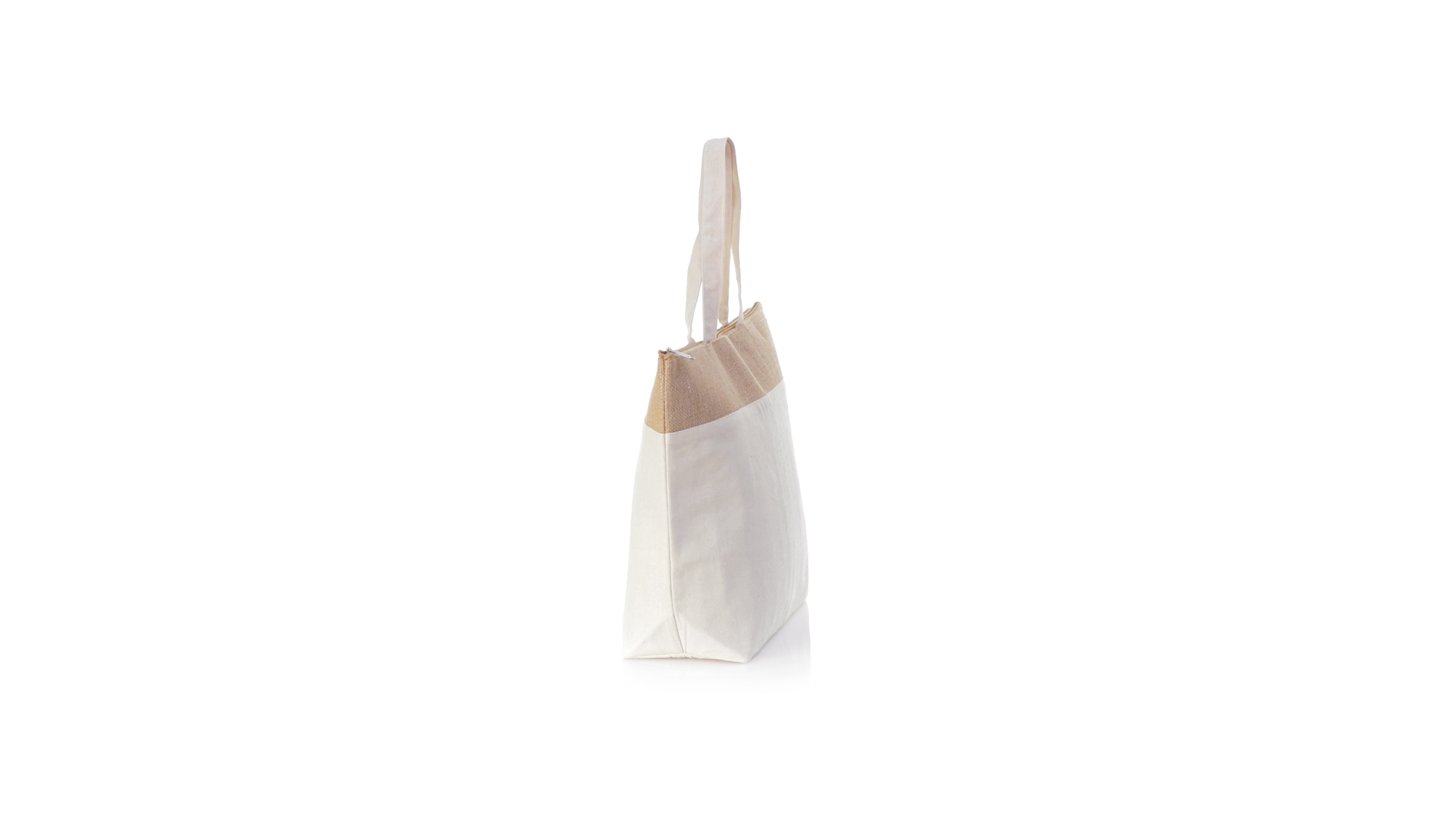 Thermotasche aus widerstandsfähigem Baumwollmaterial von 225g / m2, mit laminiertem Juteoberteil und Baumwollgriffen. Hauptfach mit Reissverschluss und Metallschieber, mit isothermer Aluminium-Innenausstattung. Genähtes Finish, mit verstärkten mittleren Griffen und einer Widerstandsfähigkeit von bis zu 7 kg.