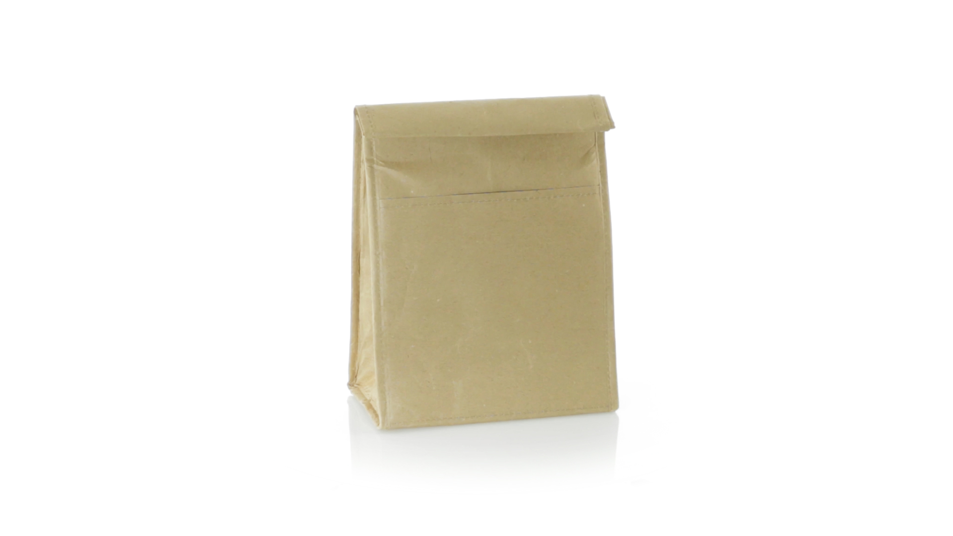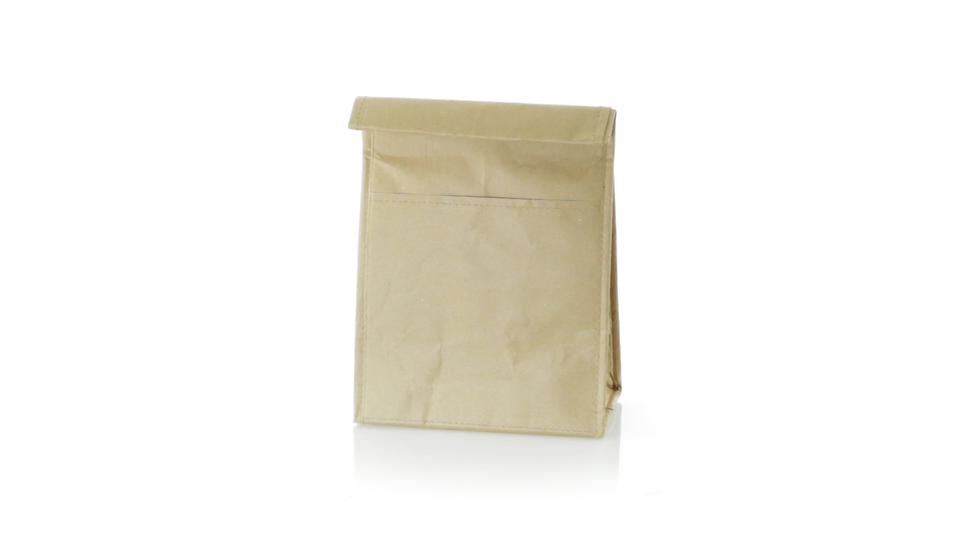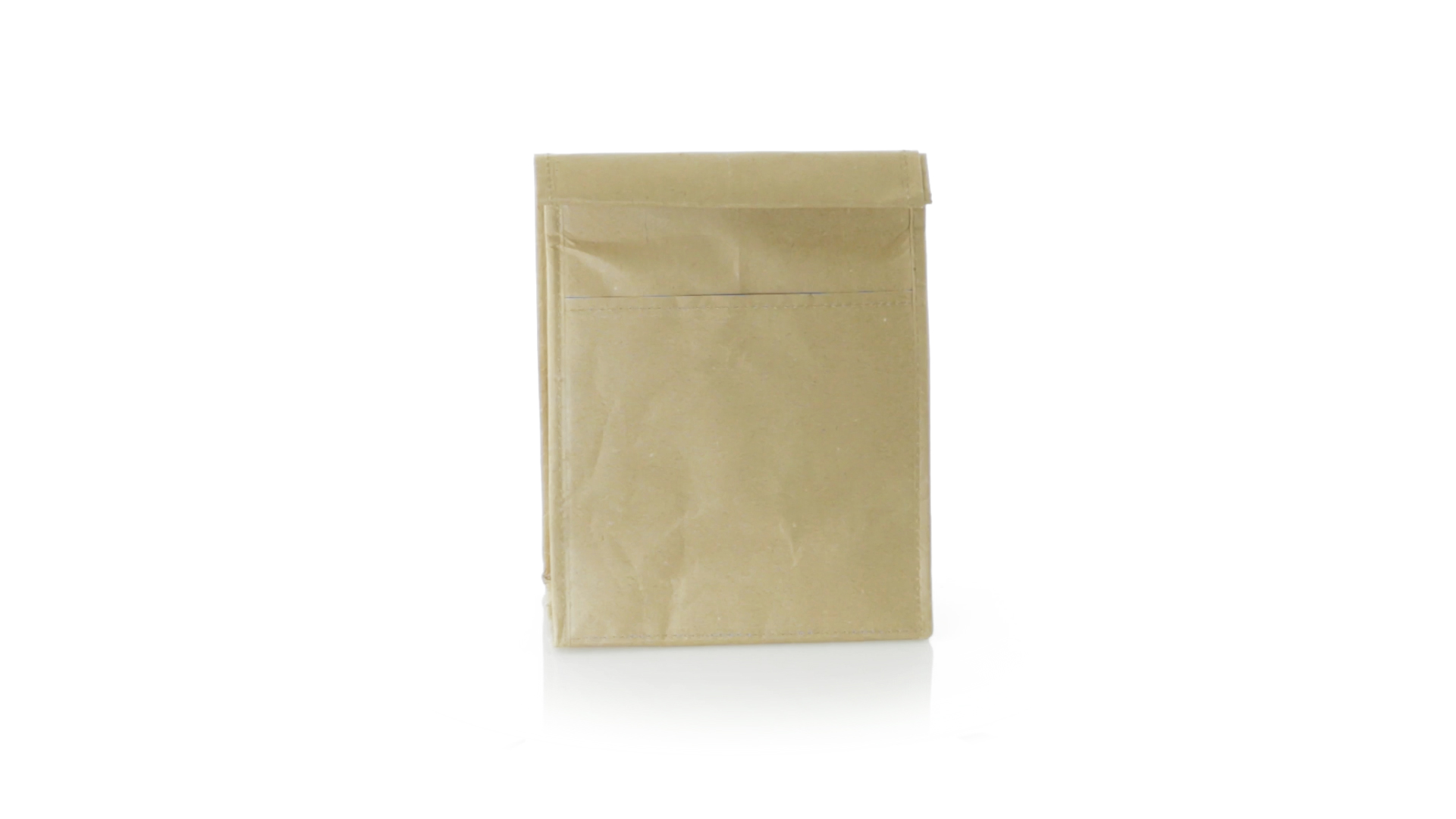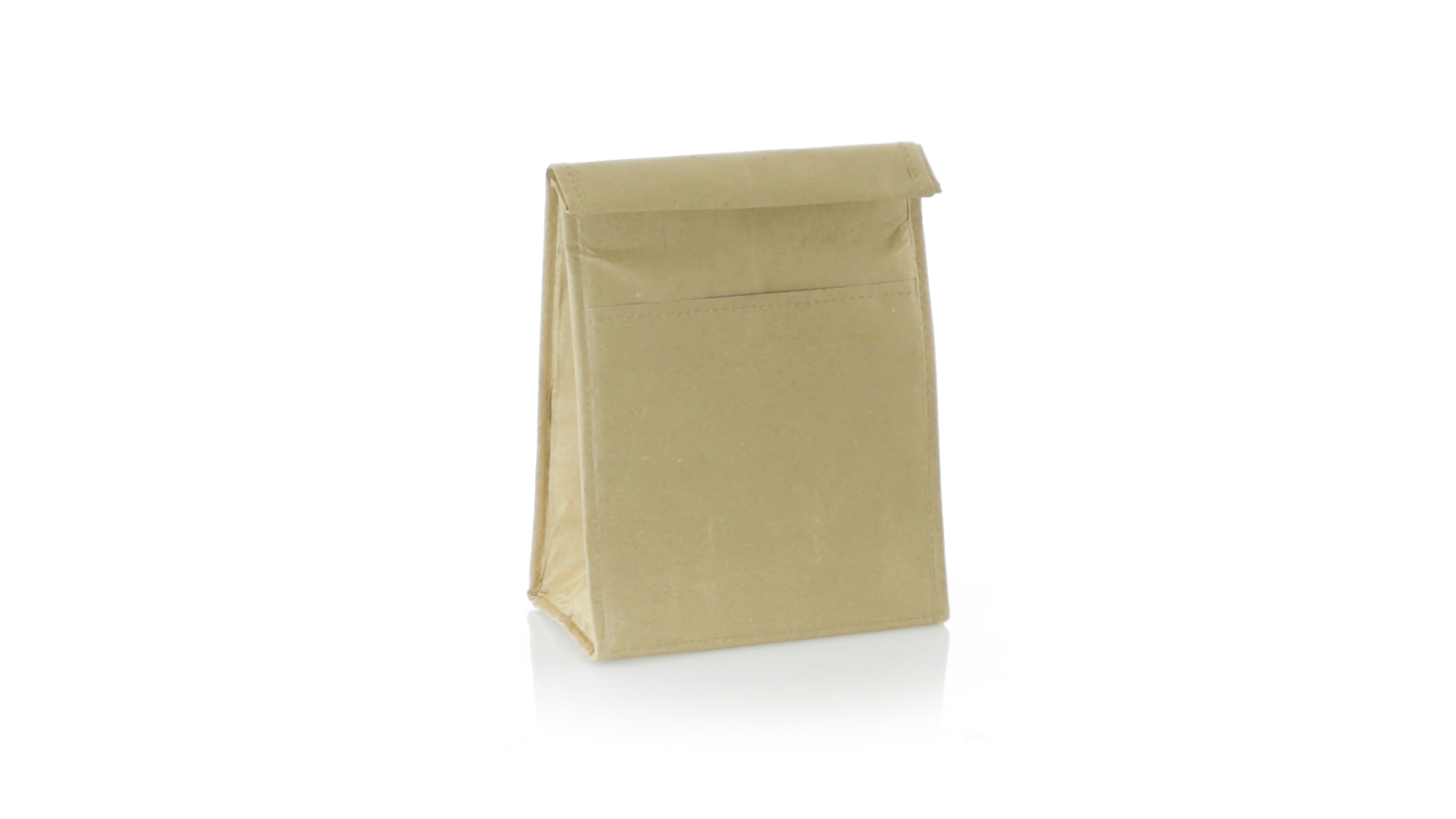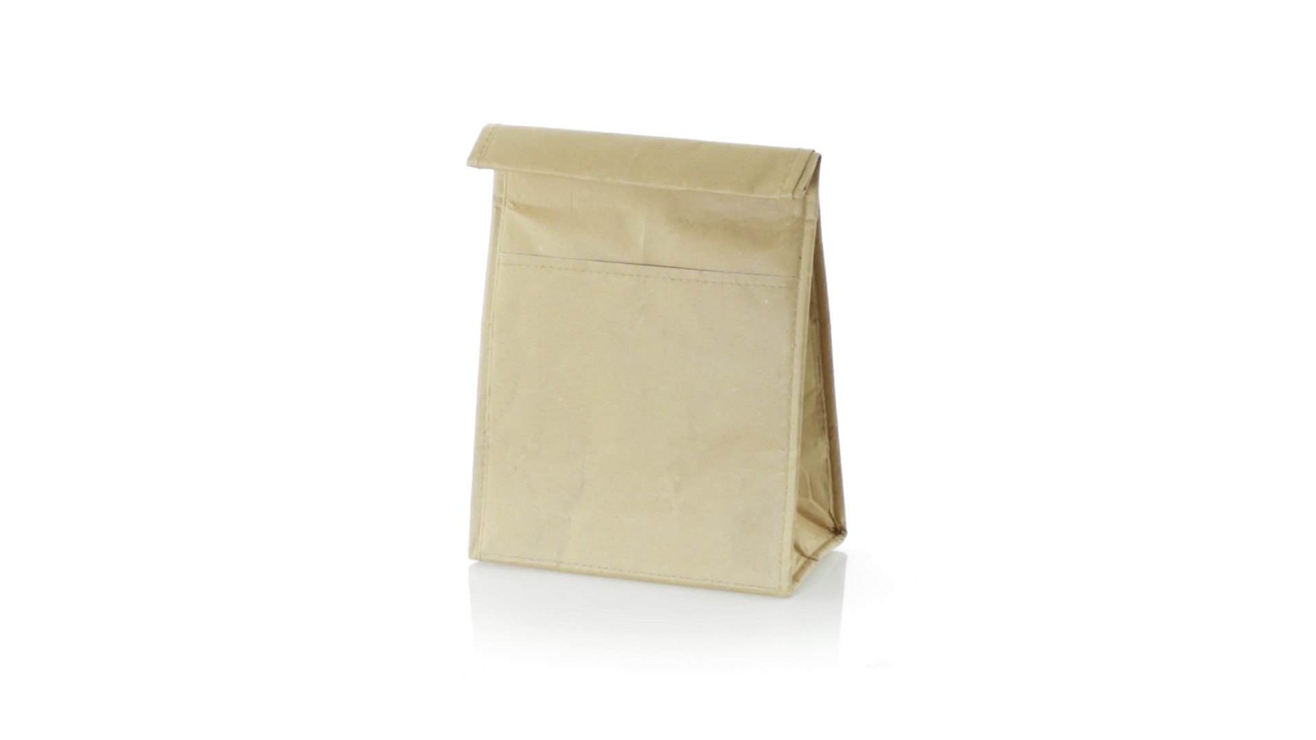 Thermo-Tasche aus robustem Papier (85 g/m2), beständig gegen Feuchtigkeit. Mit 2,3 l Fassungsvermögen, Aussentasche, Klettverschluss und Isotherm-Innenraum aus Aluminium.