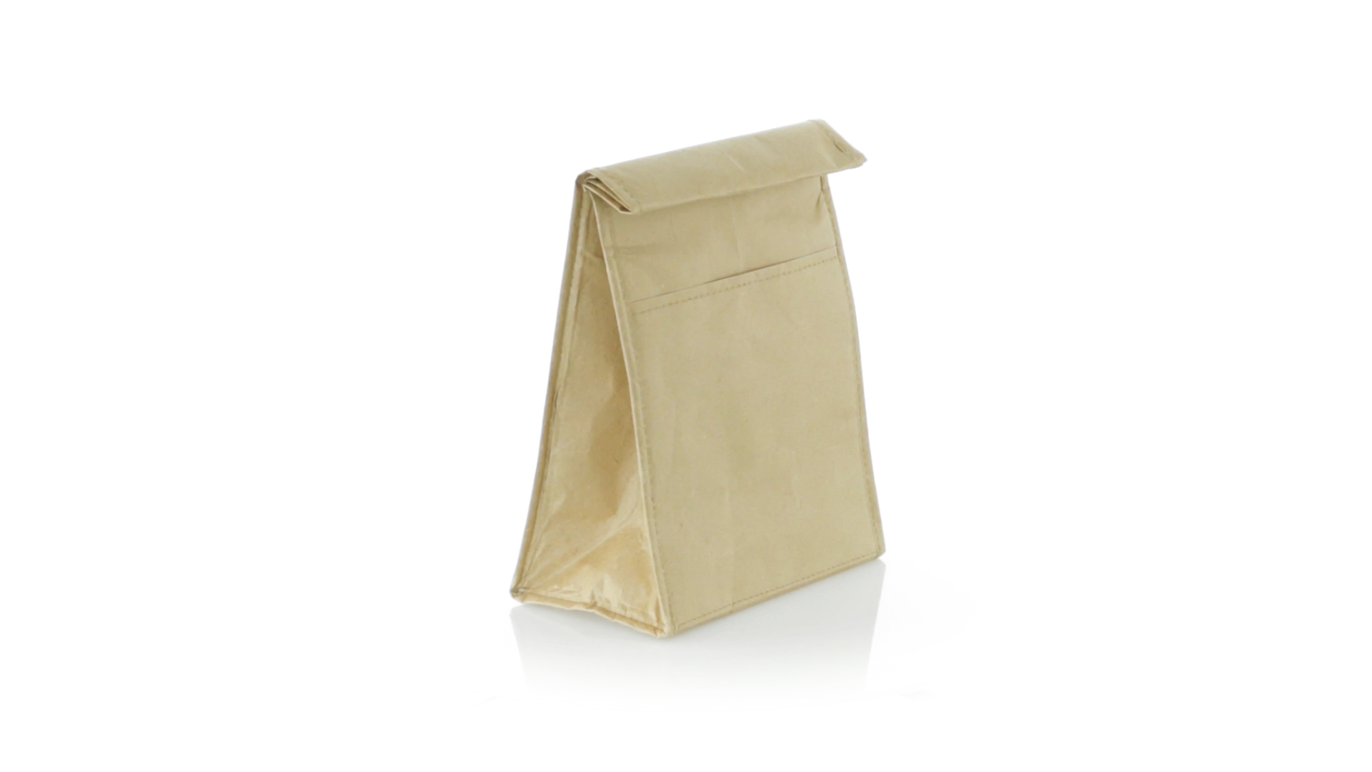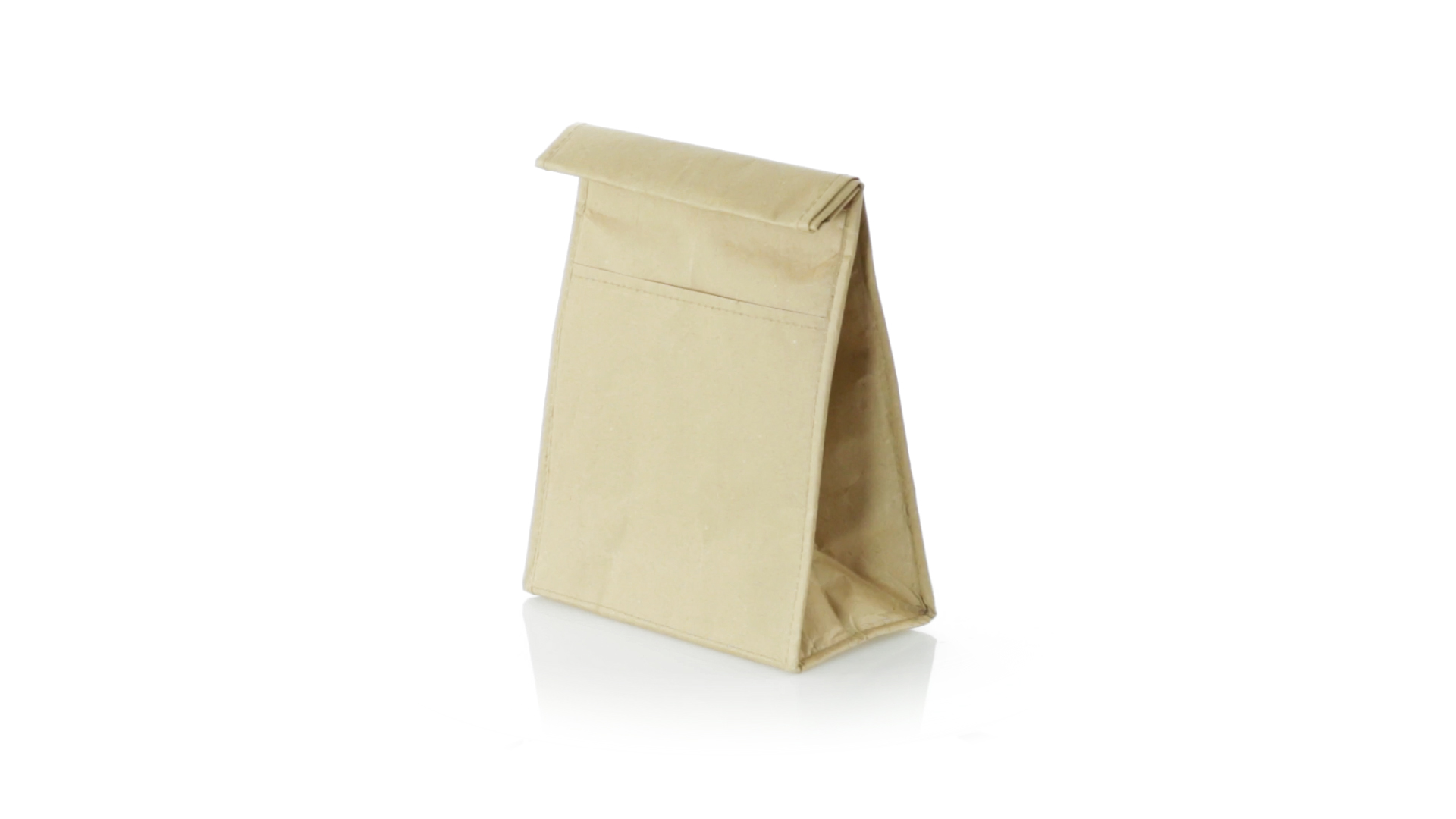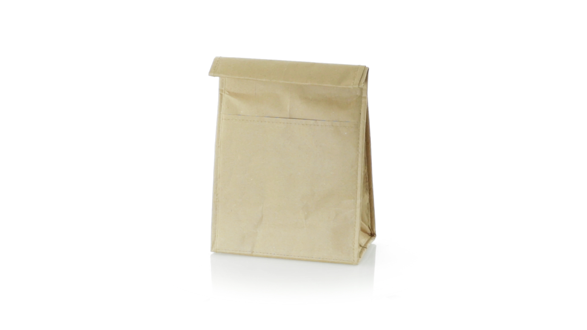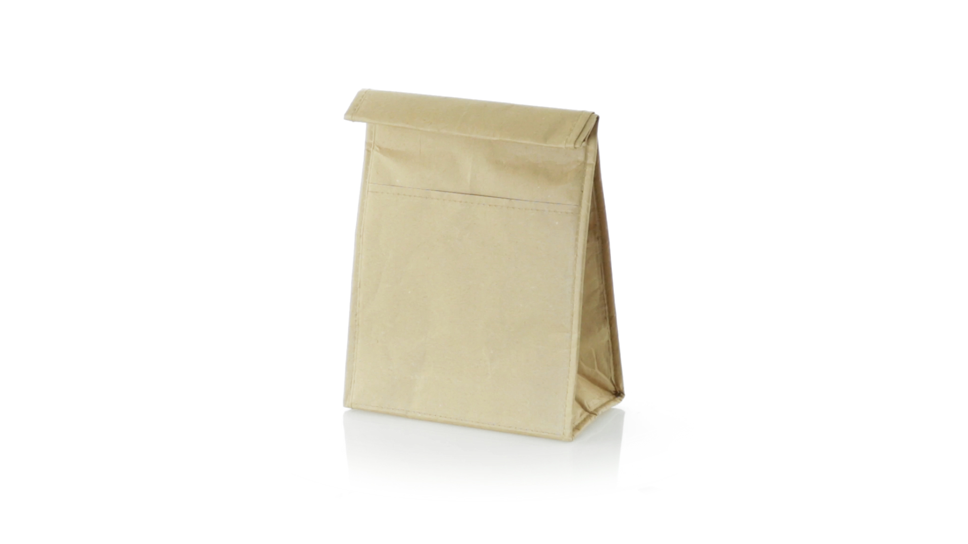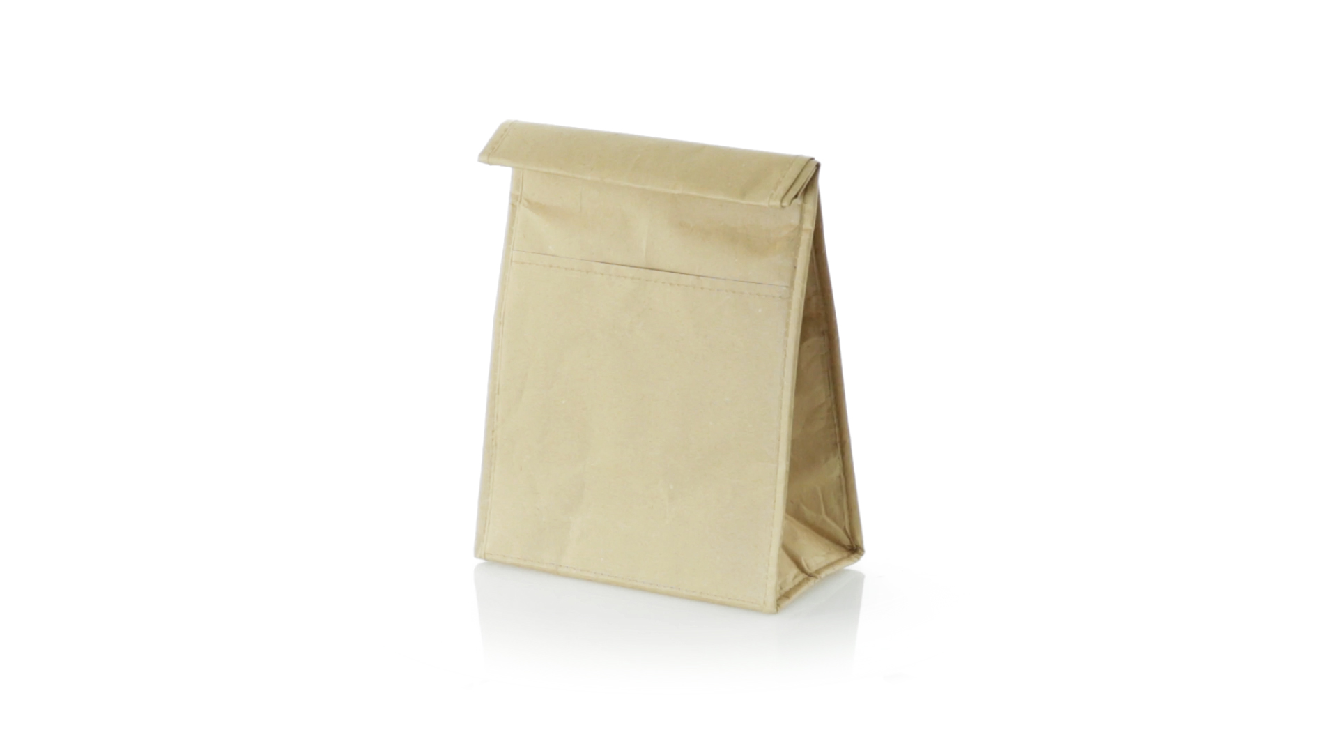 Thermo-Tasche aus robustem Papier (85 g/m2), beständig gegen Feuchtigkeit. Mit 2,3 l Fassungsvermögen, Aussentasche, Klettverschluss und Isotherm-Innenraum aus Aluminium.