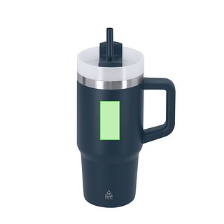 Thermobecher aus recyceltem Edelstahl mit Doppelwand-Fassung und 450 ml Kapazität. Enthält Deckel mit durchscheinendem Druckknopfverschlusssystem sowie Trinkloch und Schiebedeckel für Strohhalm. Es ist ideal, sie auf Ihrem Schreibtisch, Tisch oder auf jeder anderen Oberfläche zu haben, wo Sie ruhig Ihr Lieblingsgetränk geniessen können. Beinhaltet das Abzeichen aus recyceltem Edelstahl.