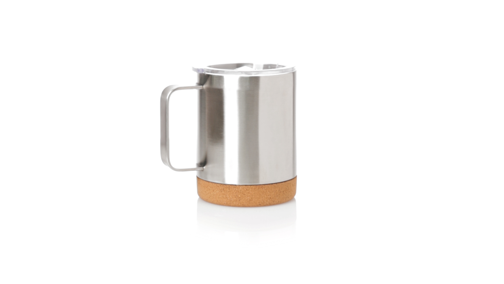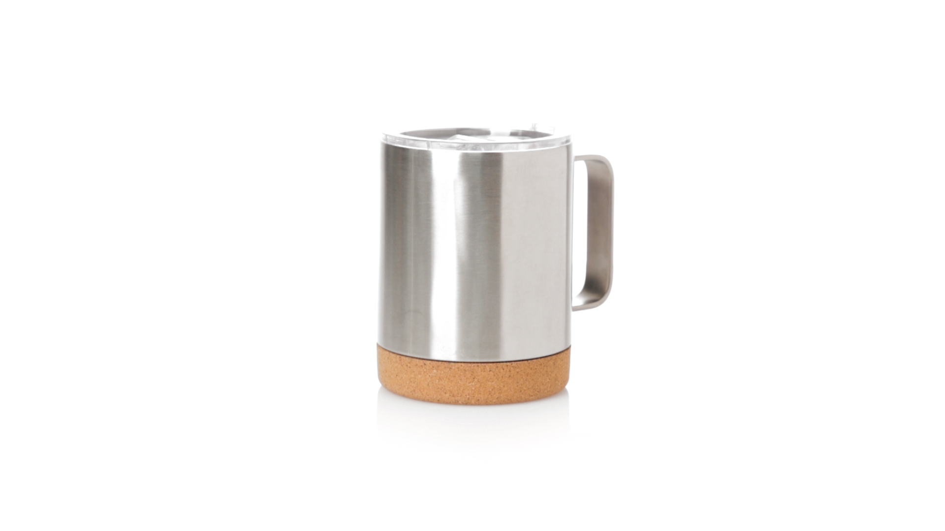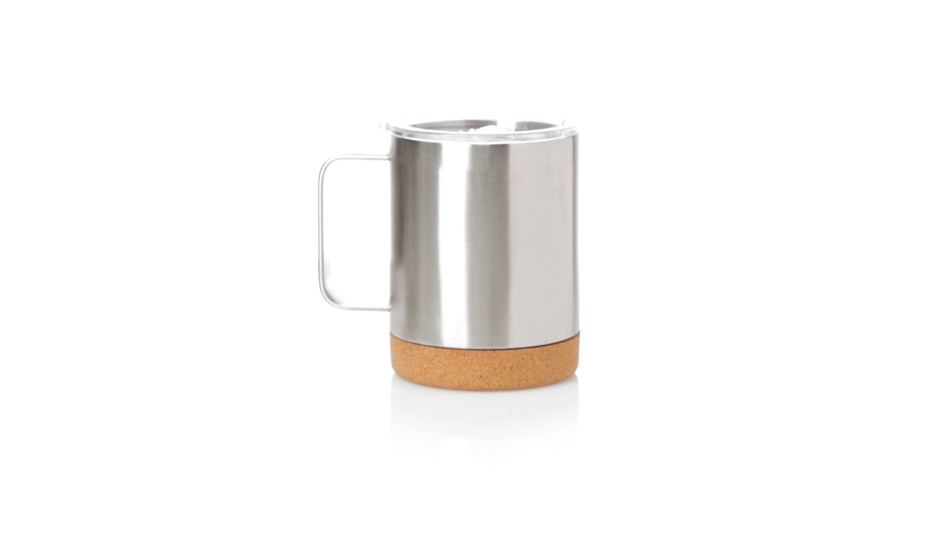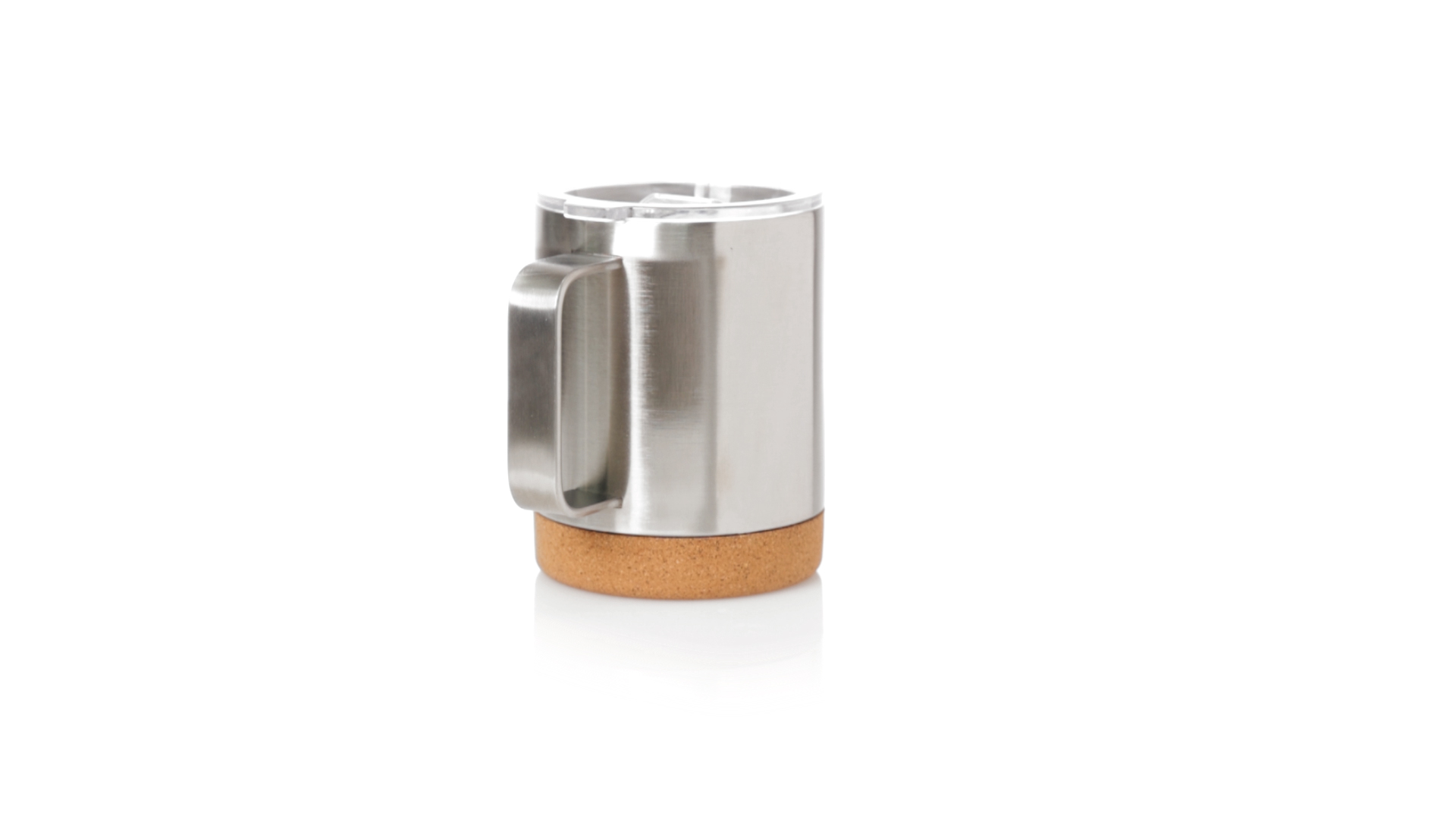 Thermobecher aus doppelwandigem Edelstahl mit 330 ml Fassungsvermögen in matter Farbe. Mit Spender im Deckel, BPA-frei und Naturkorkboden. Es ist ideal für Ihren Schreibtisch, Tisch oder jede andere Oberfläche, auf der Sie in Ruhe Ihr Lieblingsgetränk geniessen können.
