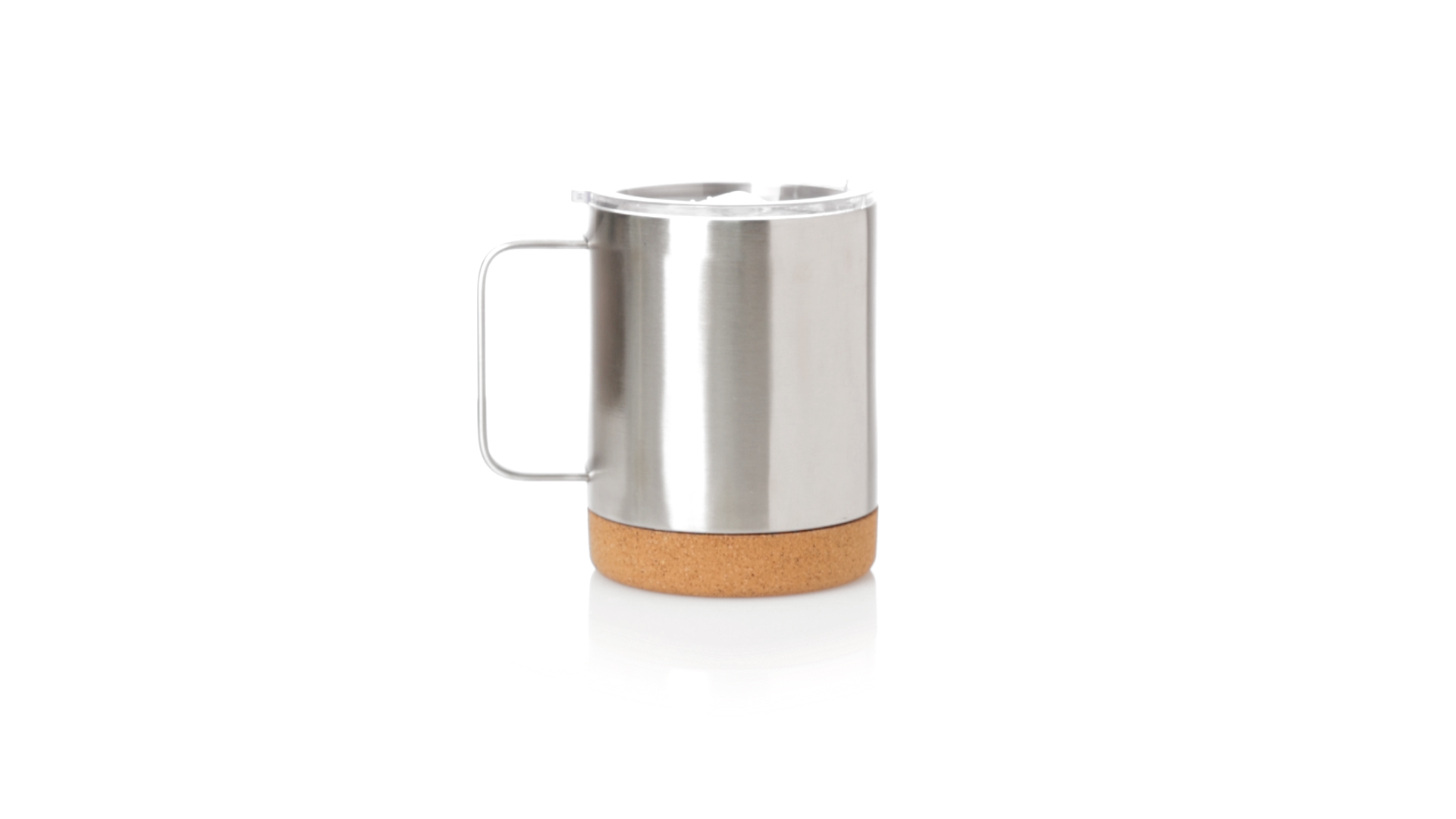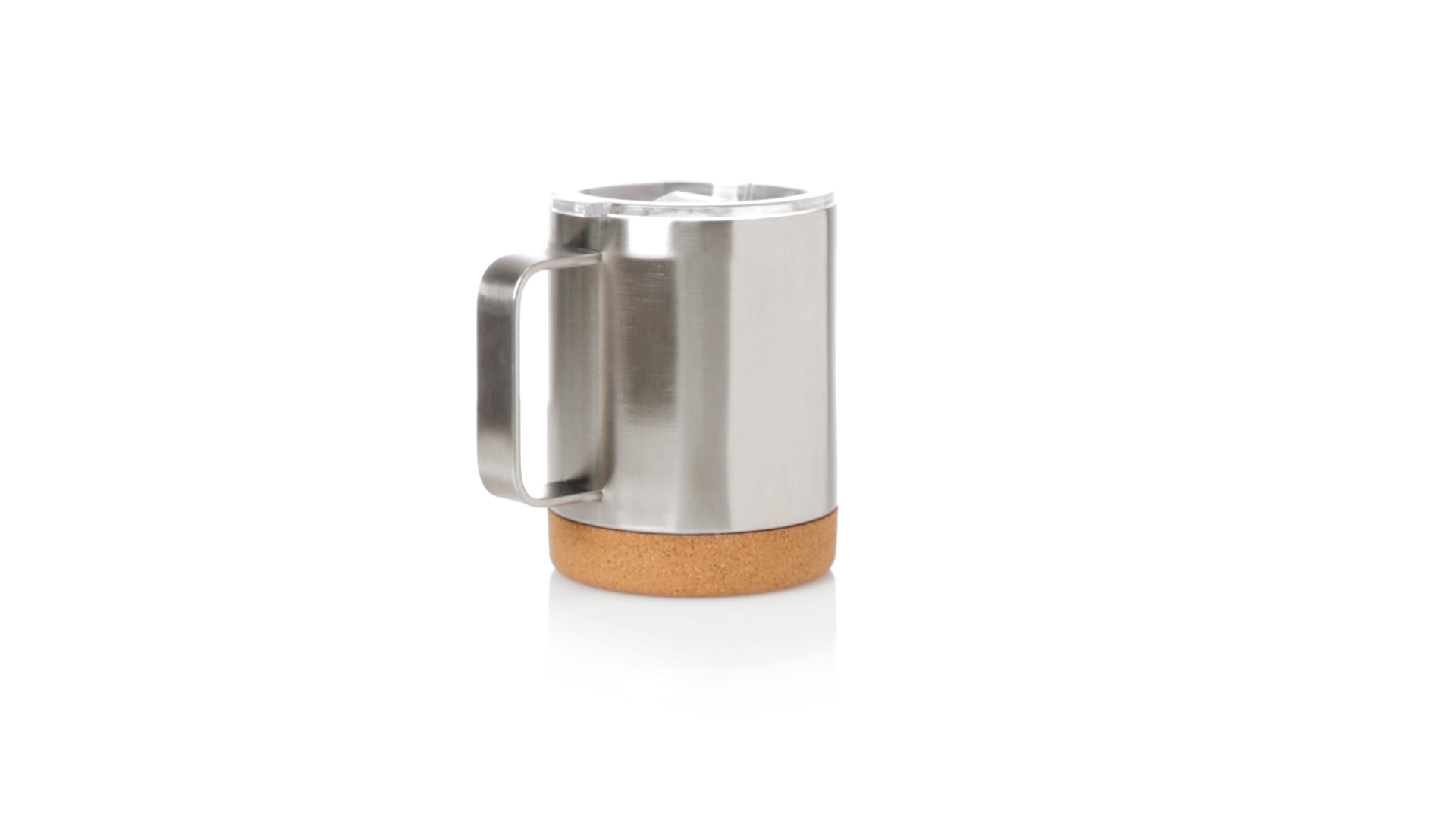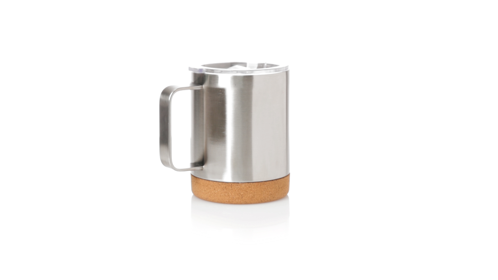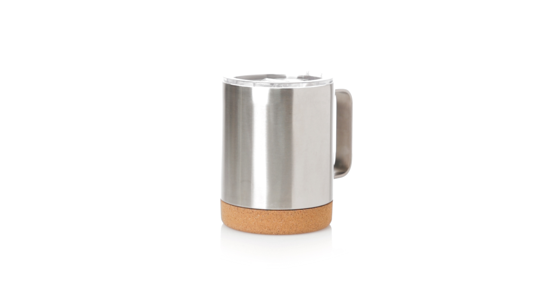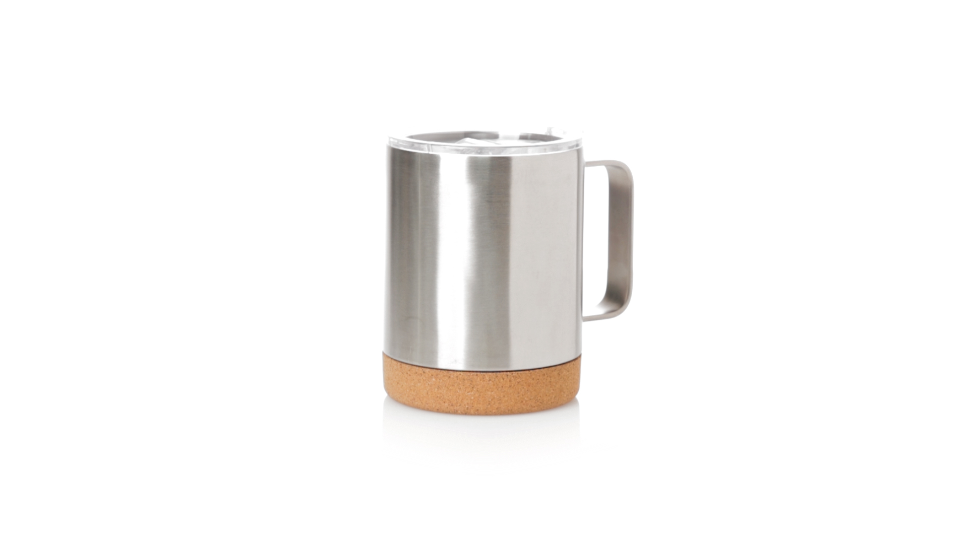 Thermobecher aus doppelwandigem Edelstahl mit 330 ml Fassungsvermögen in matter Farbe. Mit Spender im Deckel, BPA-frei und Naturkorkboden. Es ist ideal für Ihren Schreibtisch, Tisch oder jede andere Oberfläche, auf der Sie in Ruhe Ihr Lieblingsgetränk geniessen können.