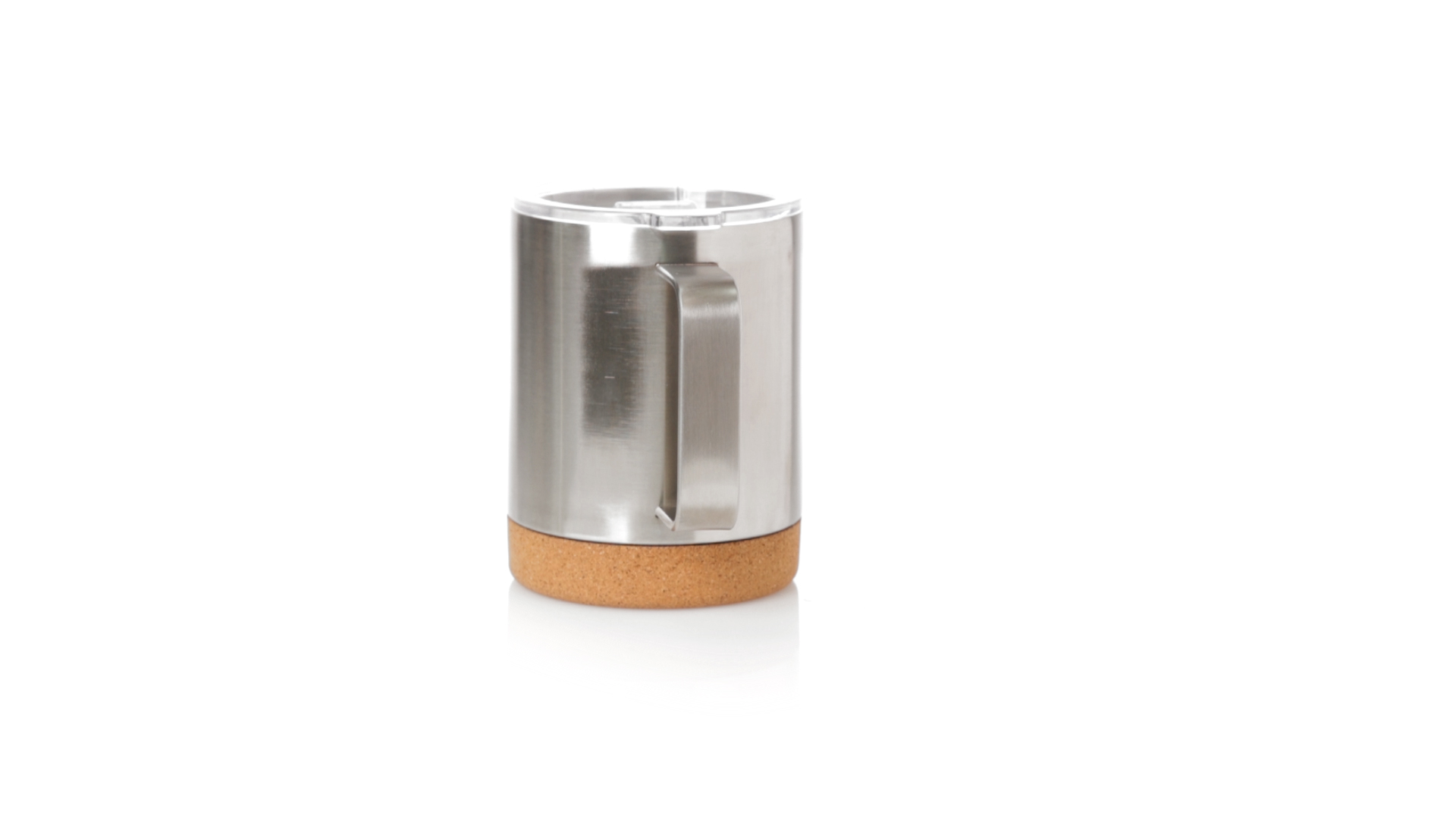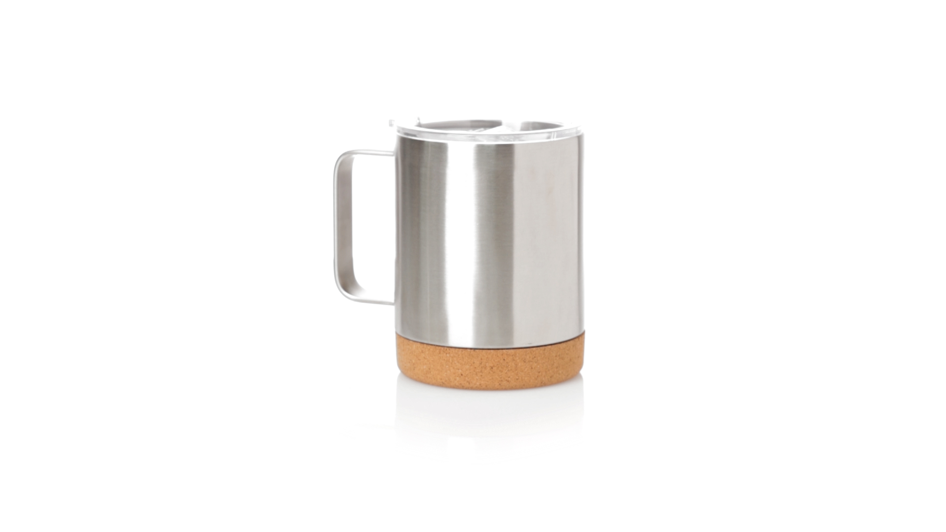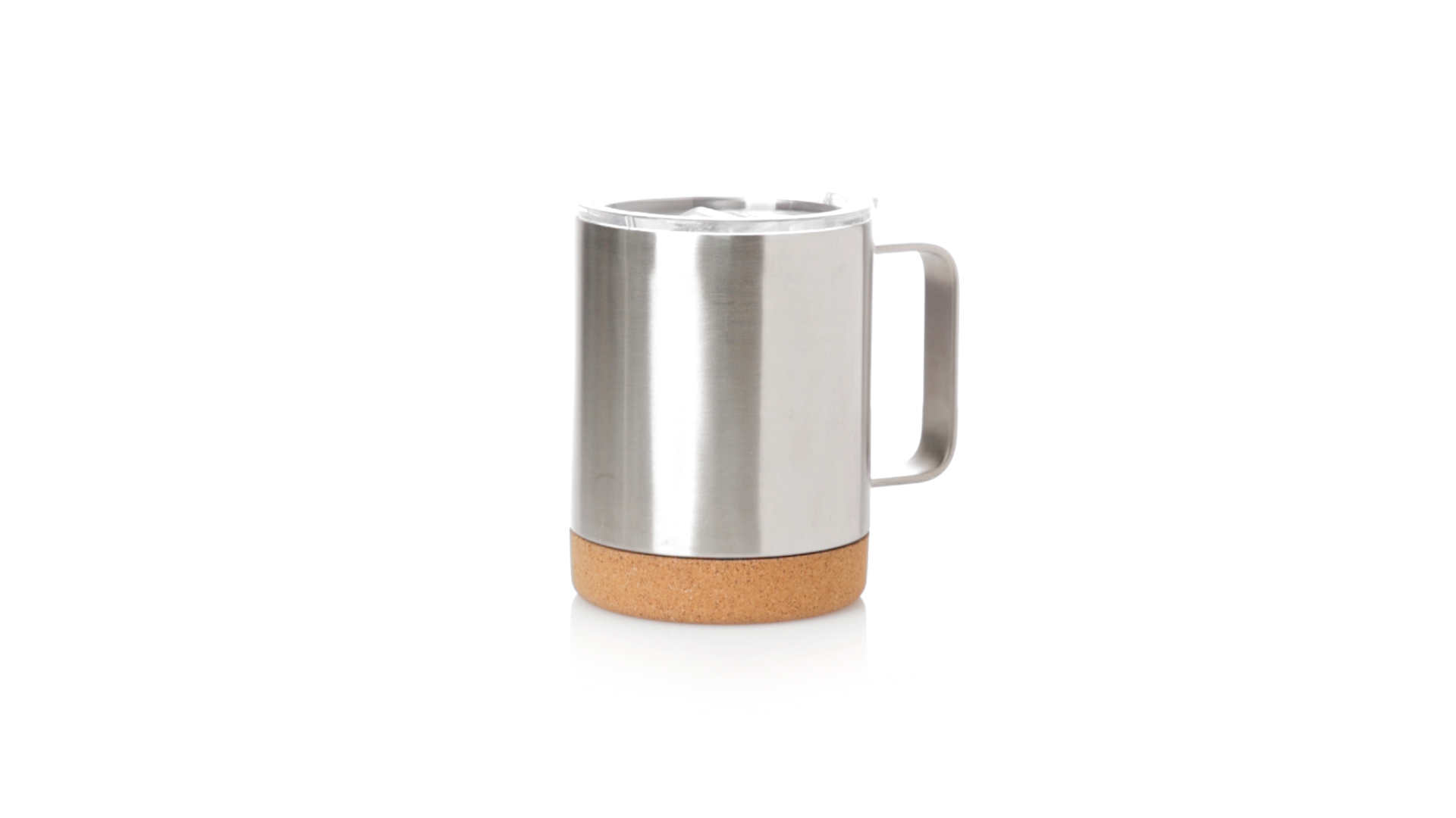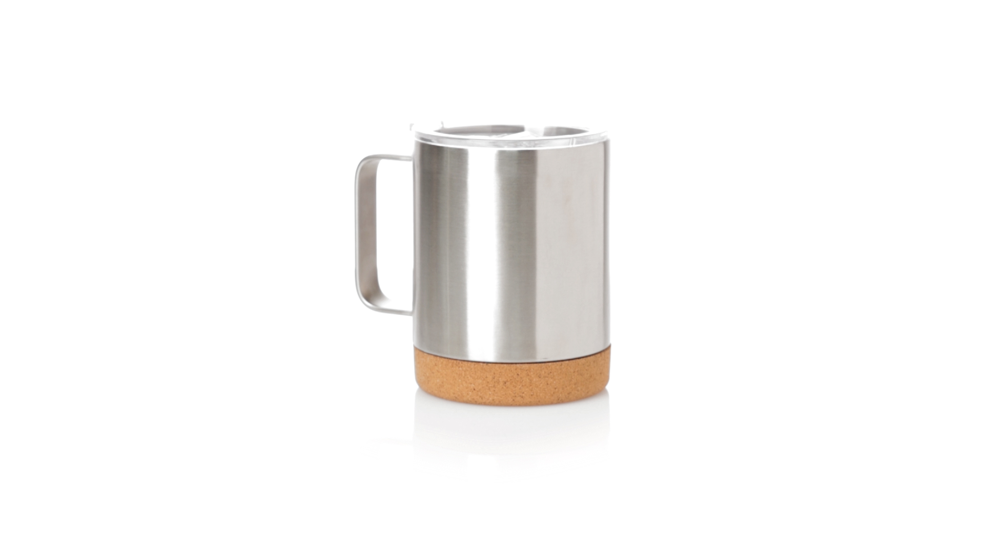 Thermobecher aus doppelwandigem Edelstahl mit 330 ml Fassungsvermögen in matter Farbe. Mit Spender im Deckel, BPA-frei und Naturkorkboden. Es ist ideal für Ihren Schreibtisch, Tisch oder jede andere Oberfläche, auf der Sie in Ruhe Ihr Lieblingsgetränk geniessen können.