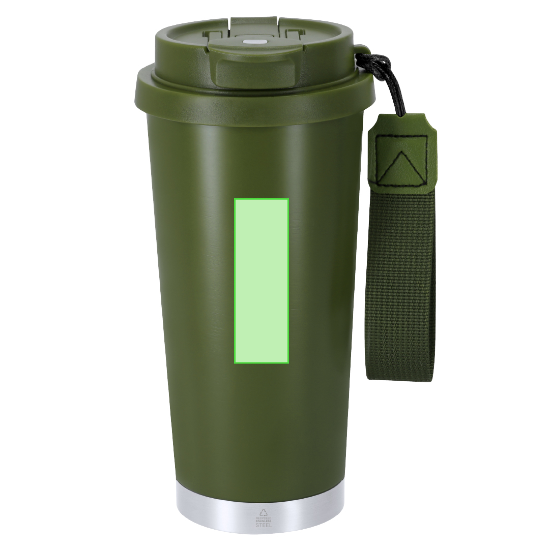 Isolierbecher mit 500 ml Fassungsvermögen. Hergestellt aus recyceltem Edelstahl. Mit doppeltem Trinksystem: Ausguss mit hermetischem Verschluss und integriertem Trinkhalm, angepasst an die Nutzungspräferenzen. Mit hermetisch verschliessendem Deckel. Mit praktischem Trageband, ideal zum einfachen Transport in jeder Situation. BPA-frei. Mit Emblem aus recyceltem Edelstahl. Stahl ist eines der gefragtesten Materialien und findet sich nahezu überall, von Alltagsprodukten bis hin zu grossen Bauwerken. Mit zahlreichen Eigenschaften, insbesondere seiner Langlebigkeit und dem hohen Mass an Wiederverwendbarkeit, ist er eine sehr geschätzte Alternative für nachhaltige Lösungen. Richtig behandelt, ermöglicht er die Gewinnung neuer Ressourcen mit unendlicher Nutzung.