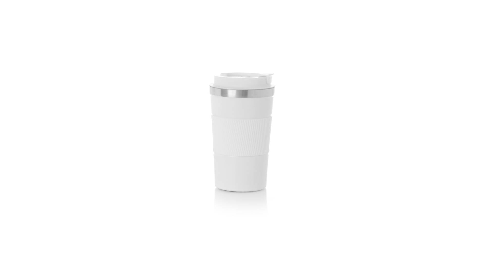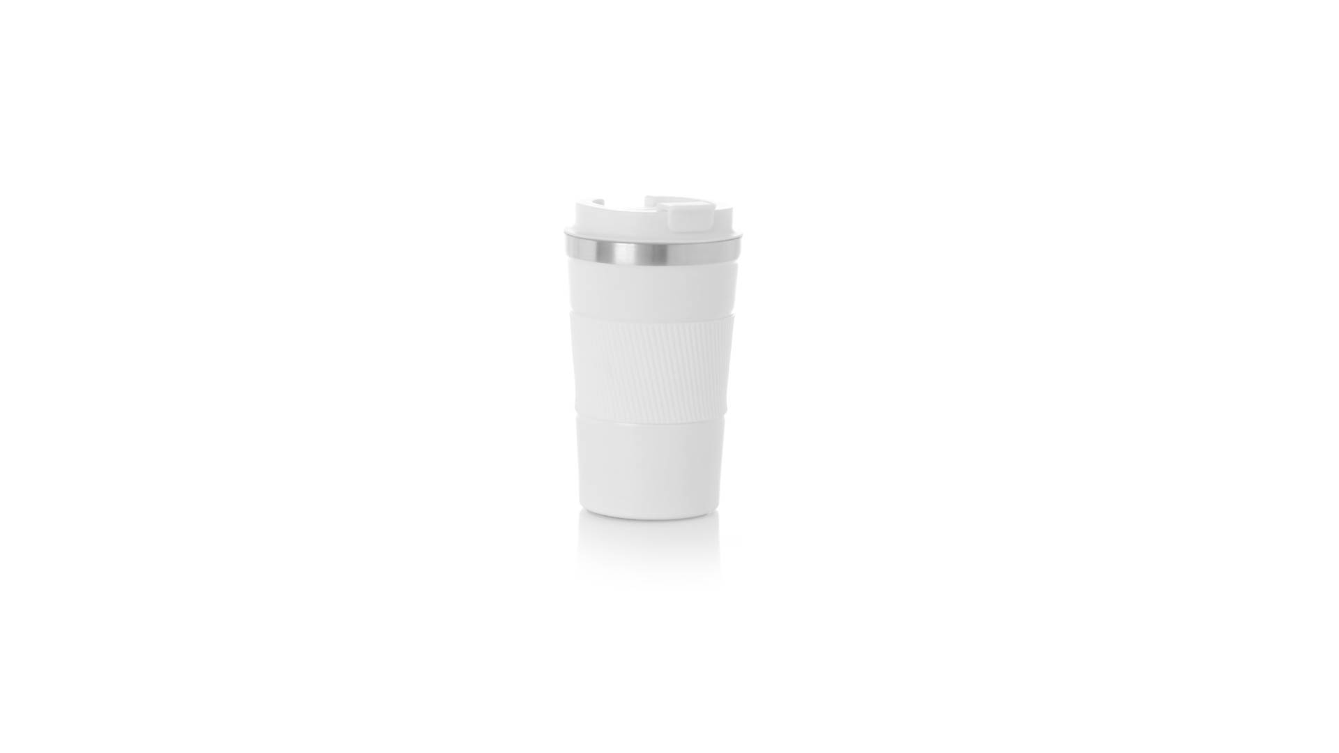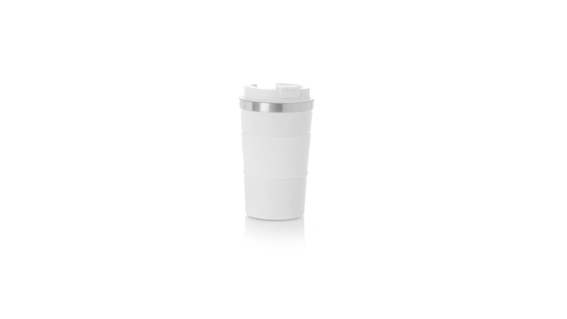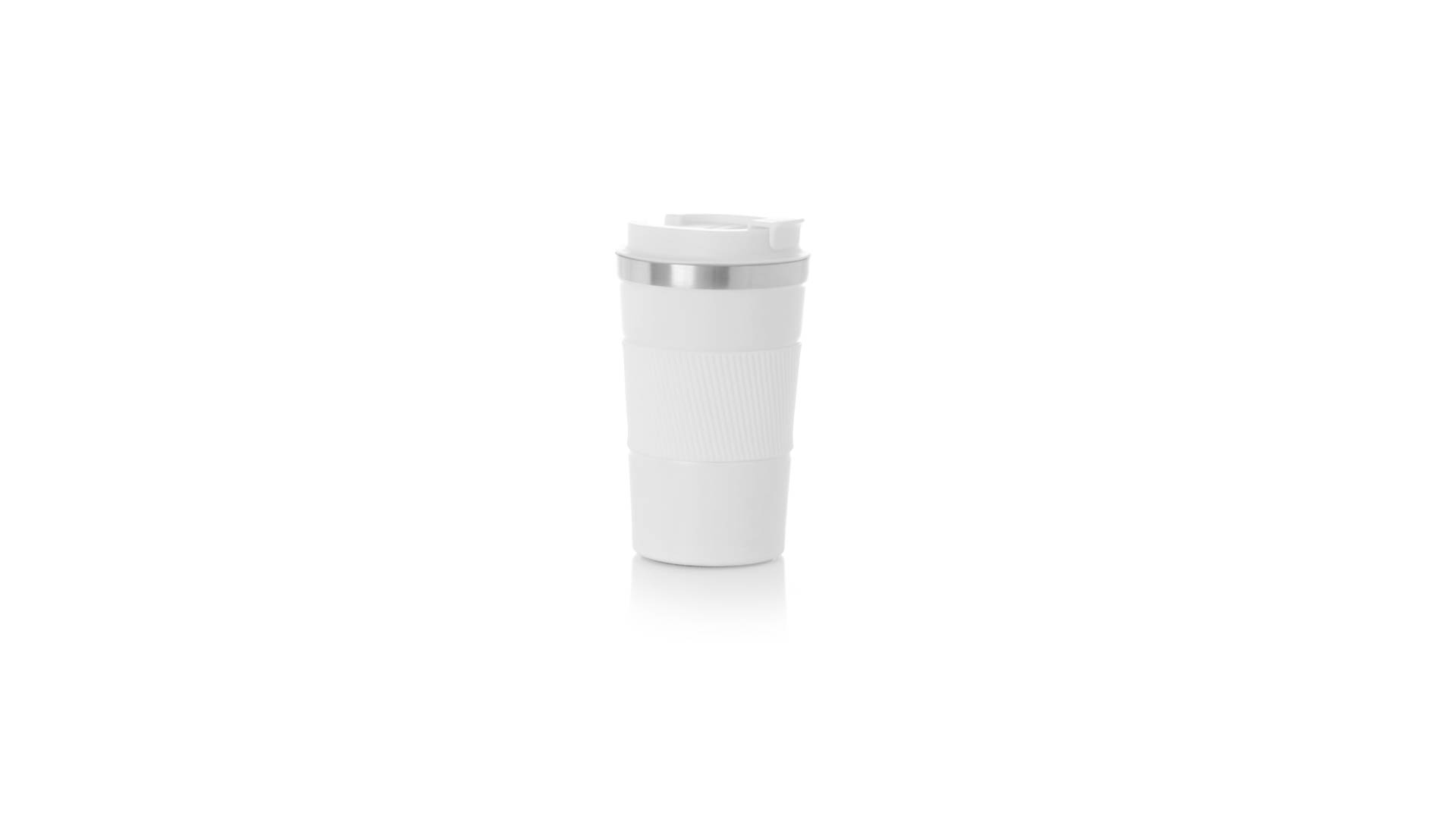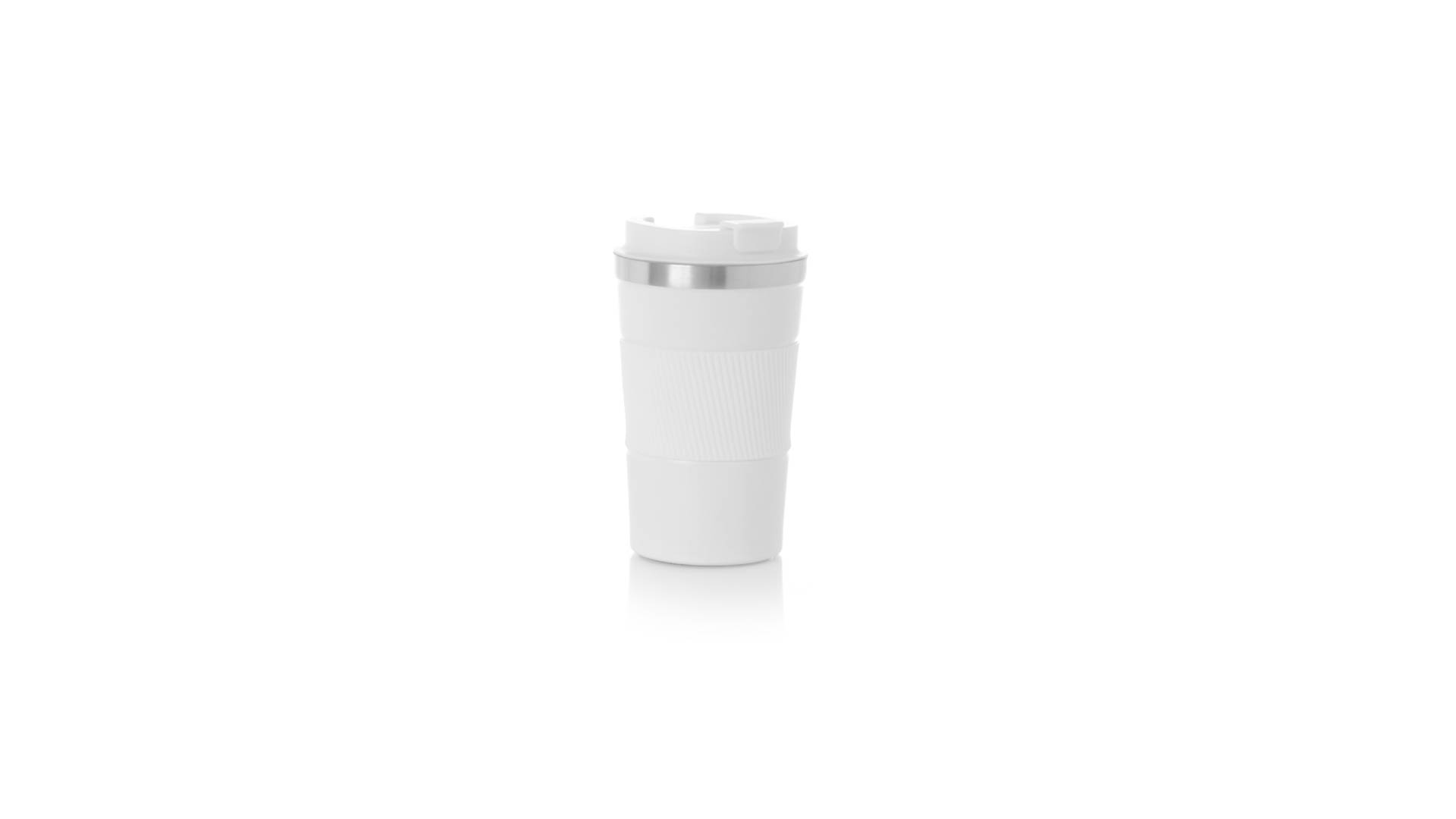 Thermobecher aus doppelwandigem Edelstahl mit einem Fassungsvermögen von 400 ml in matter Farbe. Mit Deckelspender und Easy-Opener, passendem Silikonband und rutschfestem Boden, BPA-frei. Es ist ideal für Ihren Schreibtisch, Tisch oder jede andere Oberfläche, auf der Sie in Ruhe Ihr Lieblingsgetränk geniessen können.