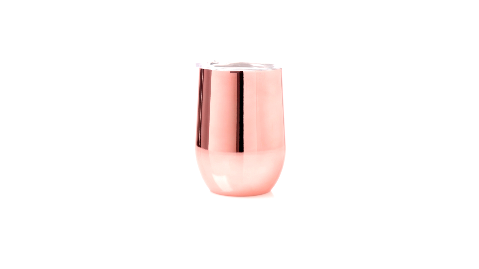 Thermobecher aus doppelwandigem Edelstahl mit einem Fassungsvermögen von 350 ml und einer galvanisierten Kupferbeschichtung auf der Aussenseite. Es ist ideal für Ihren Schreibtisch, Tisch oder jede andere Oberfläche, auf der Sie in Ruhe Ihr Lieblingsgetränk geniessen können.