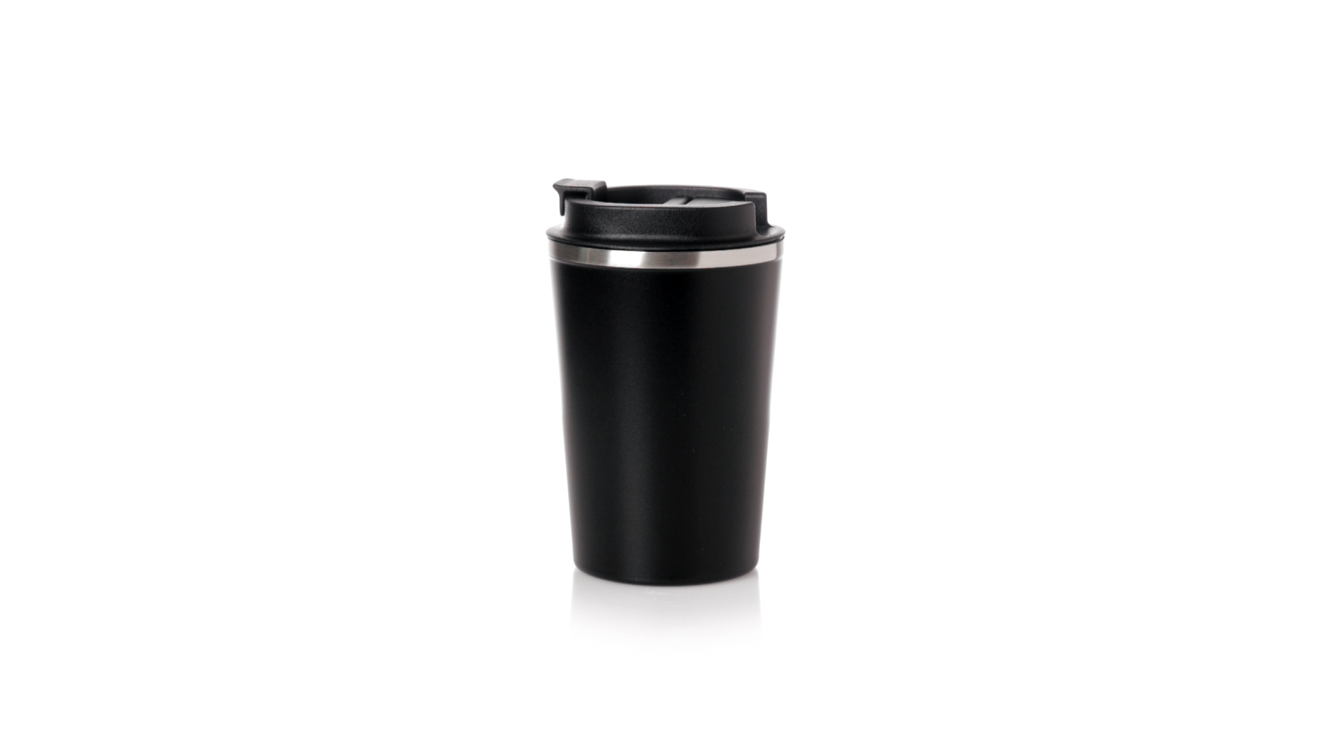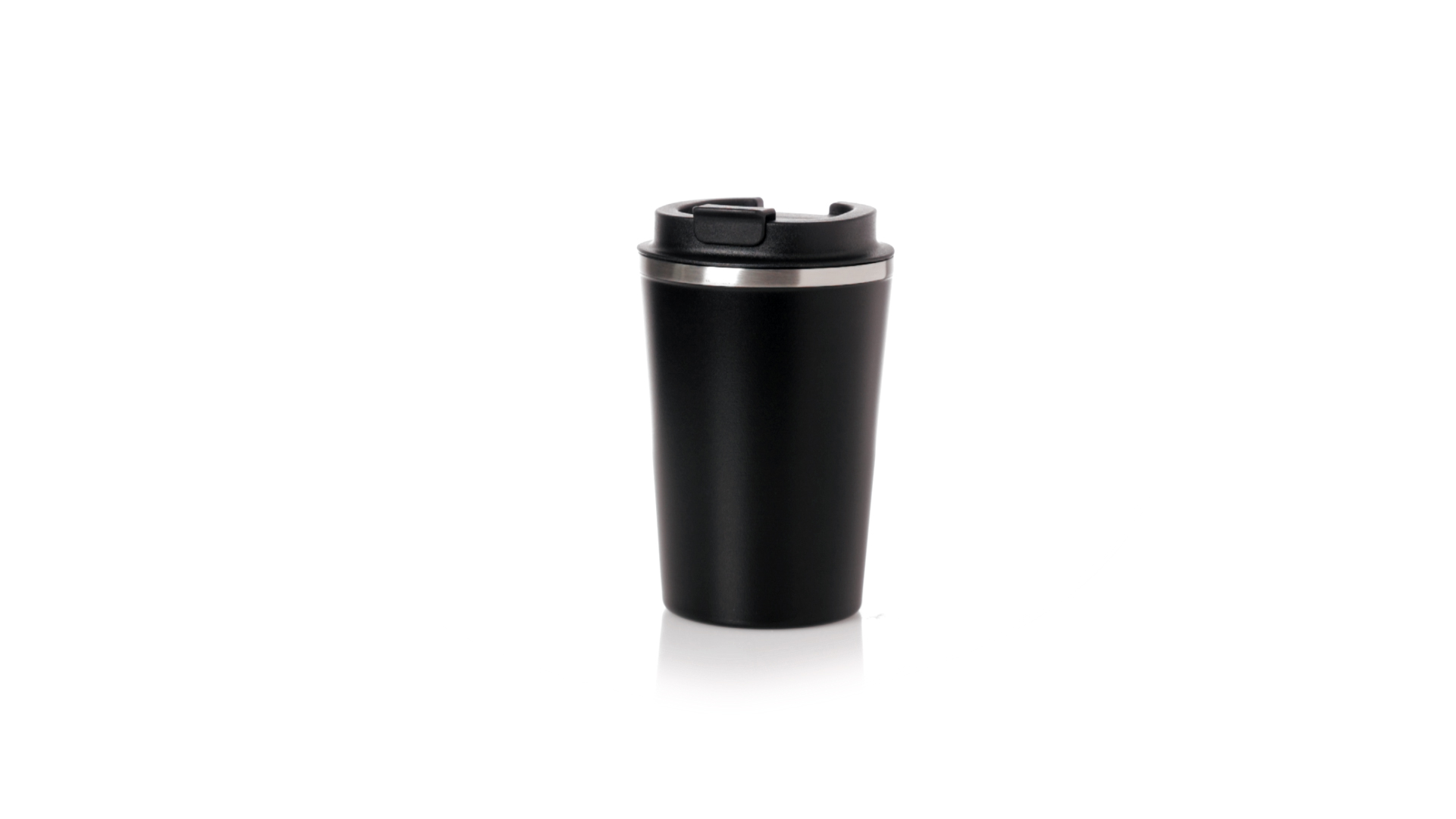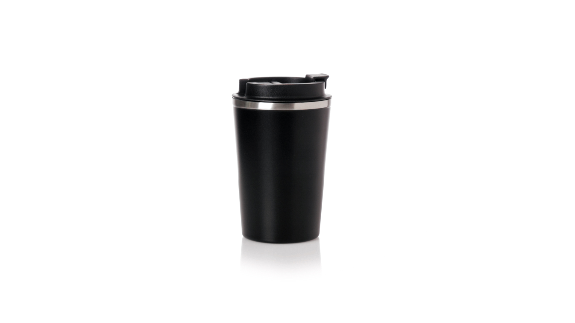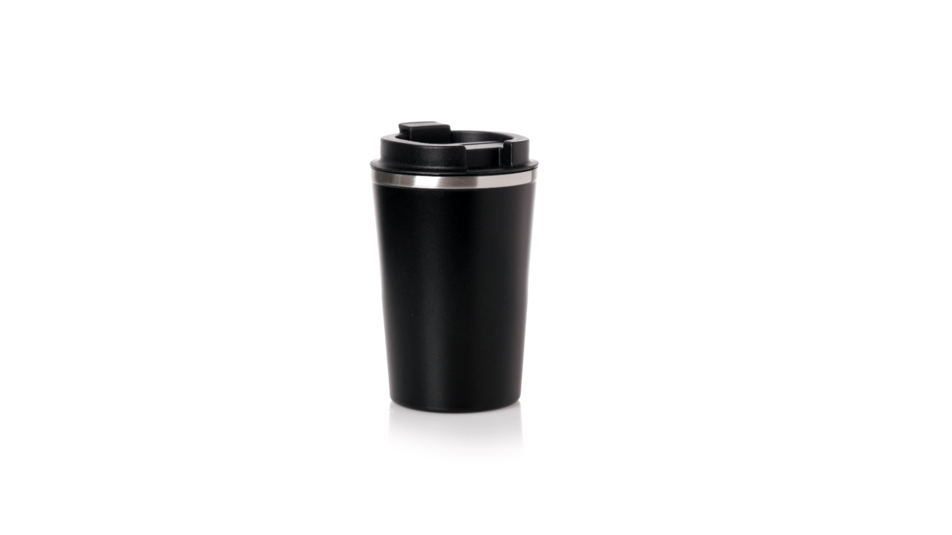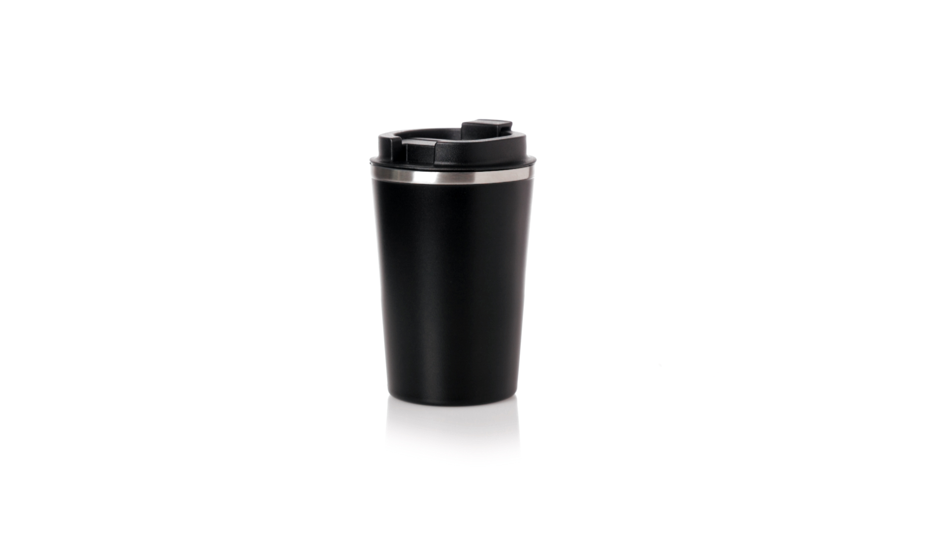 Thermobecher aus doppelwandigem Edelstahl mit einem Fassungsvermögen von 350 ml in matter Farbe. Leicht zu öffnender Deckel mit Spender, BPA-frei. Es ist ideal für Ihren Schreibtisch, Tisch oder jede andere Oberfläche, auf der Sie in Ruhe Ihr Lieblingsgetränk geniessen können.
