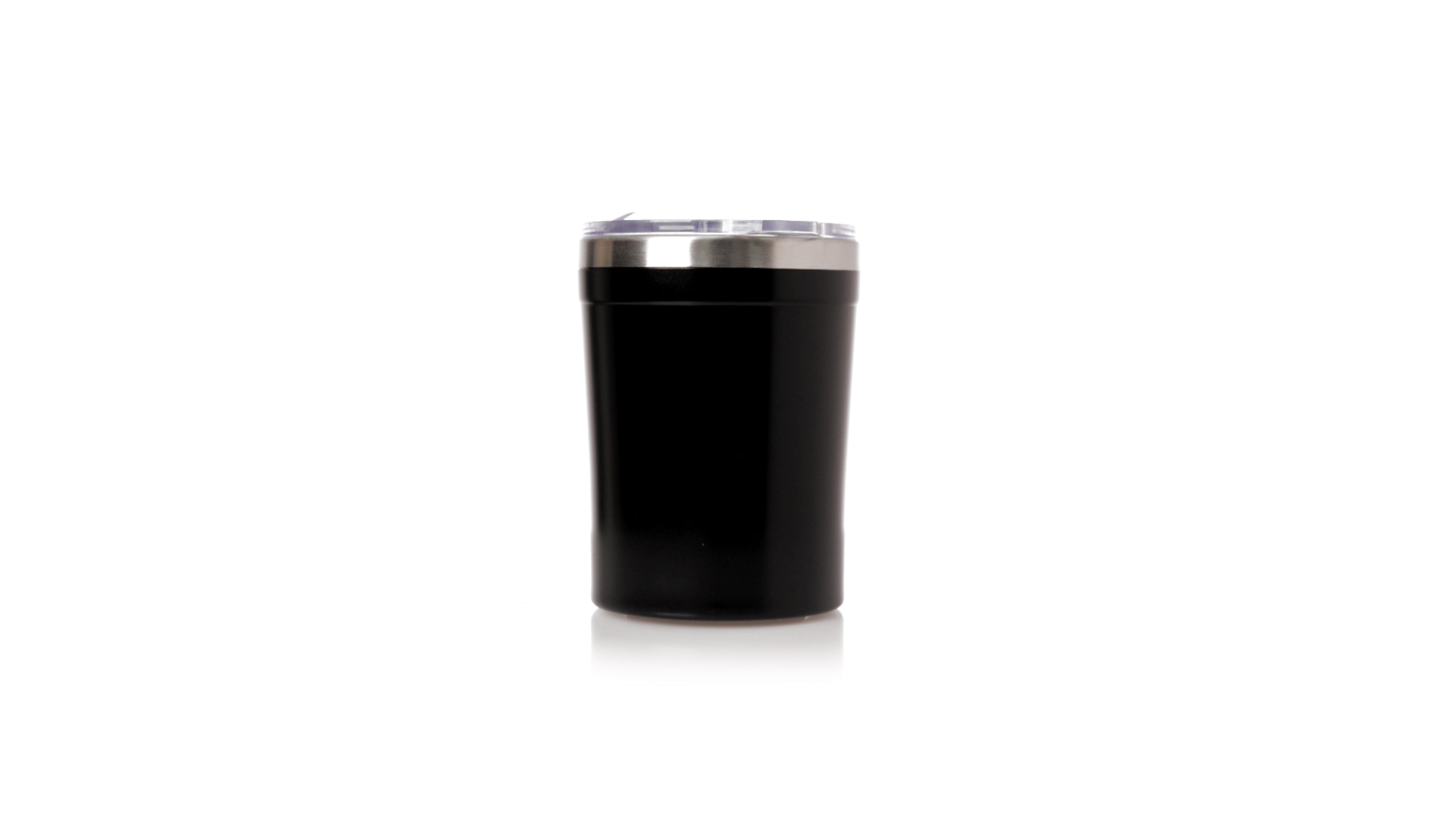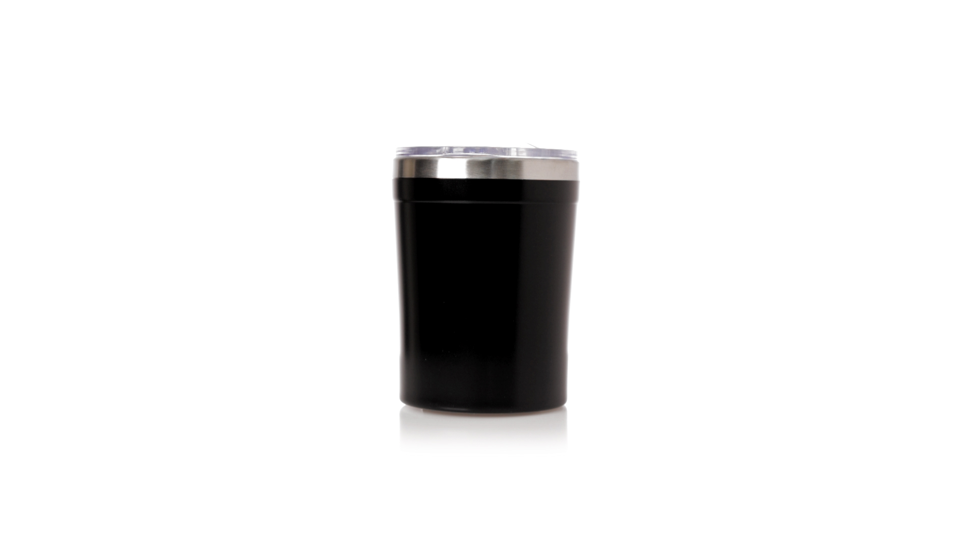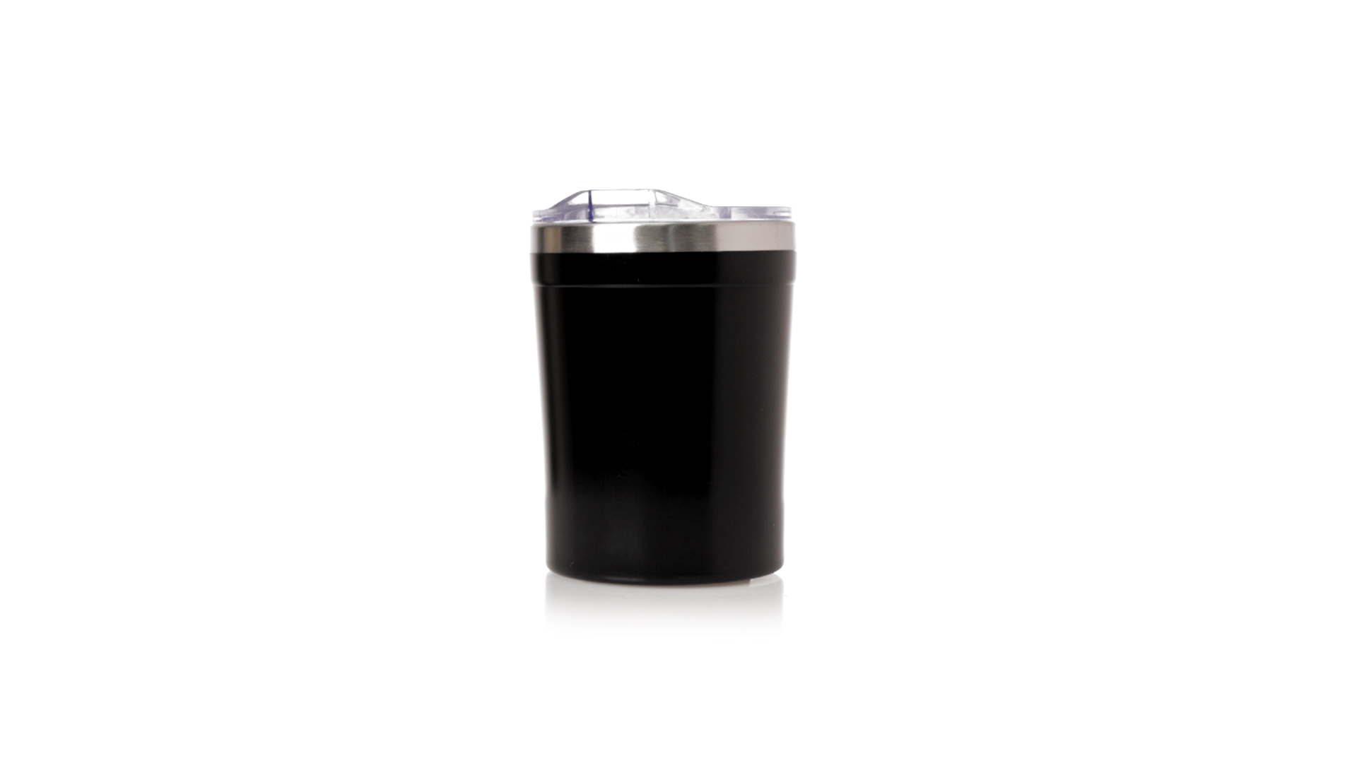 Thermobecher aus rostfreiem Stahl mit einem Fassungsvermögen von 350 ml. Aussen aus PP, mit Spender und leicht zu öffnendem Deckel. BPA-frei. Präsentiert in einer individuellen Kraft-Design-Box.