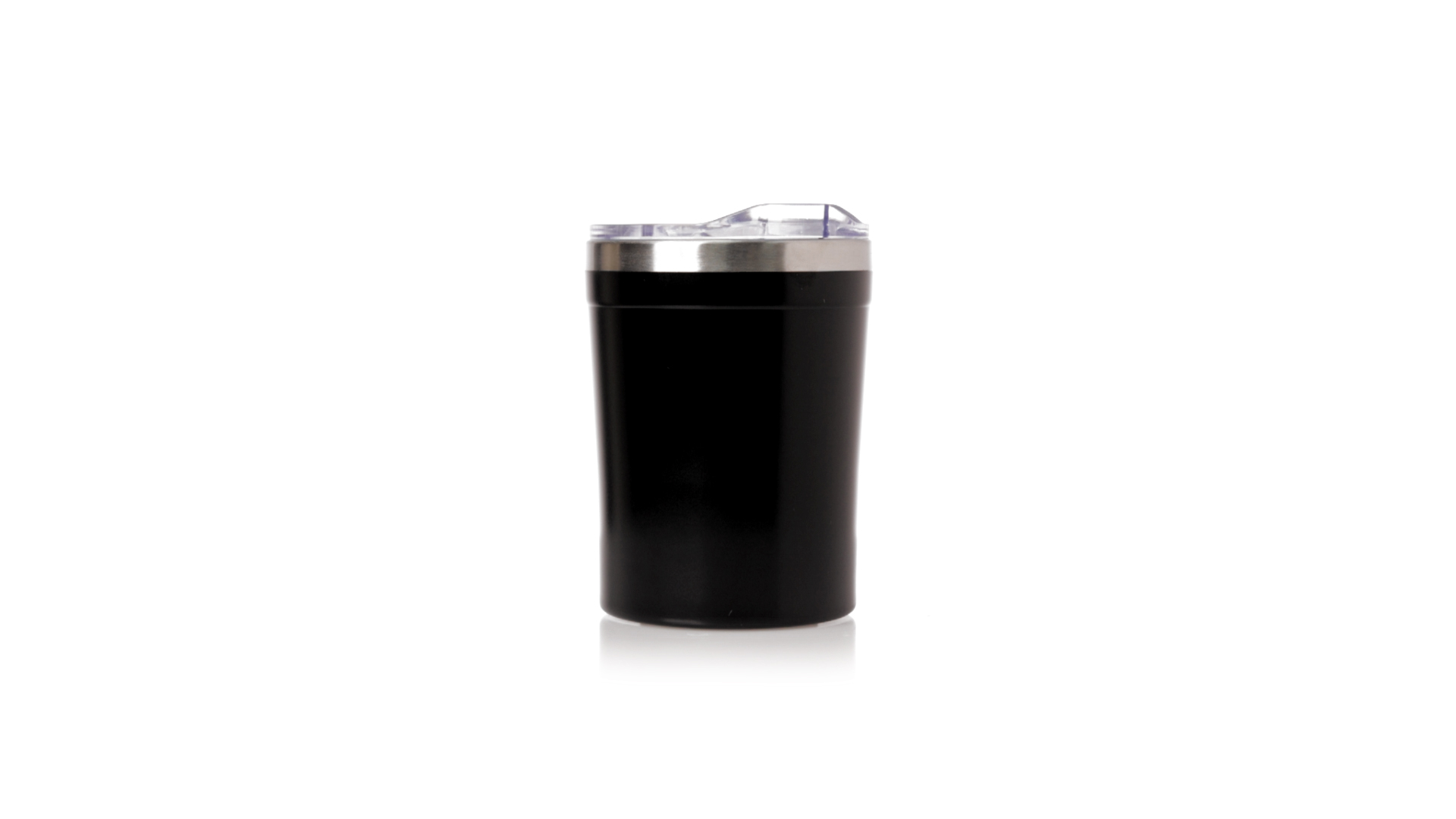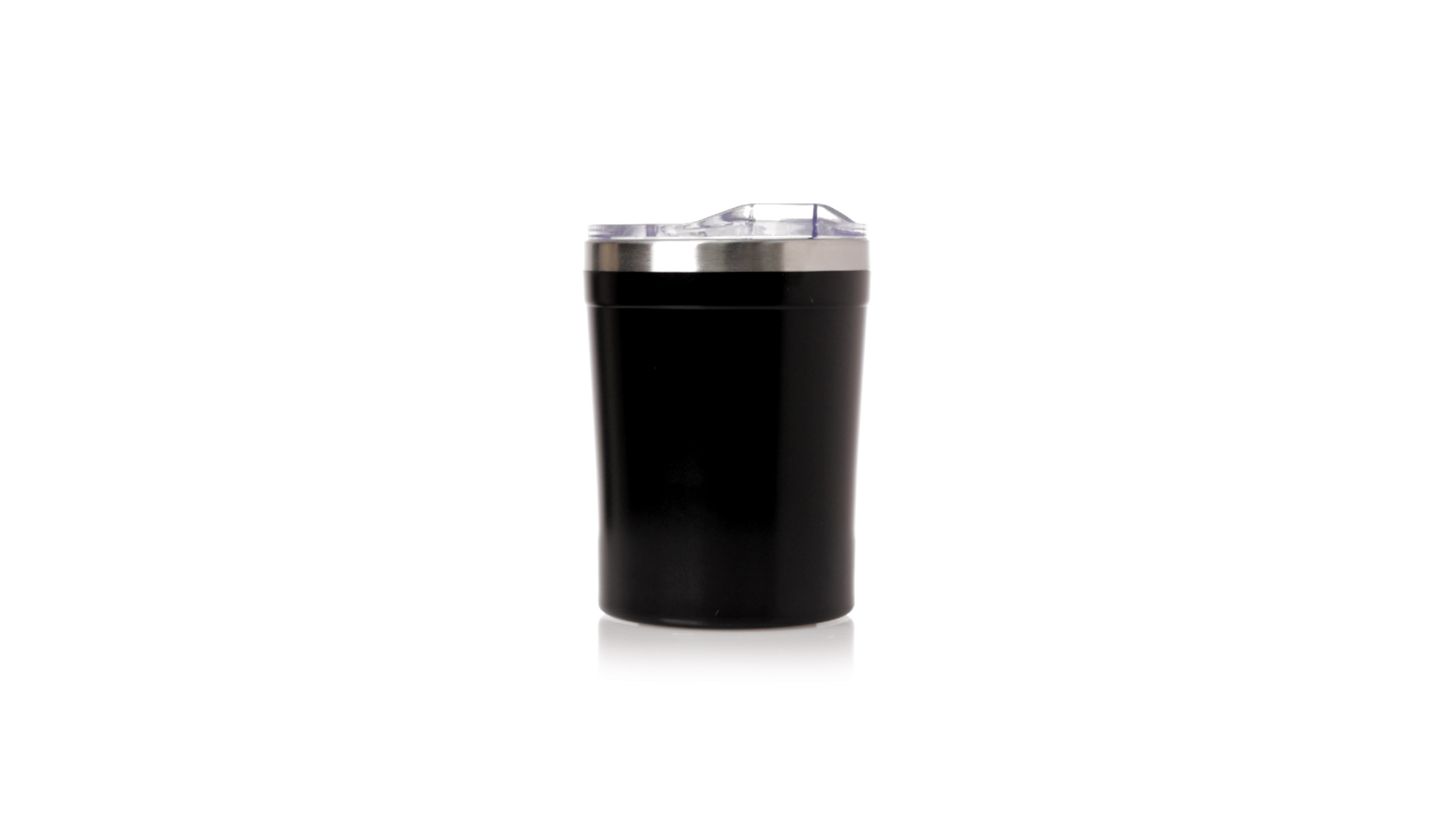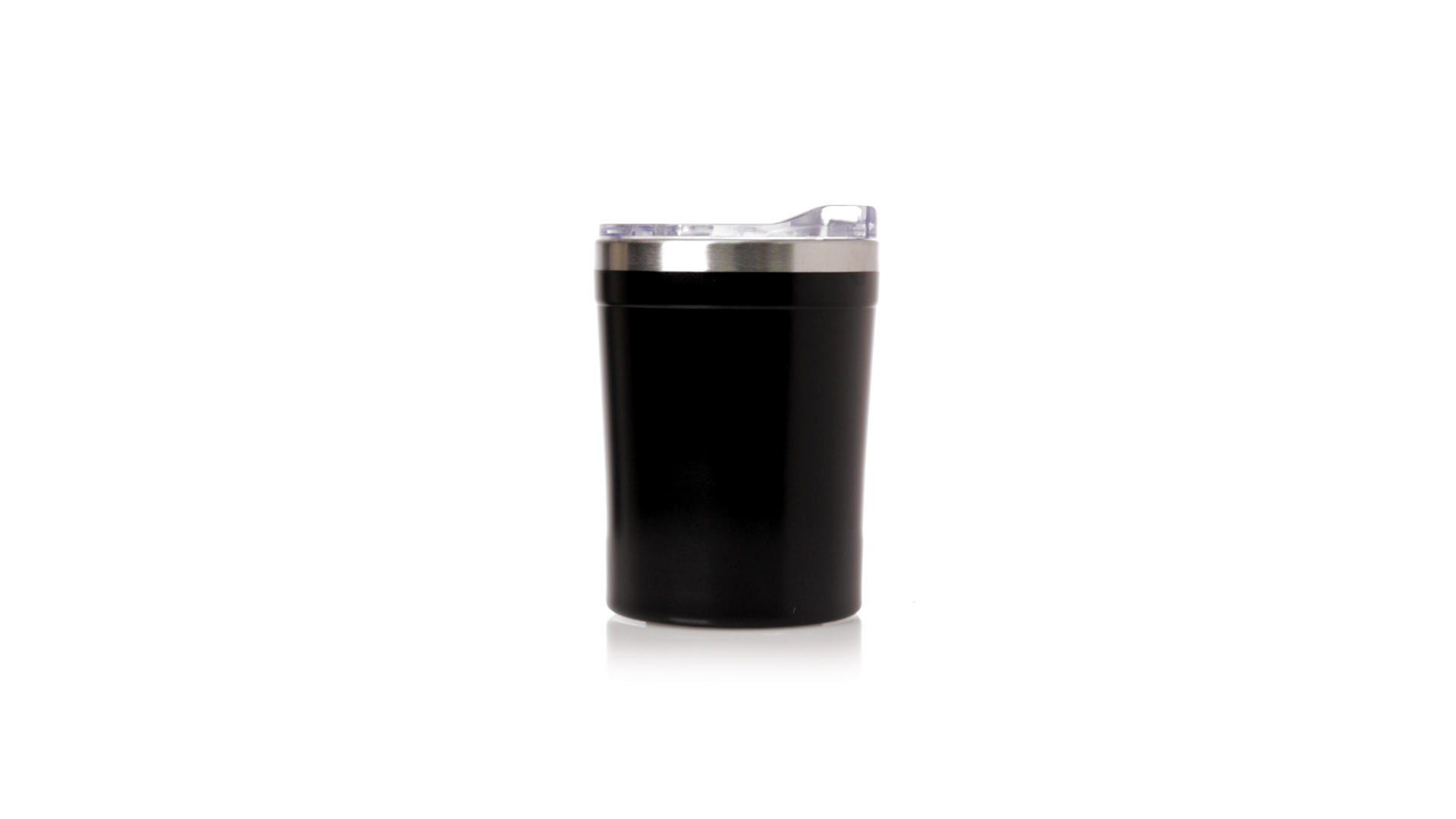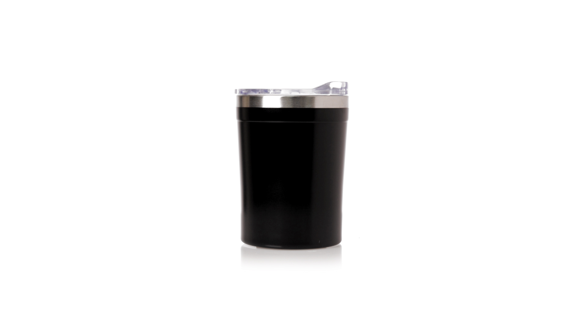 Thermobecher aus rostfreiem Stahl mit einem Fassungsvermögen von 350 ml. Aussen aus PP, mit Spender und leicht zu öffnendem Deckel. BPA-frei. Präsentiert in einer individuellen Kraft-Design-Box.