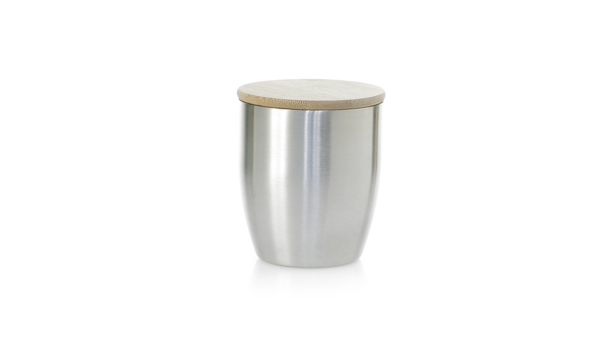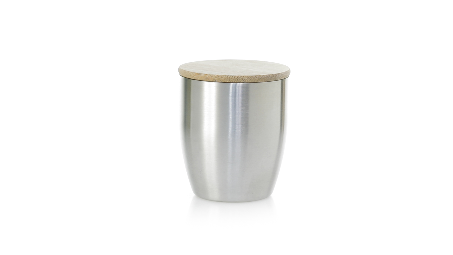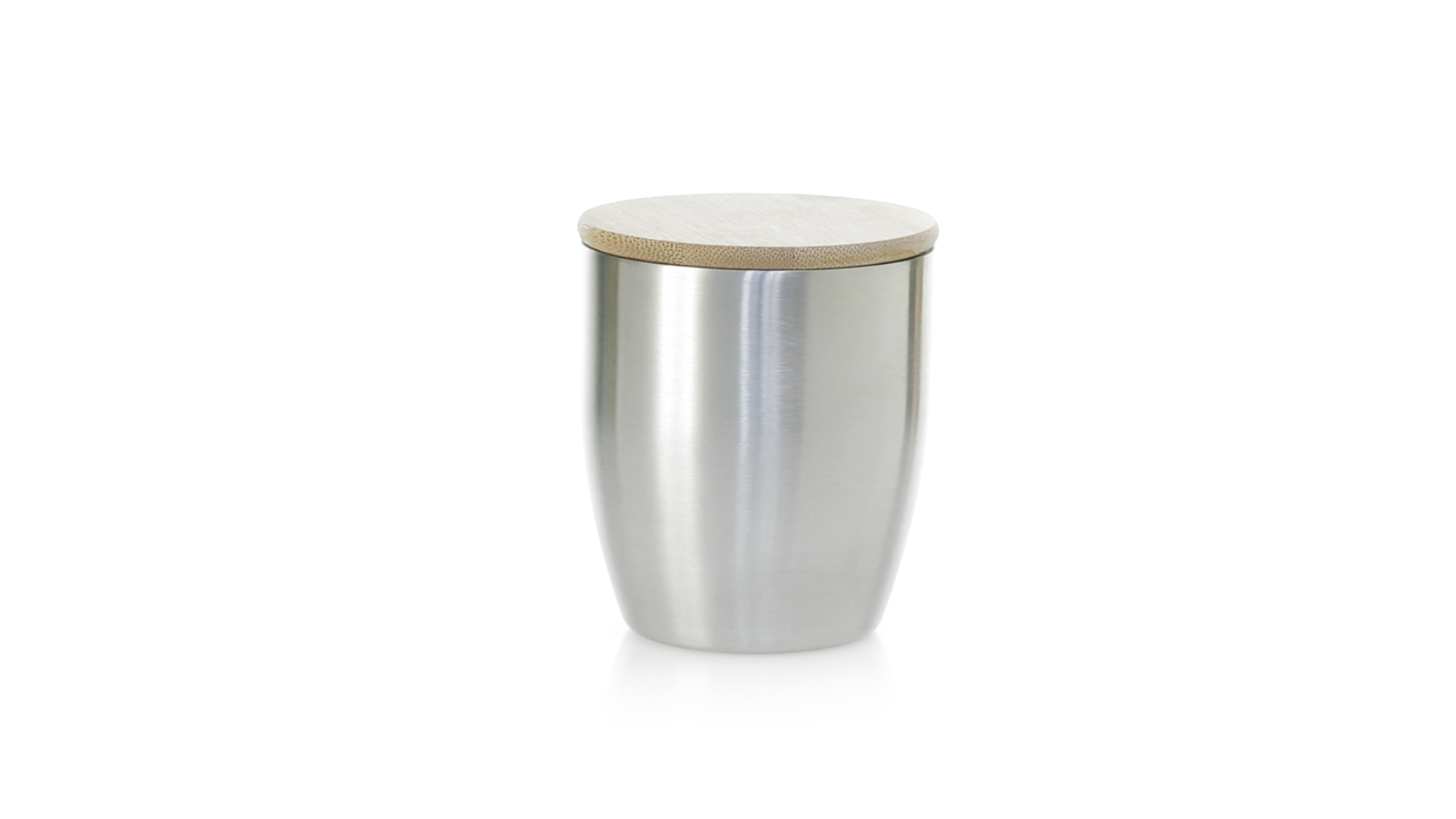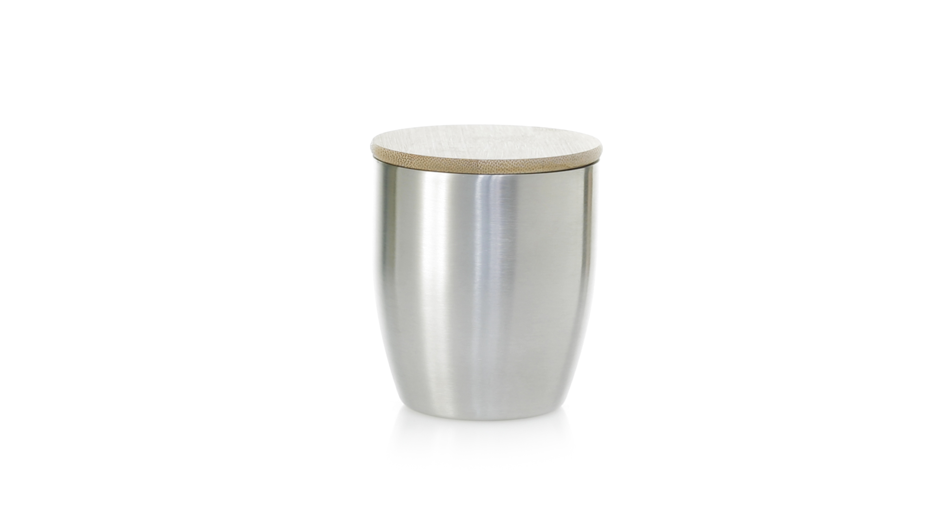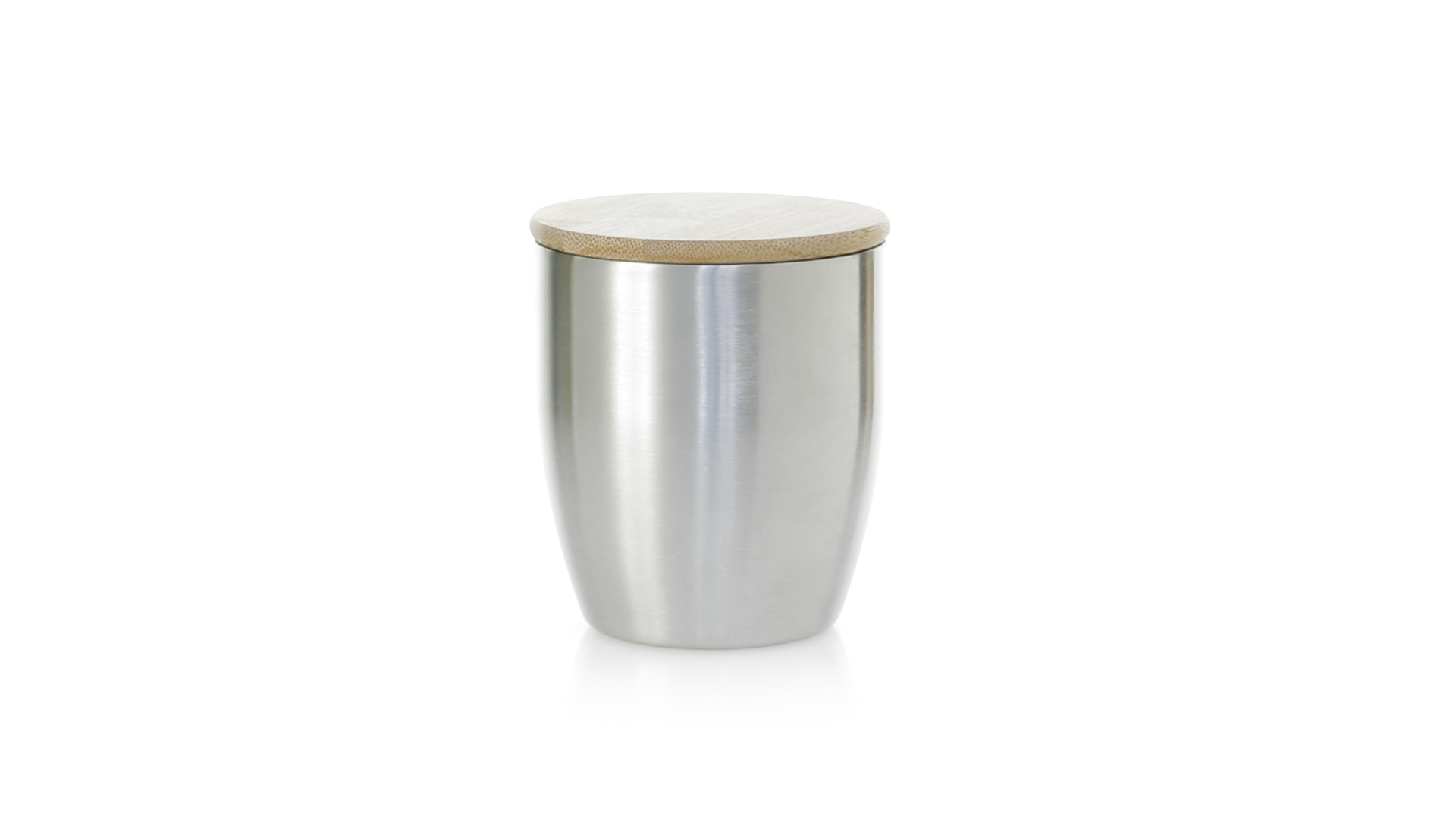 Doppelagiger Thermobecher aus Edelstahl mit 280ml Fassungsvermögen. Deckel aus Bambus und präsentiert in einer attraktiven Öko-Designbox.