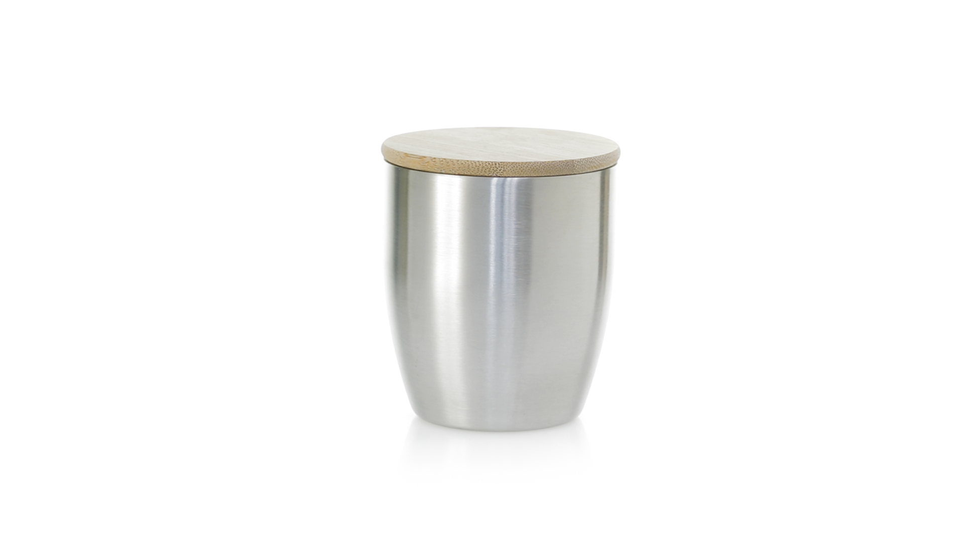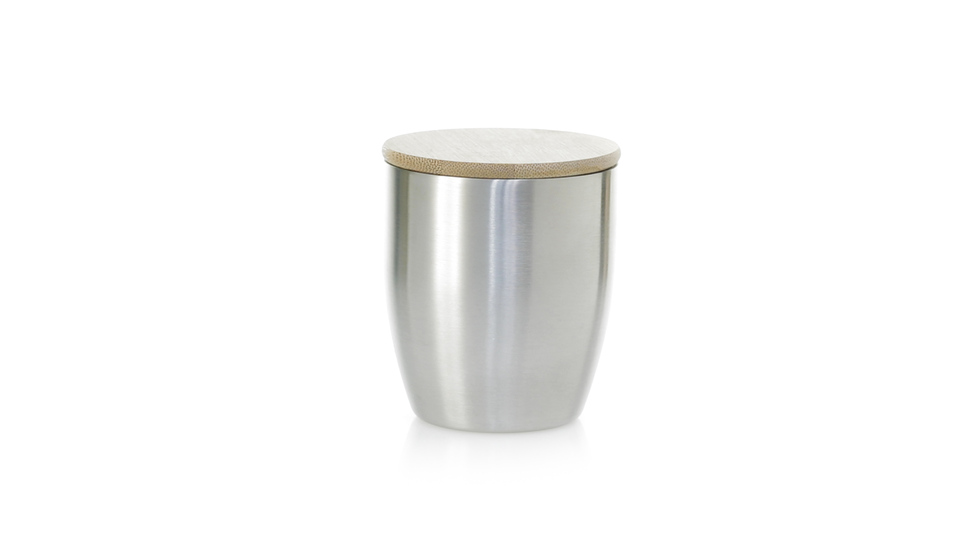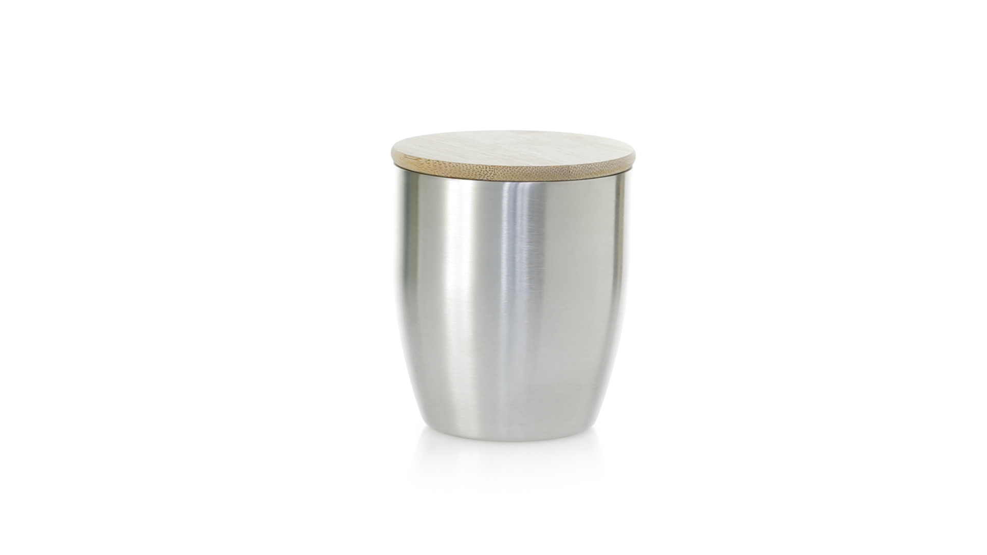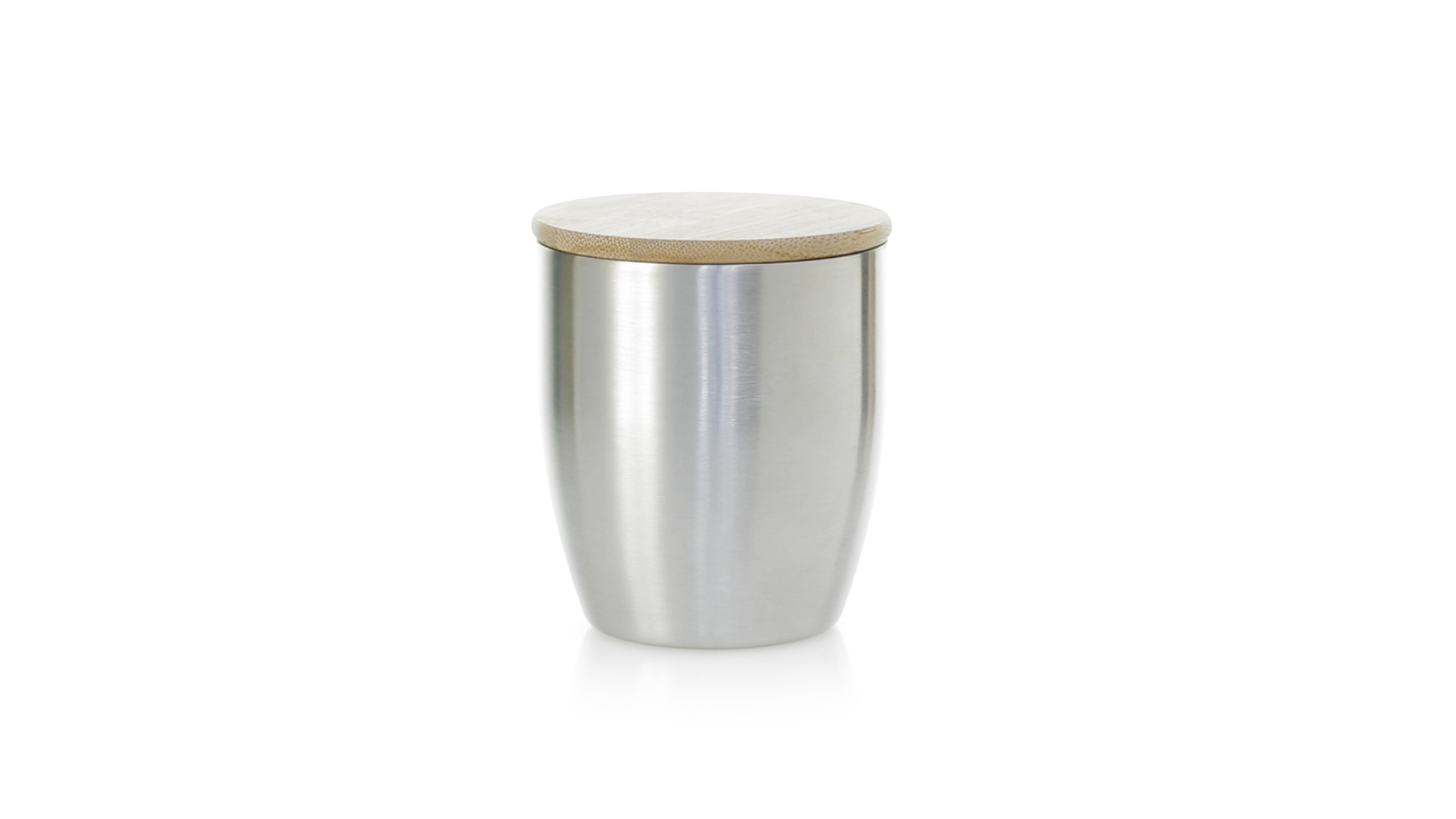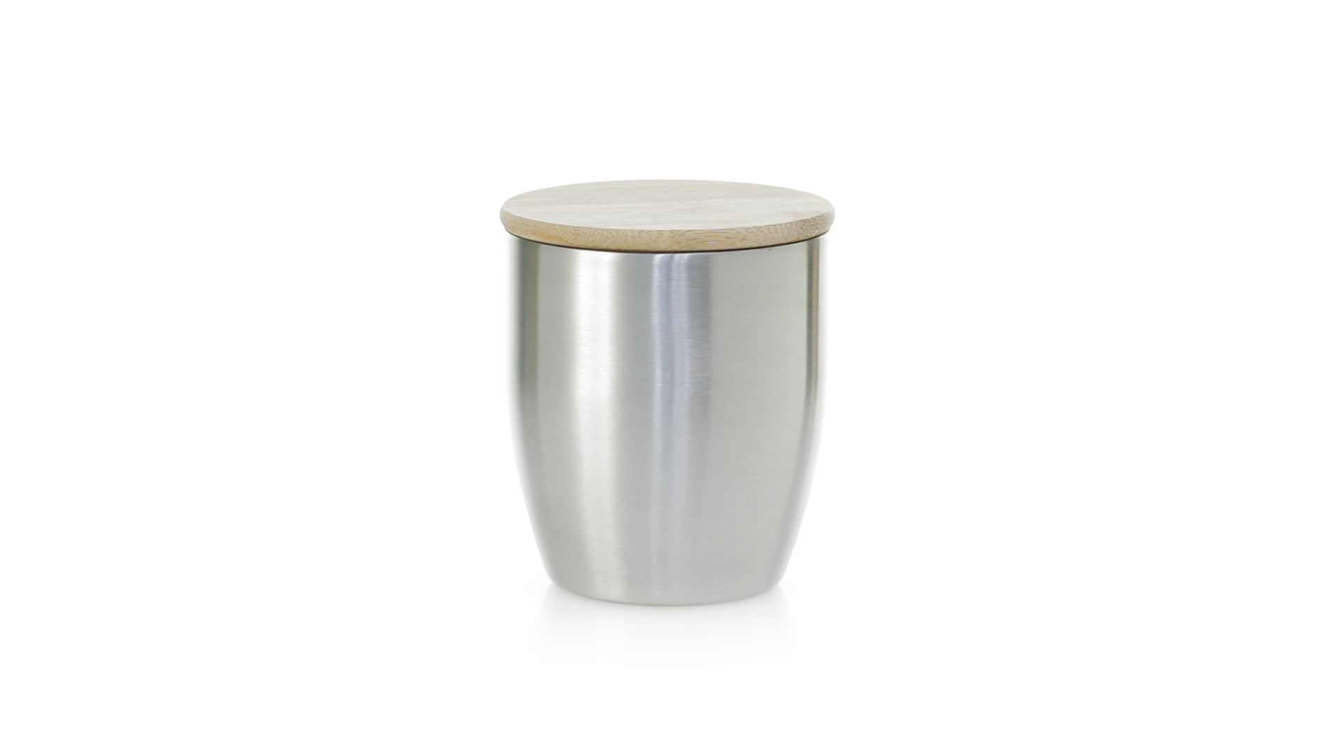 Doppelagiger Thermobecher aus Edelstahl mit 280ml Fassungsvermögen. Deckel aus Bambus und präsentiert in einer attraktiven Öko-Designbox.