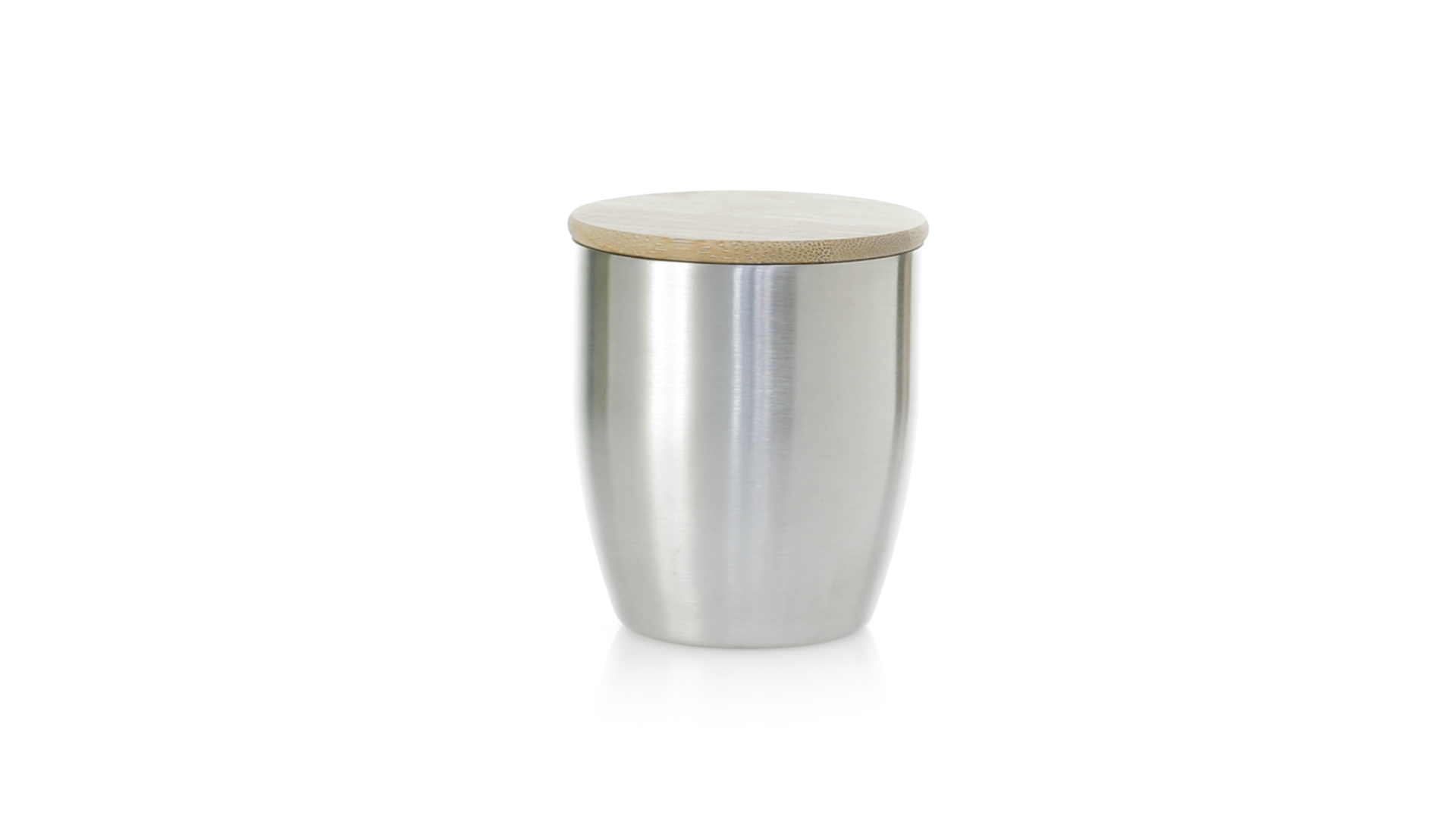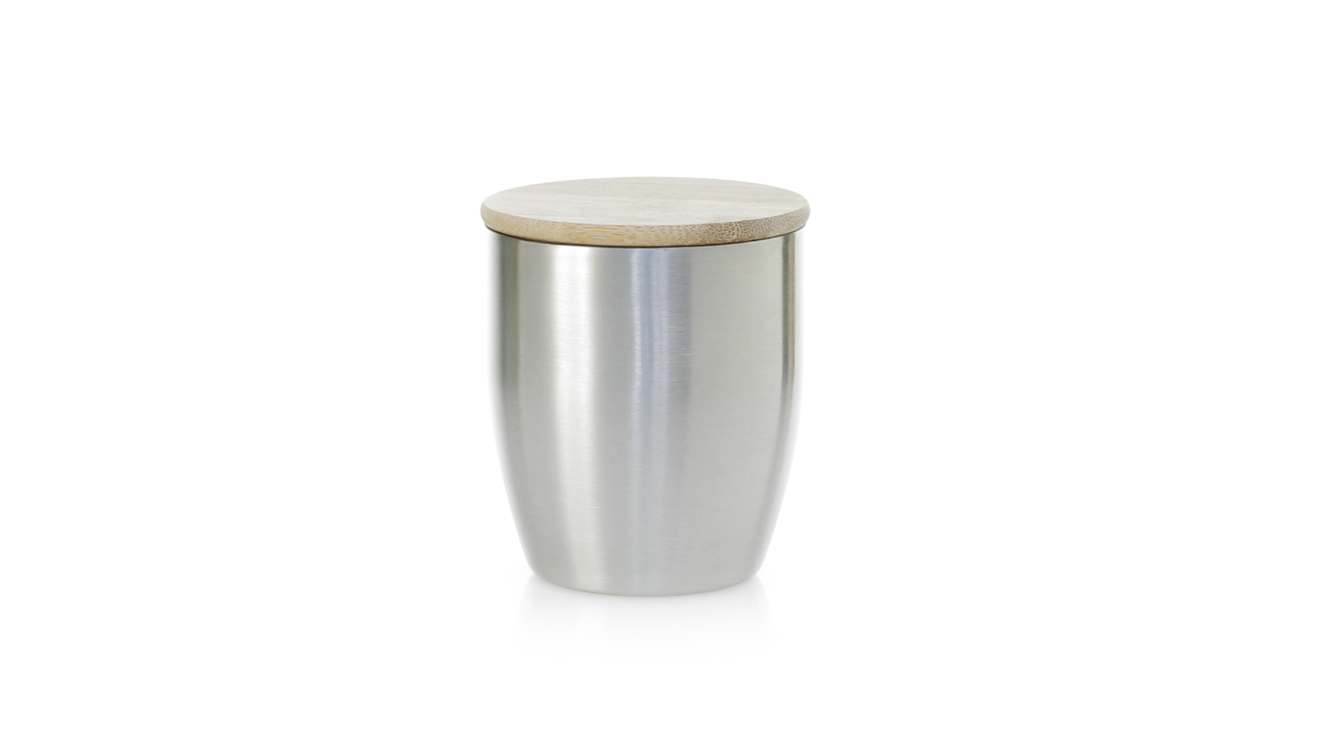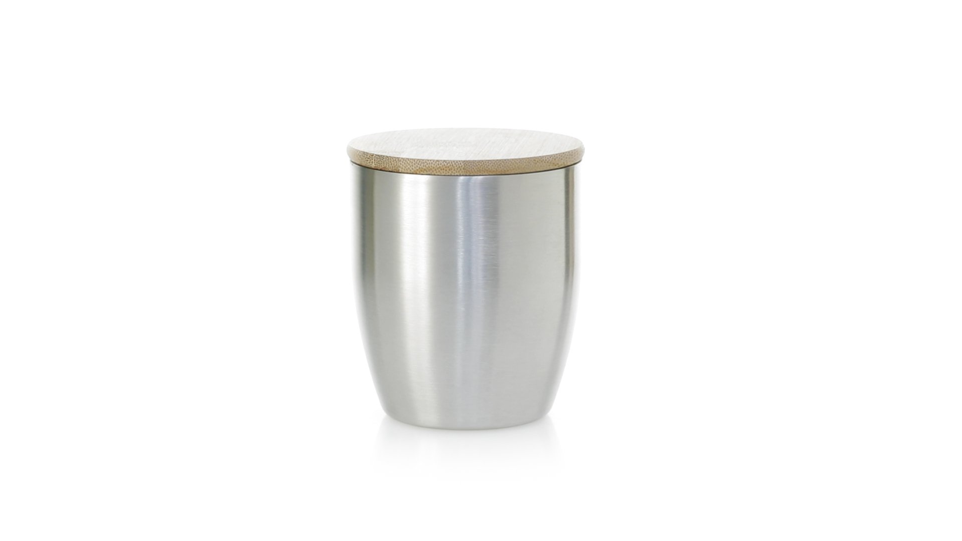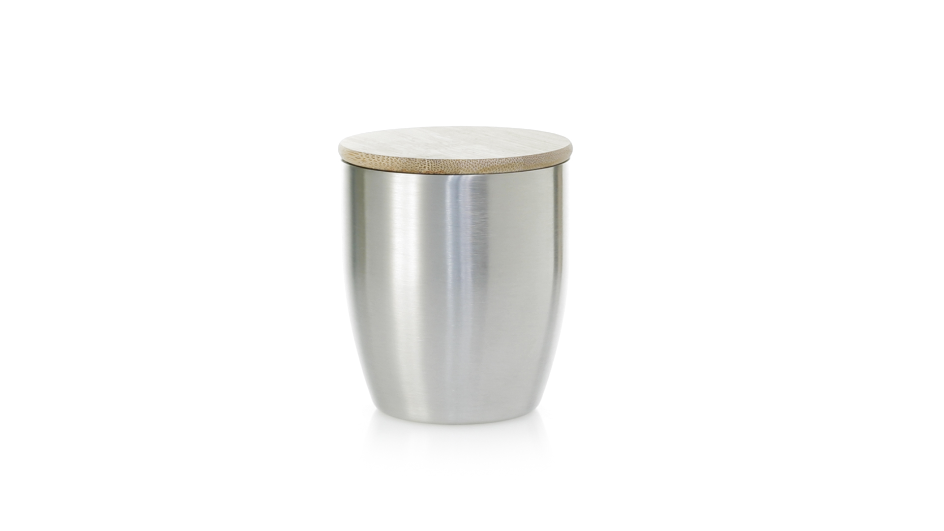Doppelagiger Thermobecher aus Edelstahl mit 280ml Fassungsvermögen. Deckel aus Bambus und präsentiert in einer attraktiven Öko-Designbox.
