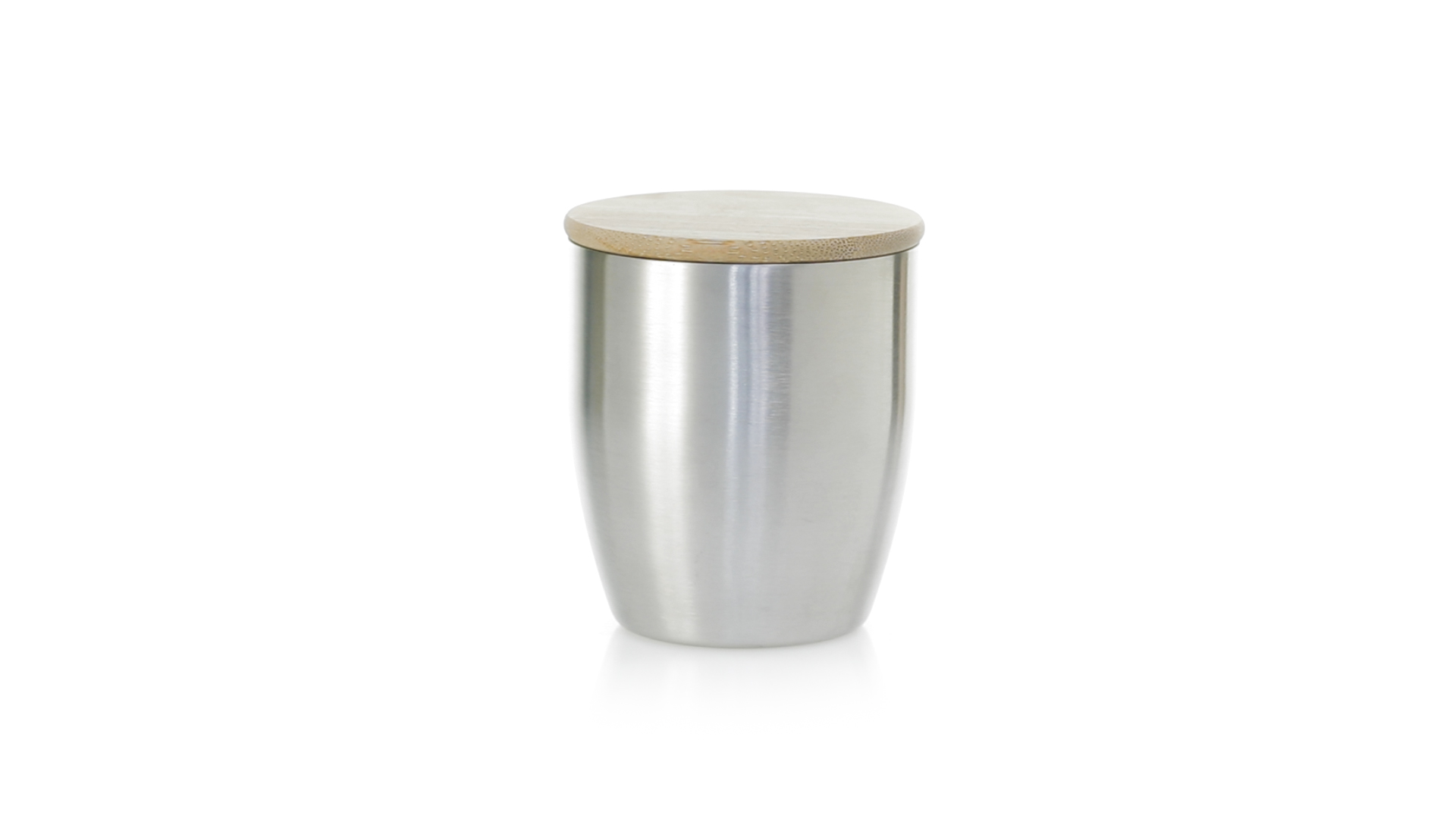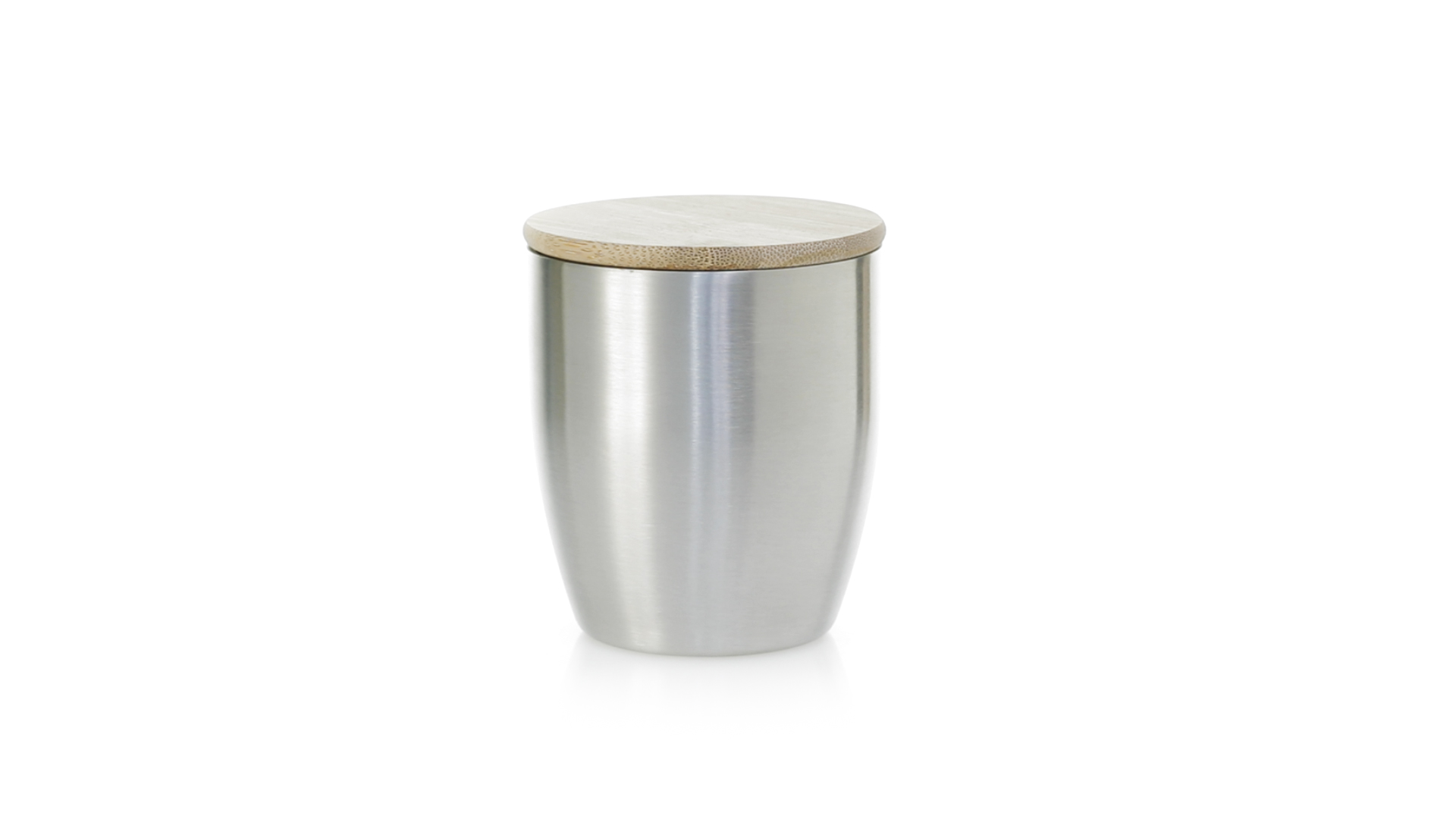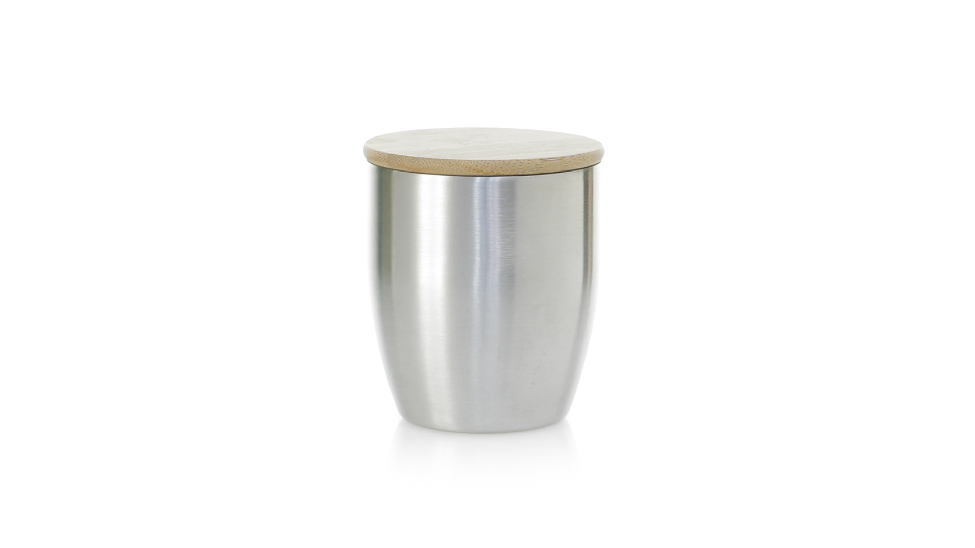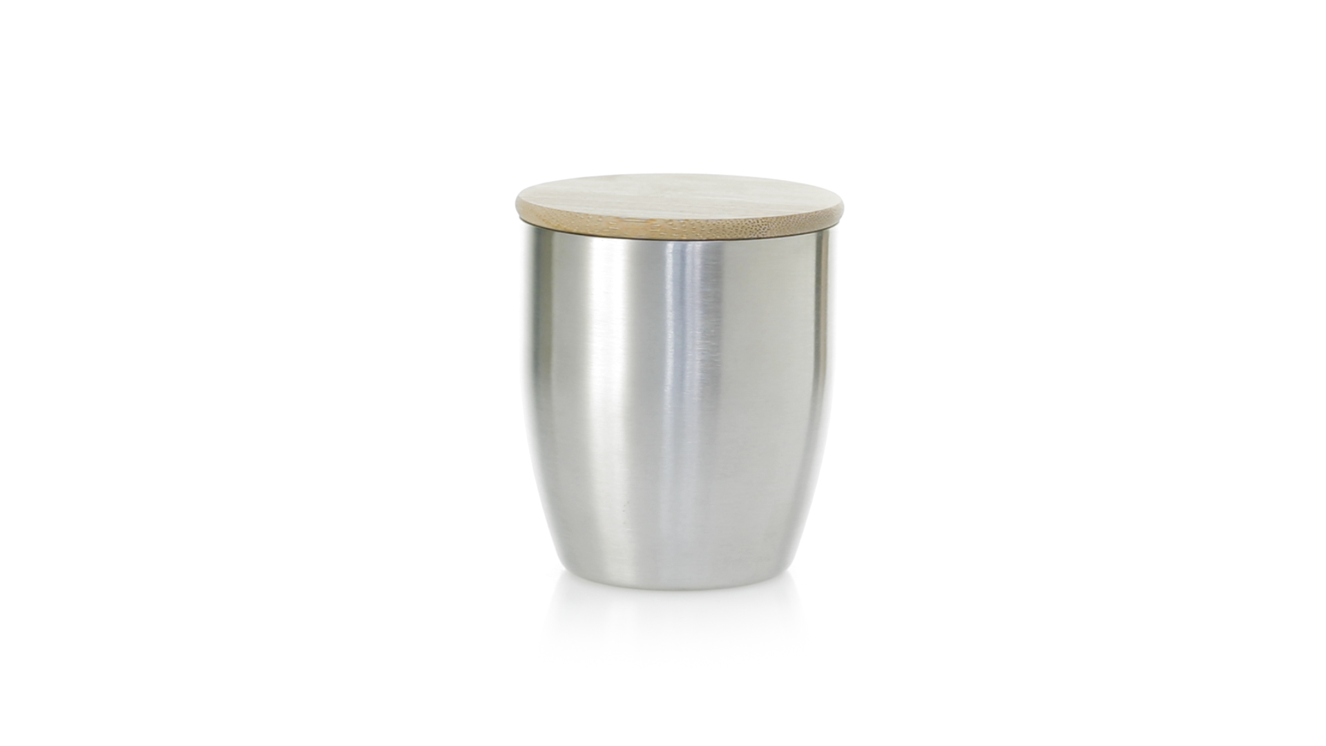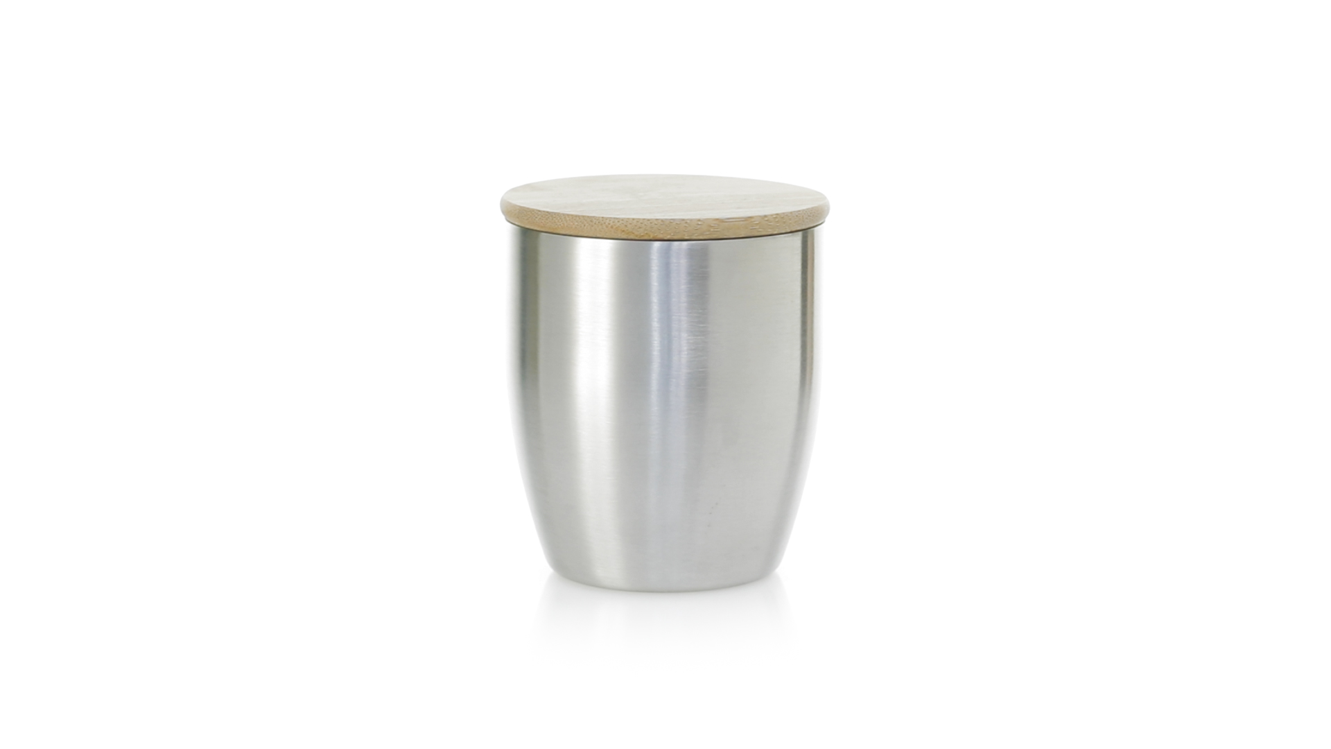 Doppelagiger Thermobecher aus Edelstahl mit 280ml Fassungsvermögen. Deckel aus Bambus und präsentiert in einer attraktiven Öko-Designbox.