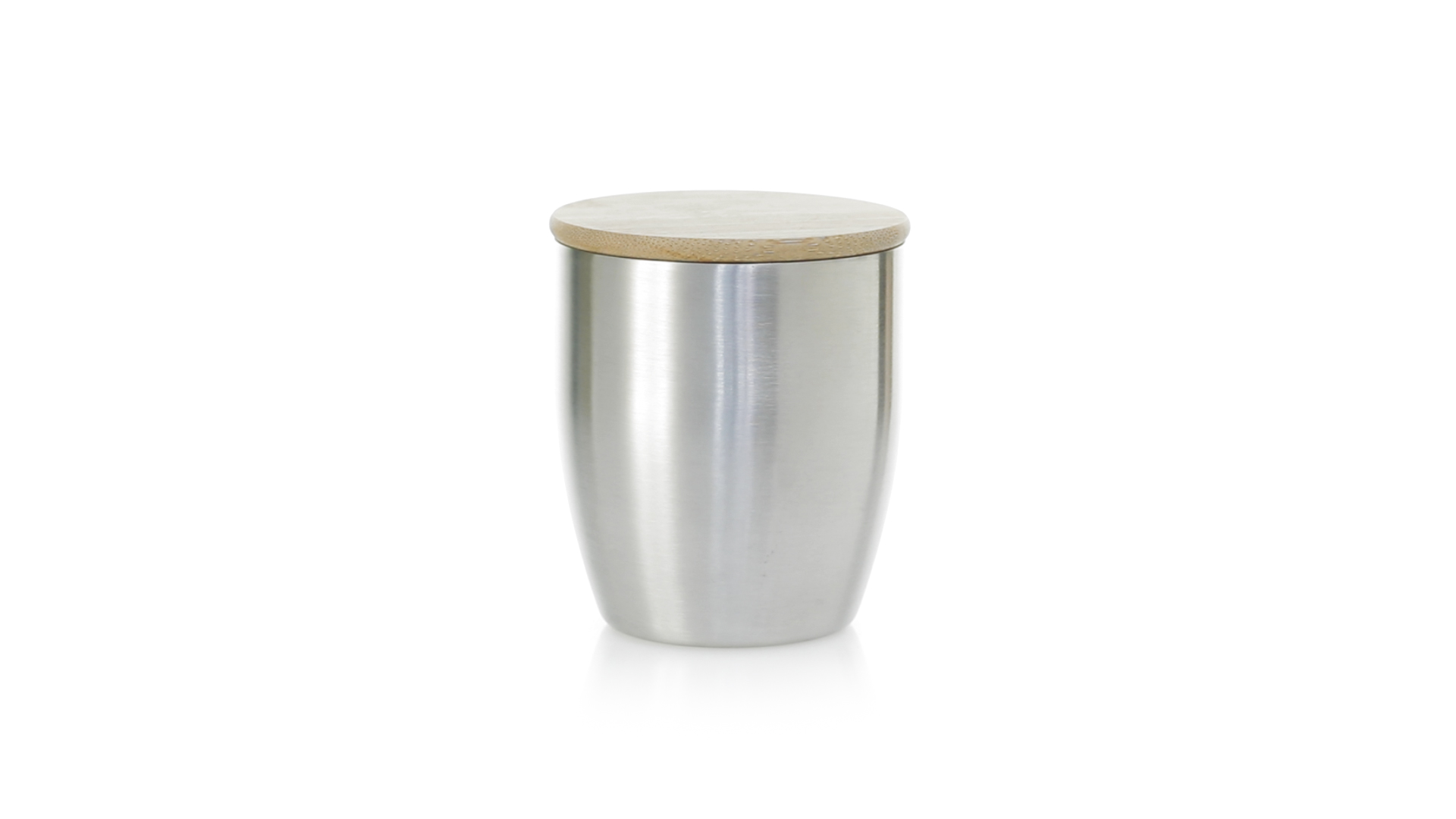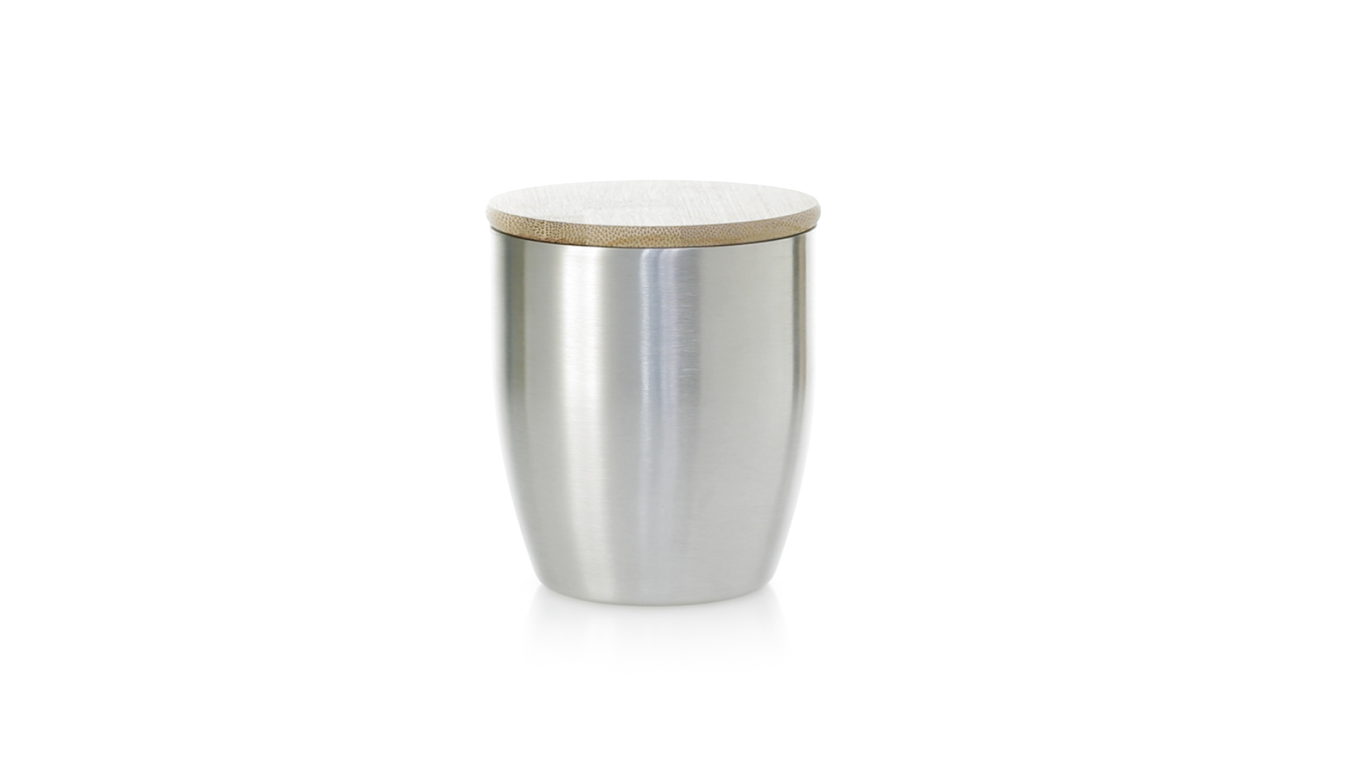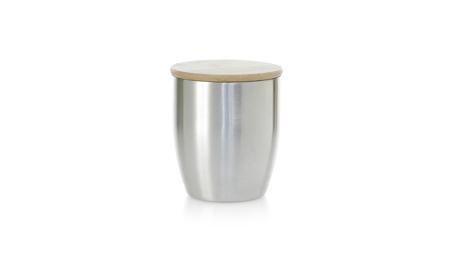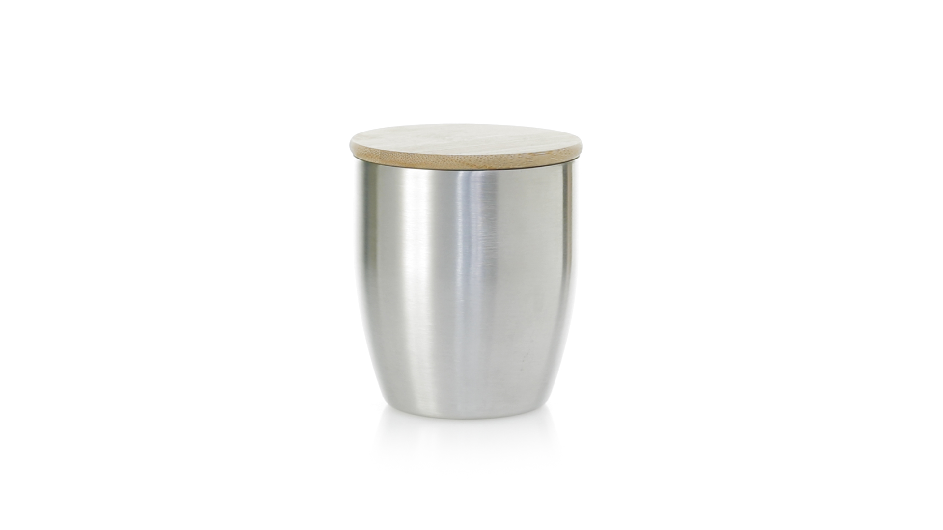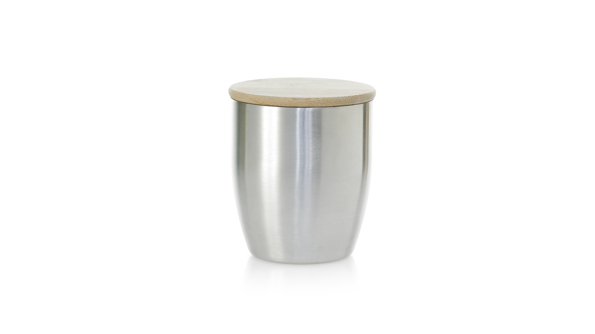 Doppelagiger Thermobecher aus Edelstahl mit 280ml Fassungsvermögen. Deckel aus Bambus und präsentiert in einer attraktiven Öko-Designbox.