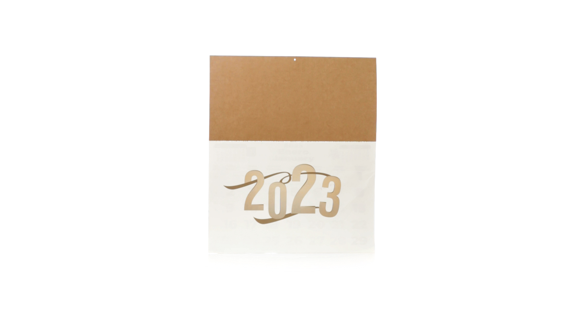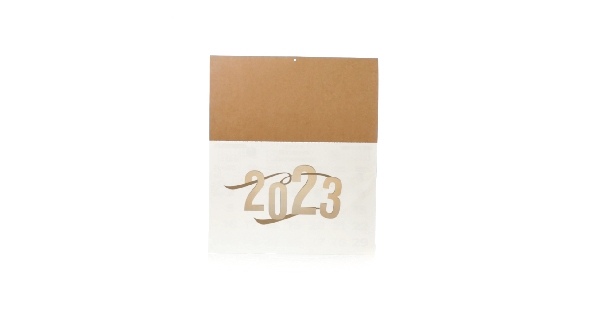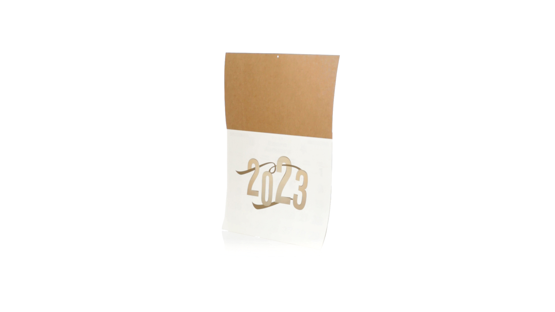 Wandkalender aus recyceltem Karton der Linie Natur. Monatliches Design, mit einem Loch zum Aufhängen an der Wand und einer grossen Brandingfläche.
