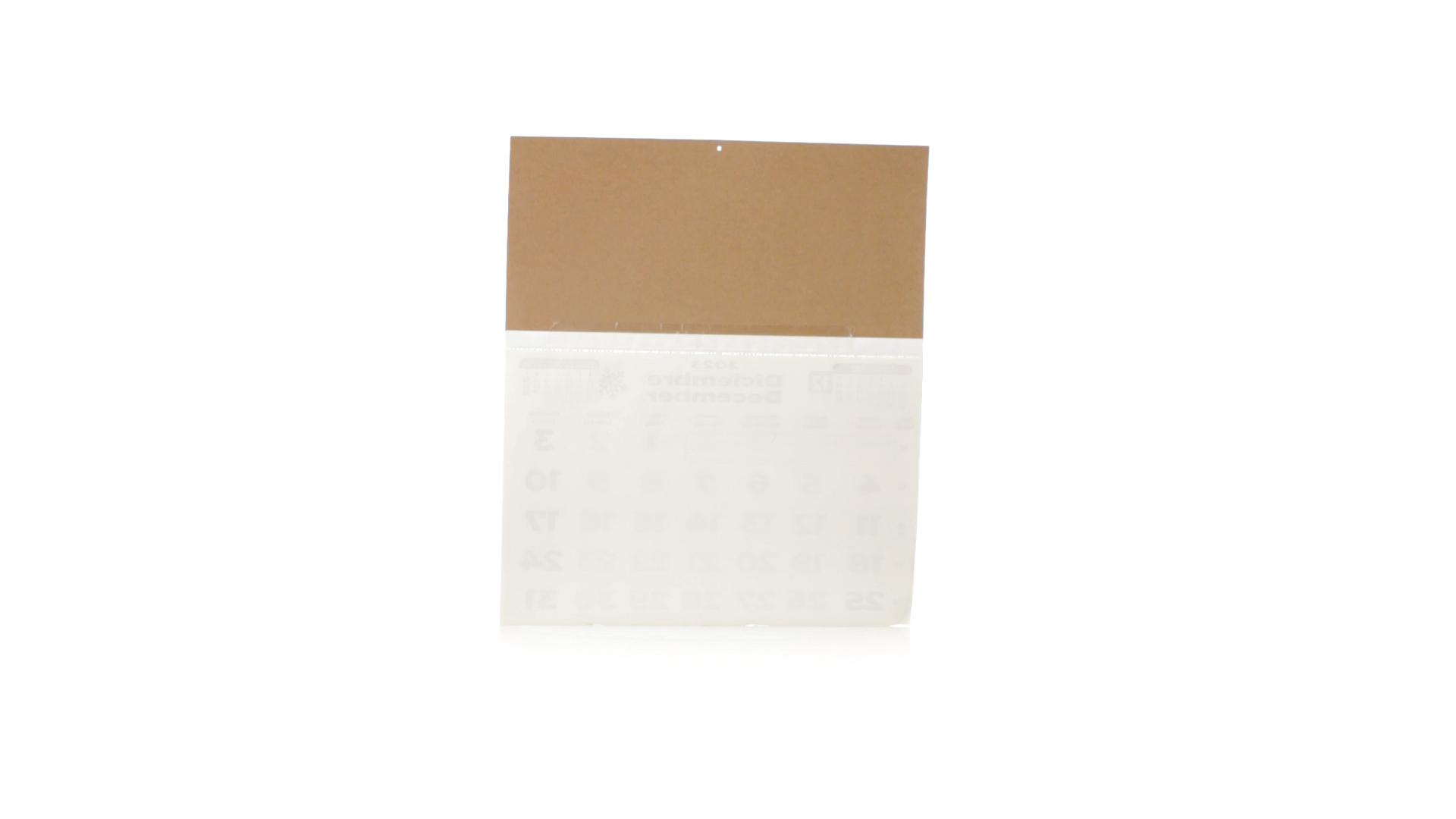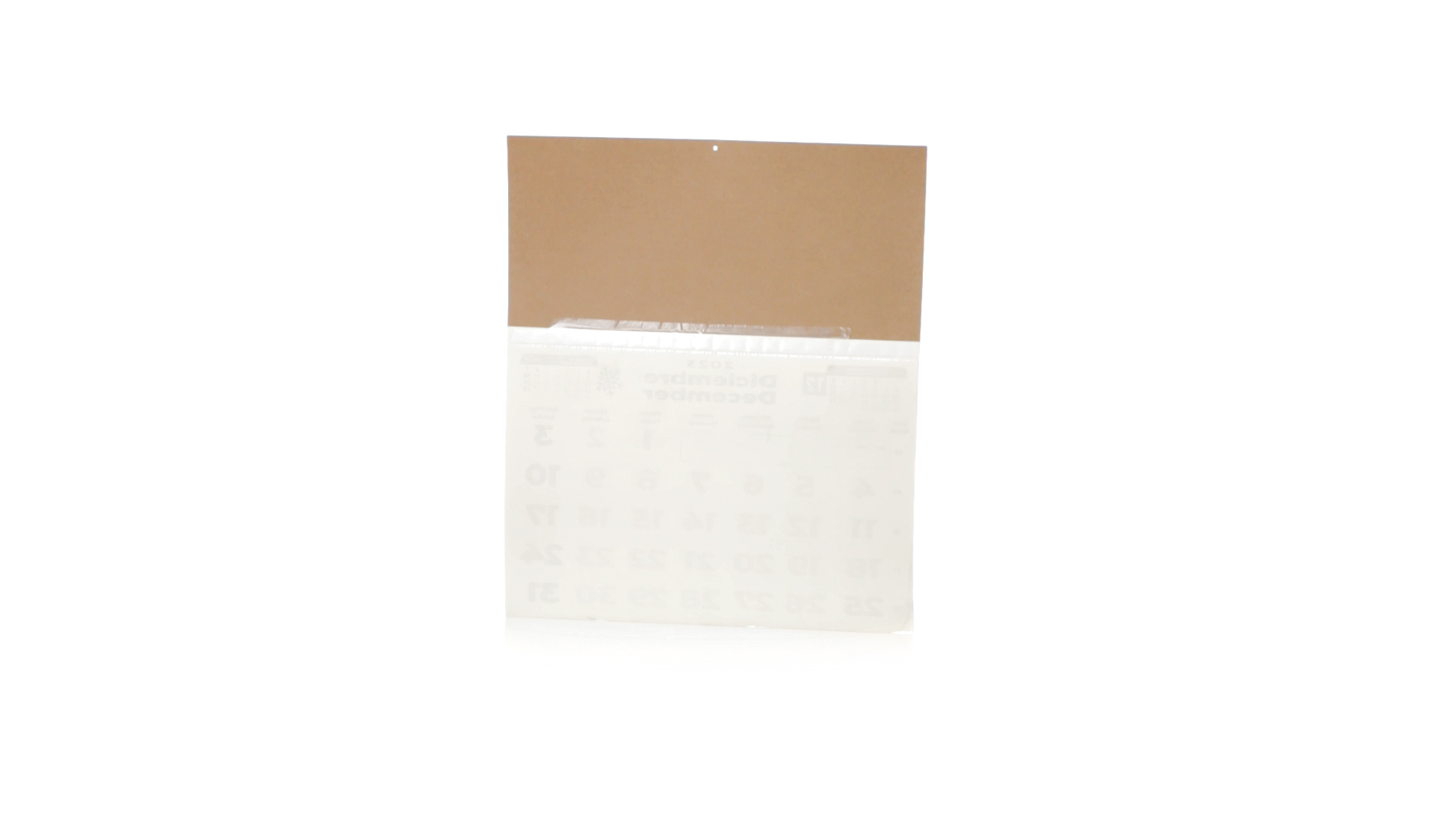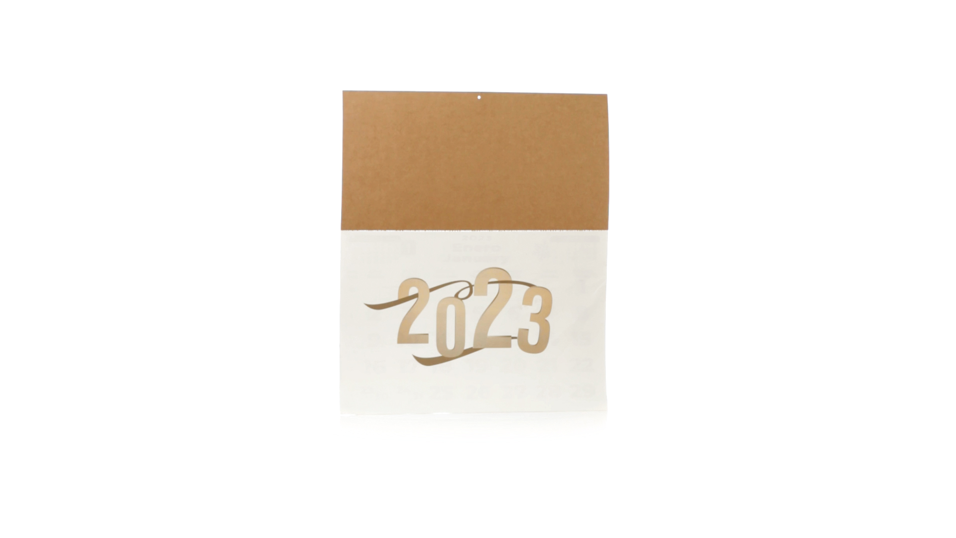 Wandkalender aus recyceltem Karton der Linie Natur. Monatliches Design, mit einem Loch zum Aufhängen an der Wand und einer grossen Brandingfläche.