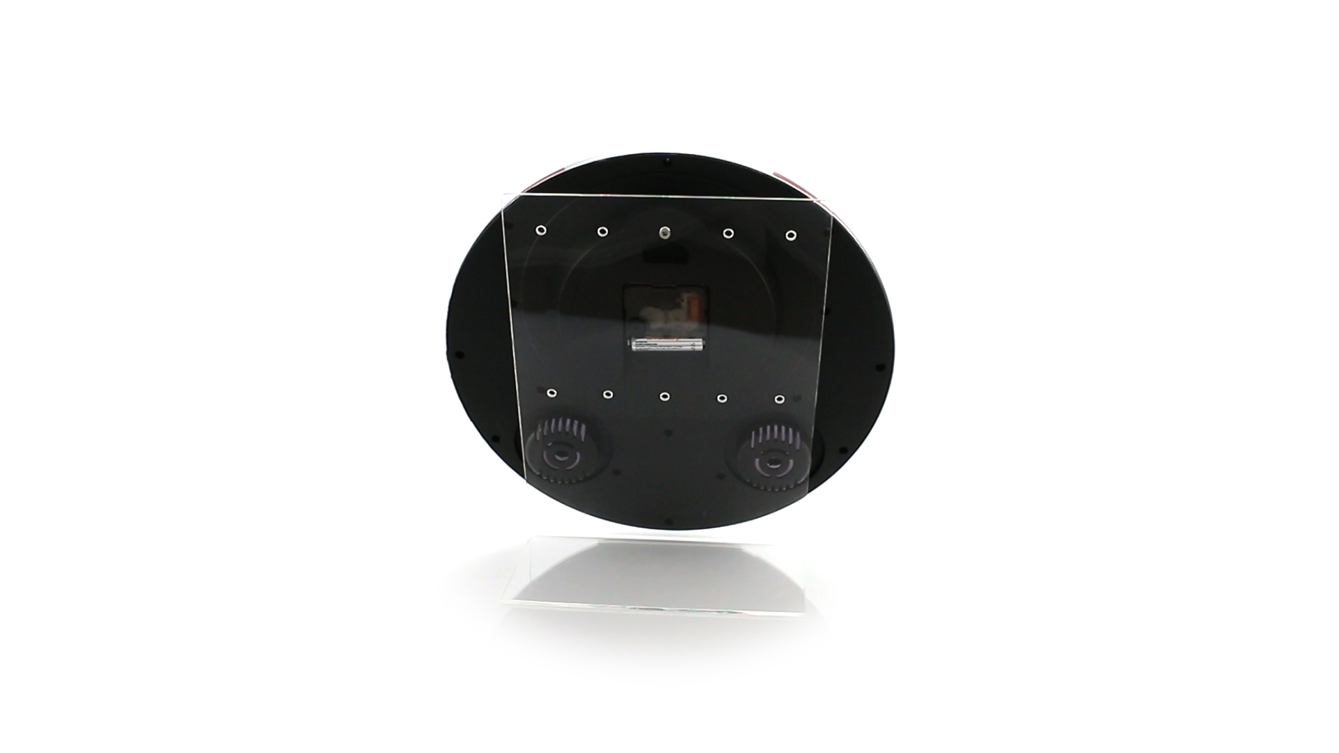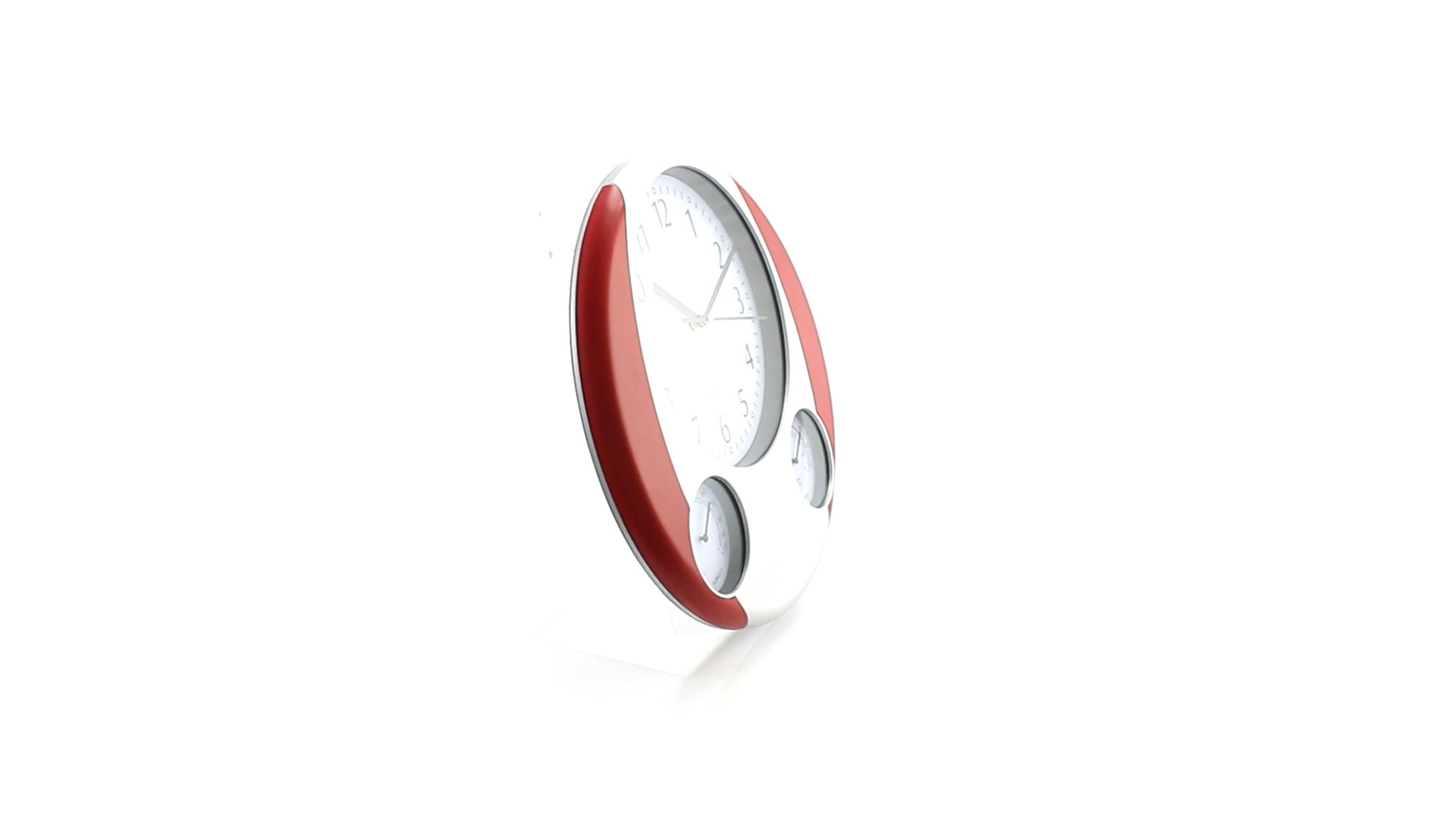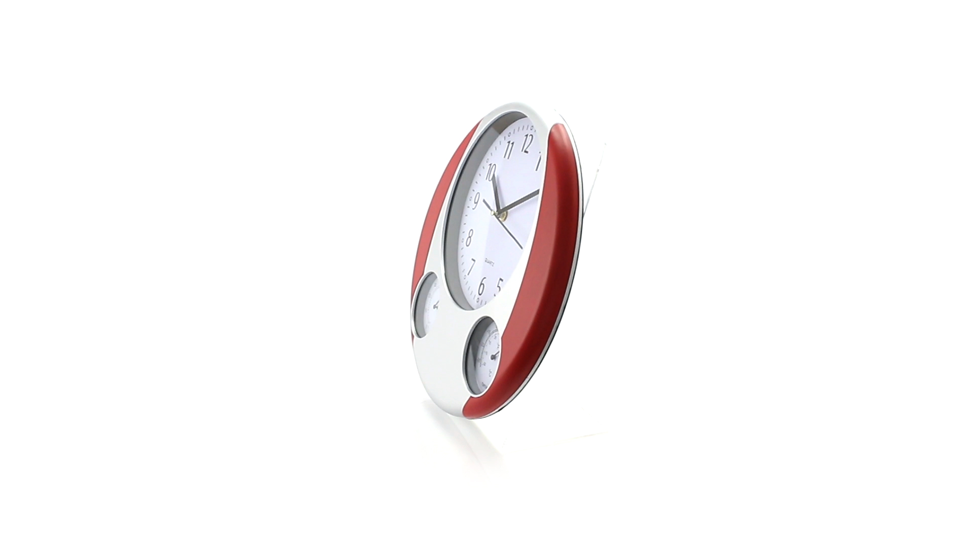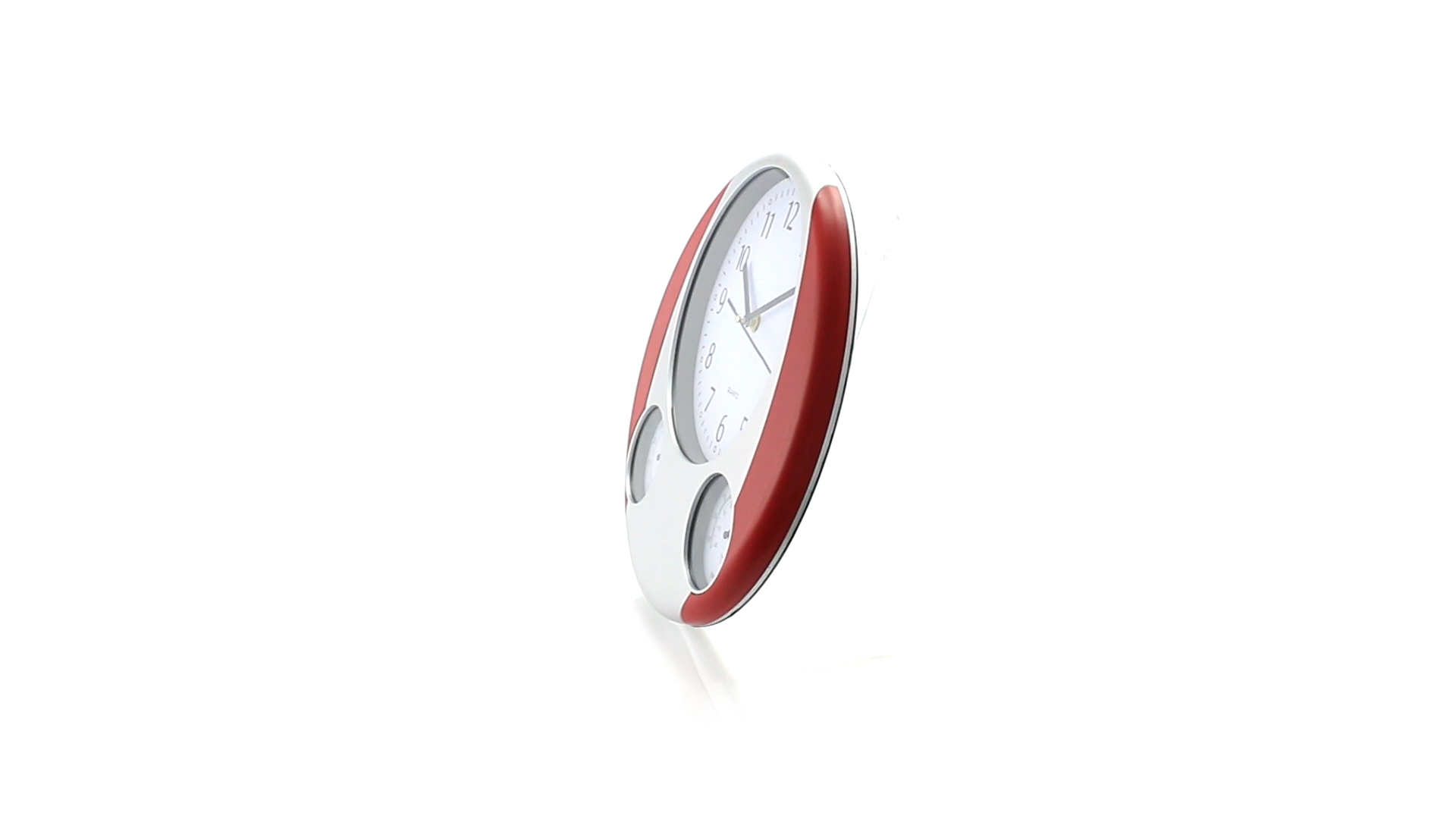 Analoge Wanduhr mit rundem Design, integriertem Thermometer und Luftfeuchtigkeitsmesser. Batteriebetrieben - Typ AA nicht inklusive. Präsentiert in einer individuellen Box.