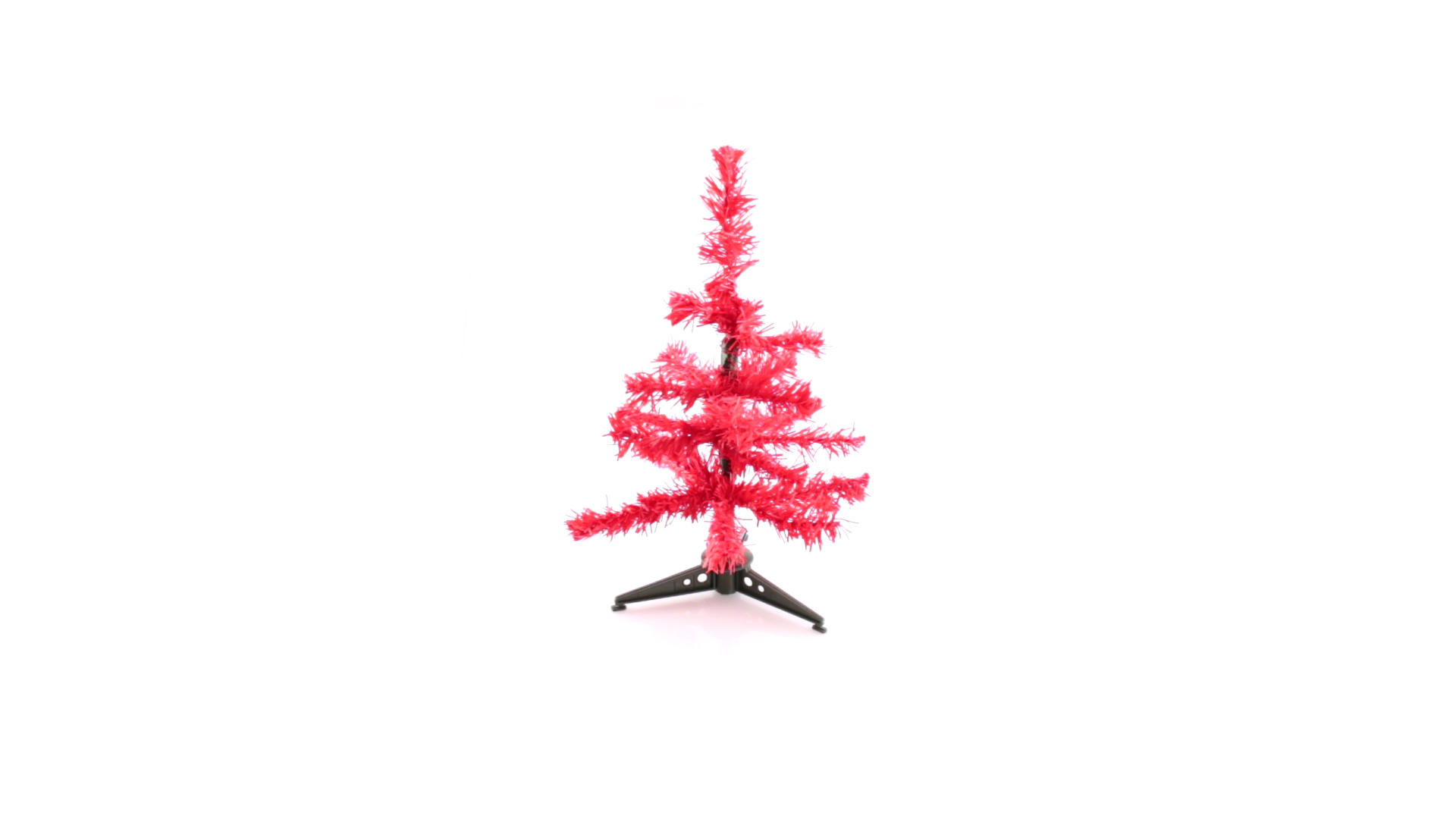Weihnachtsbaum mit verstellbaren Zweigen in fröhlichen Farben.