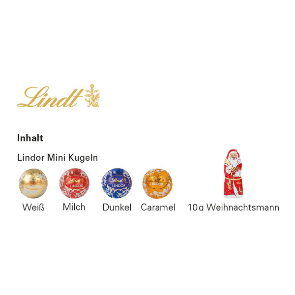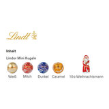 Vier Sorten Lindor Mini Kugeln von Lindt, bunt gemischt, 18 g und ein Lindt Weihnachtsmann, 10 g