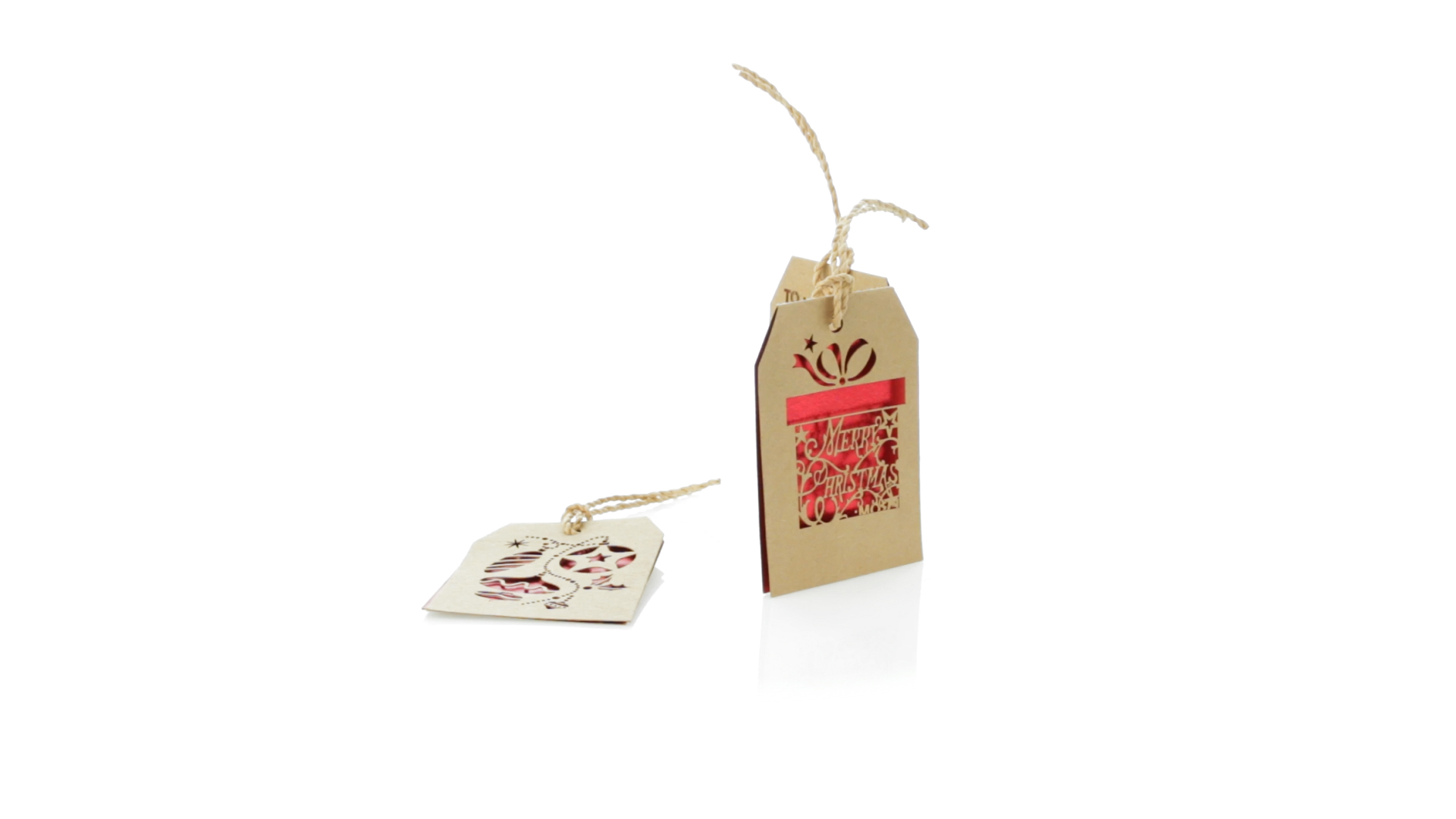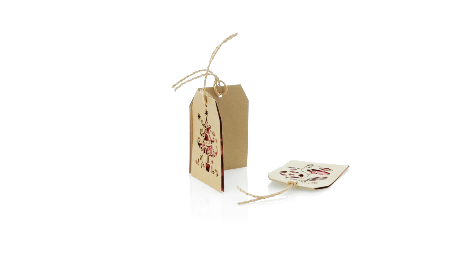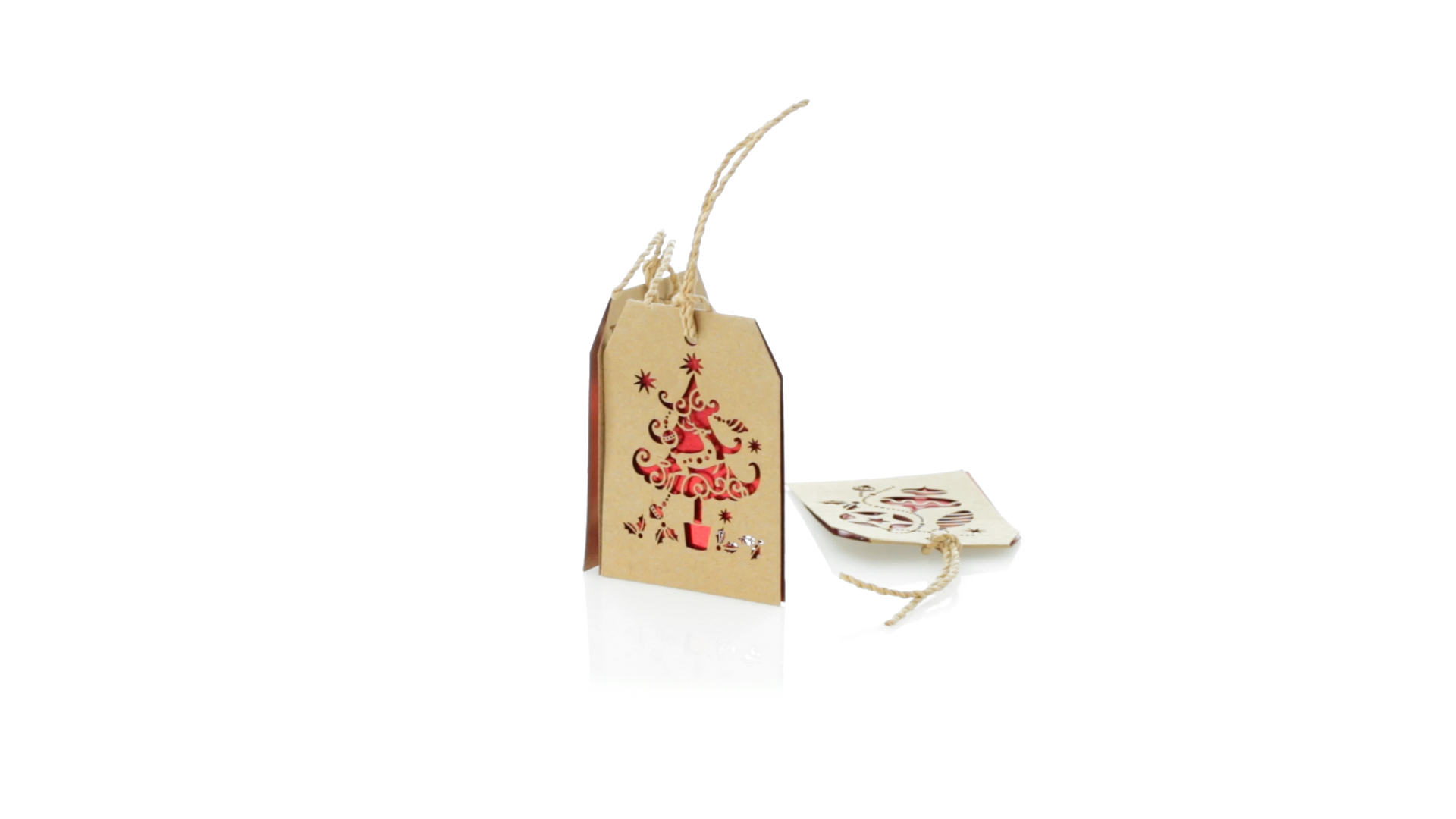 Geschenkanhänger mit weihnachtlichem Design. Aus geschmeidigem Karton in Naturfarbe mit Stanzung und rotem Interieur. Mit Schlaufe zum Aufhängen und Rückseite für Weihnachtsgrüsse. Erhältlich mit verschiedenen Weihnachtsmotiven.
