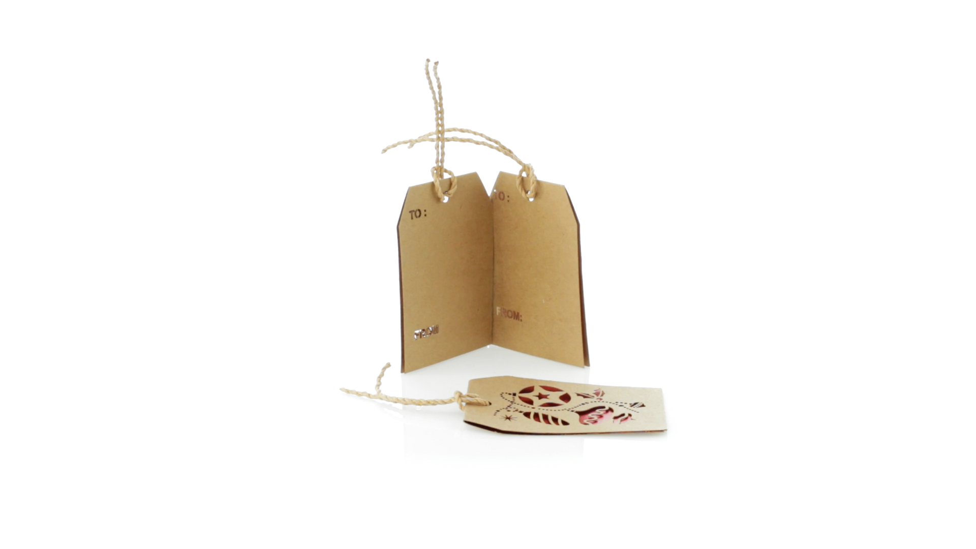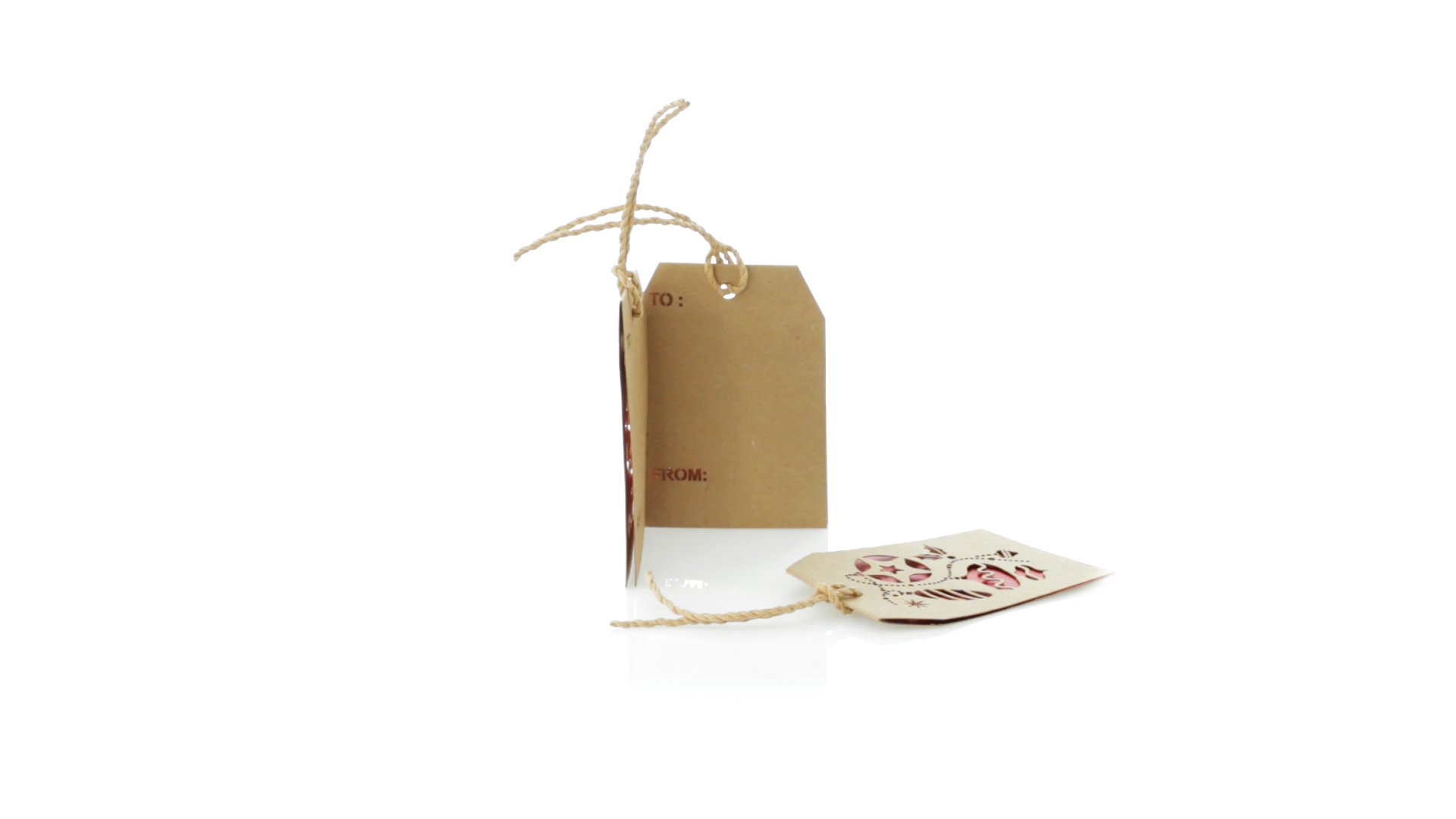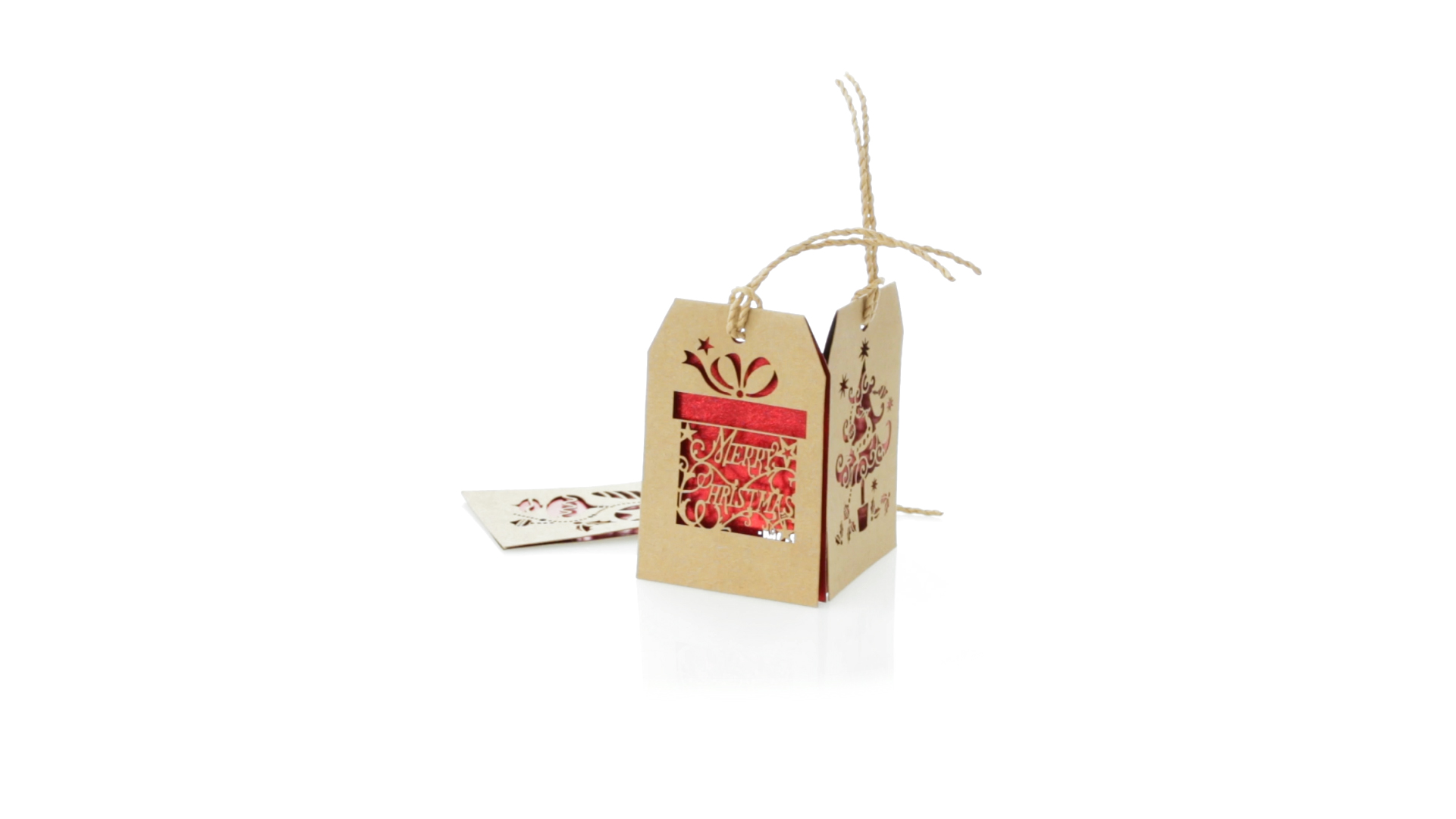 Geschenkanhänger mit weihnachtlichem Design. Aus geschmeidigem Karton in Naturfarbe mit Stanzung und rotem Interieur. Mit Schlaufe zum Aufhängen und Rückseite für Weihnachtsgrüsse. Erhältlich mit verschiedenen Weihnachtsmotiven.