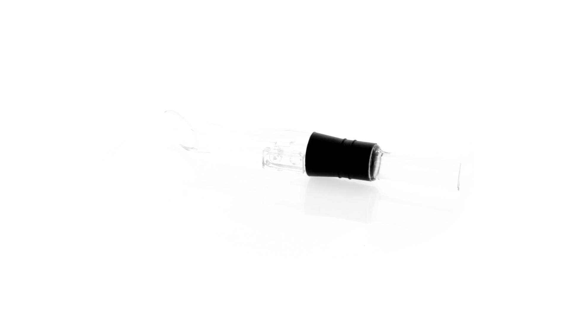 Weinbelüfter mit transparentem Acryl-Gehäuse und Sicherheits-Gummistopfen. Präsentiert in einer attraktiven Designbox aus PVC.