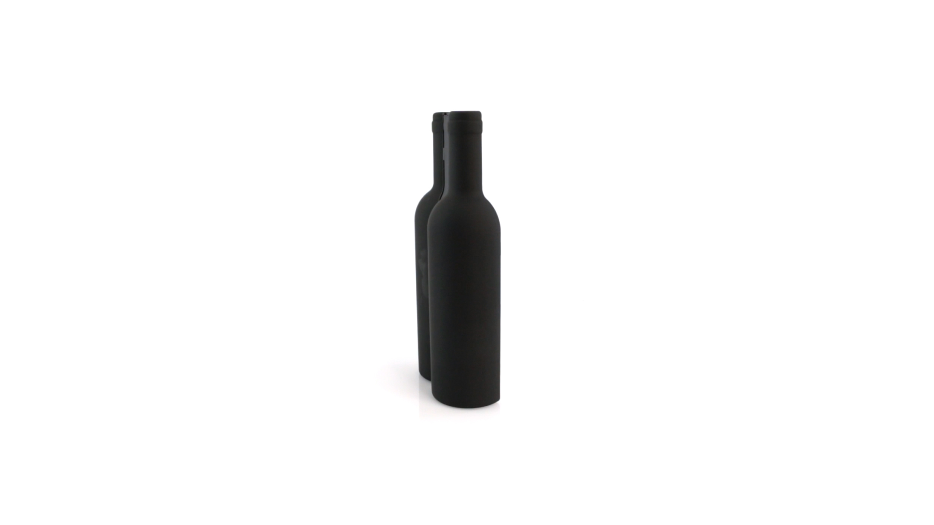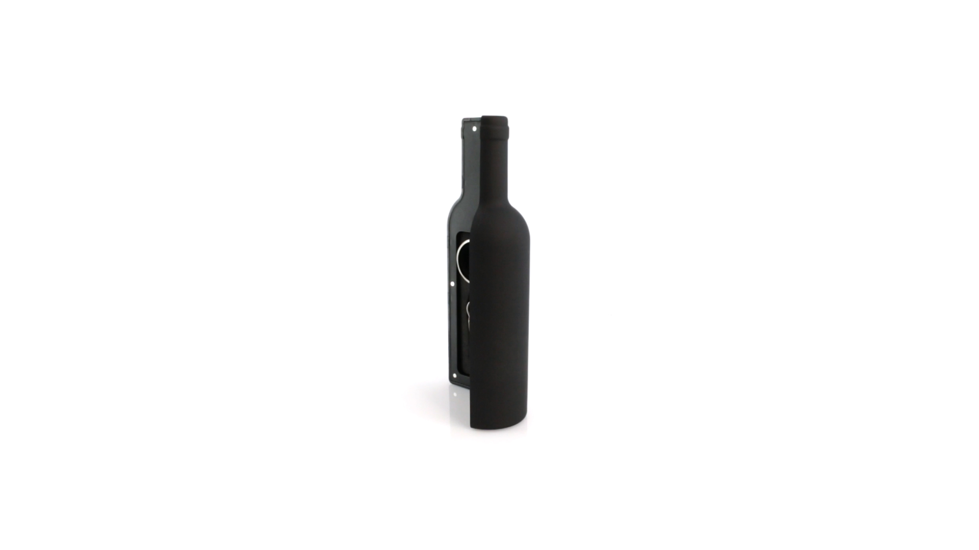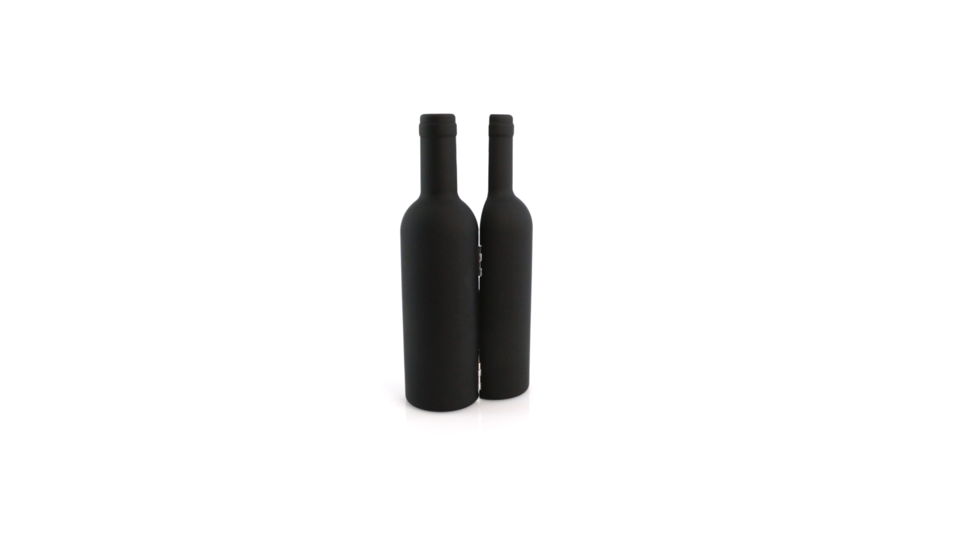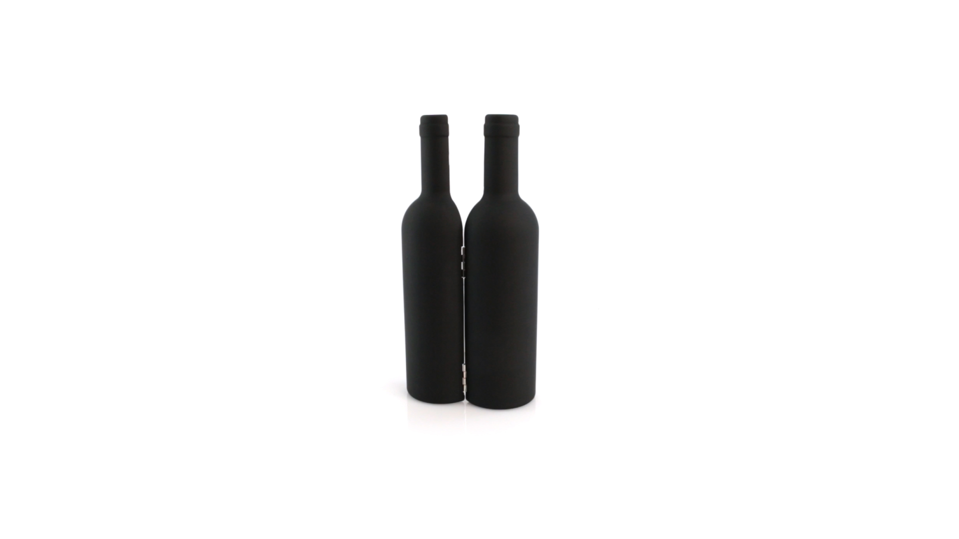 Originelles flaschenförmiges Wein-Set mit angenehm weicher Oberfläche, Magnetverschluss und Accessoires aus Edelstahl. Enthält Korkenzieher mit Kapselschneider und Flaschenöffner sowie Dosierkappe und Tropfring. Präsentiert in einer individuellen Box, ausgekleidet mit weichem Schaumstoff.