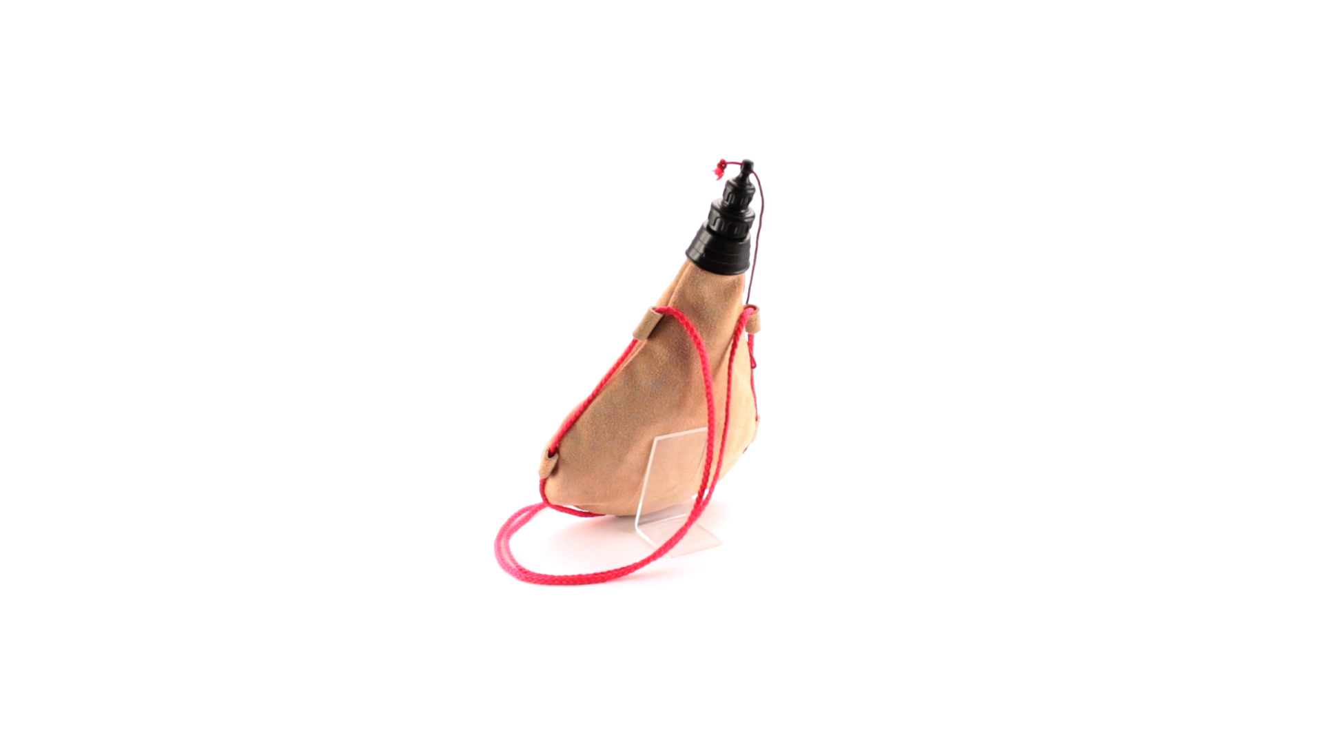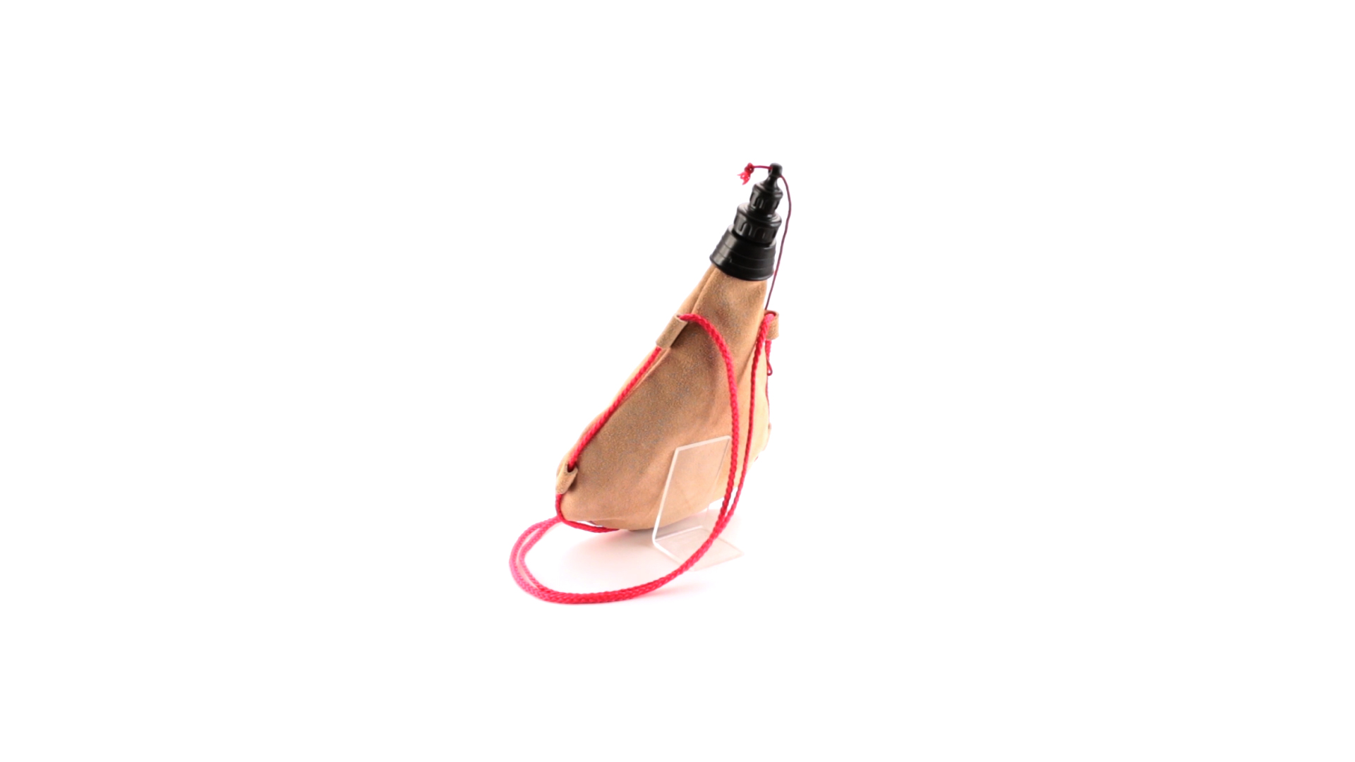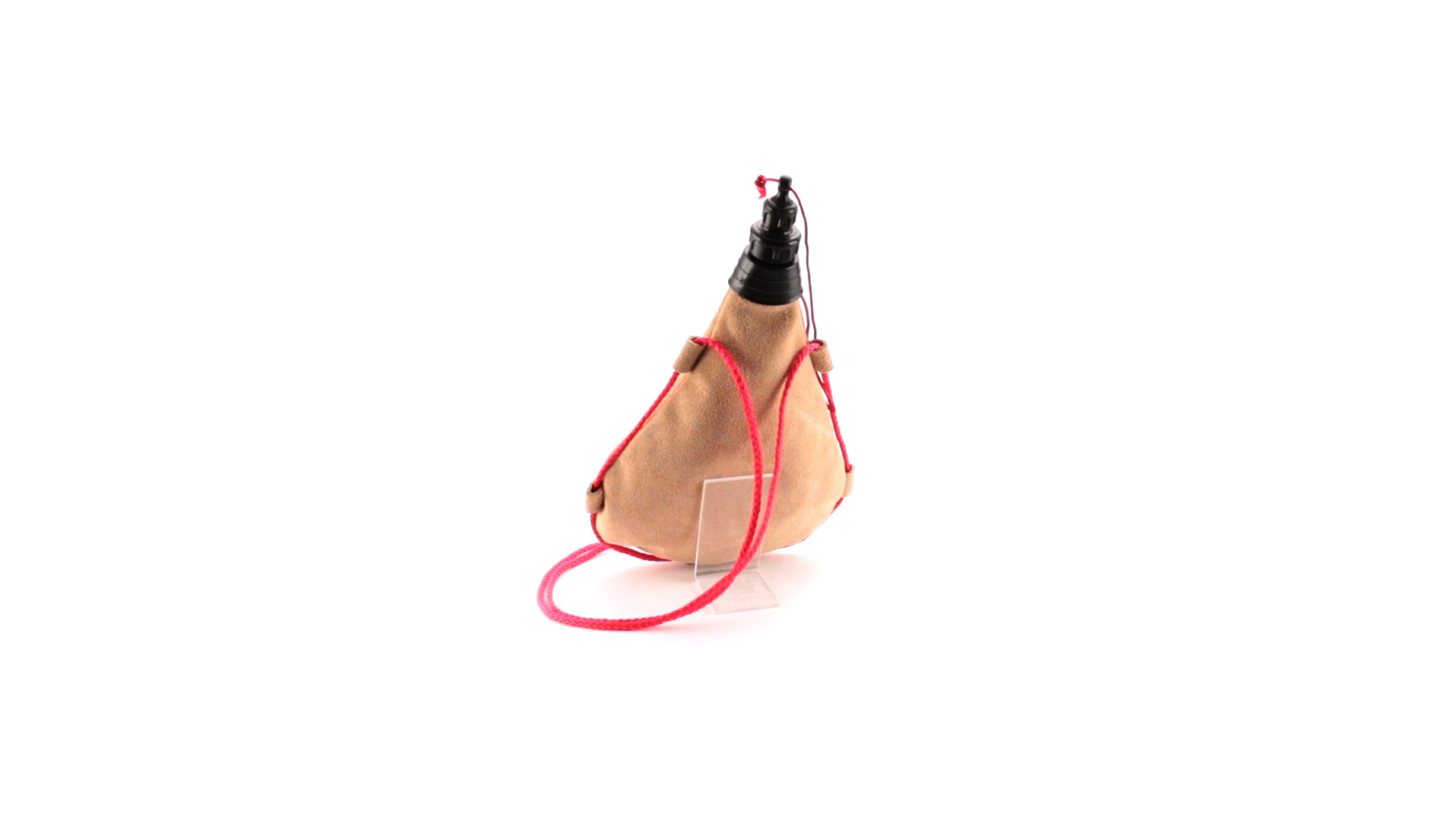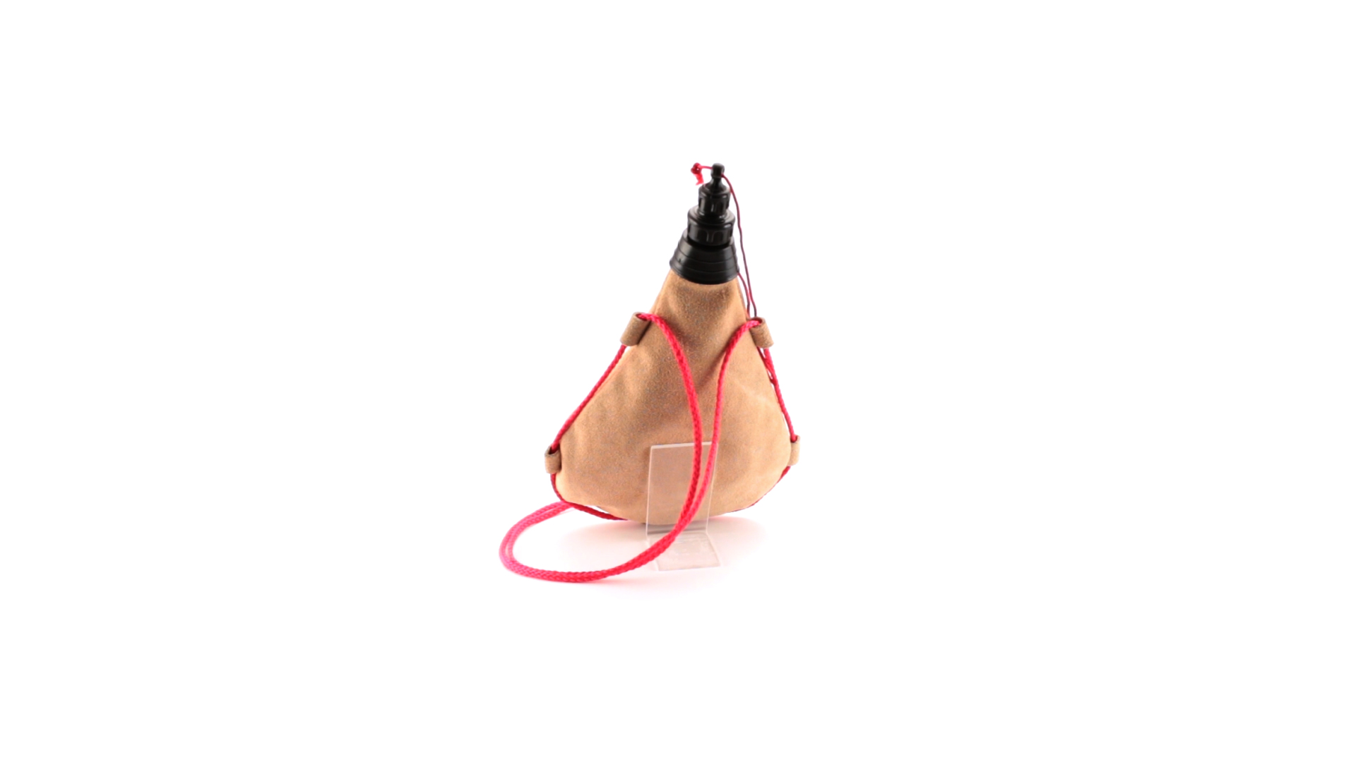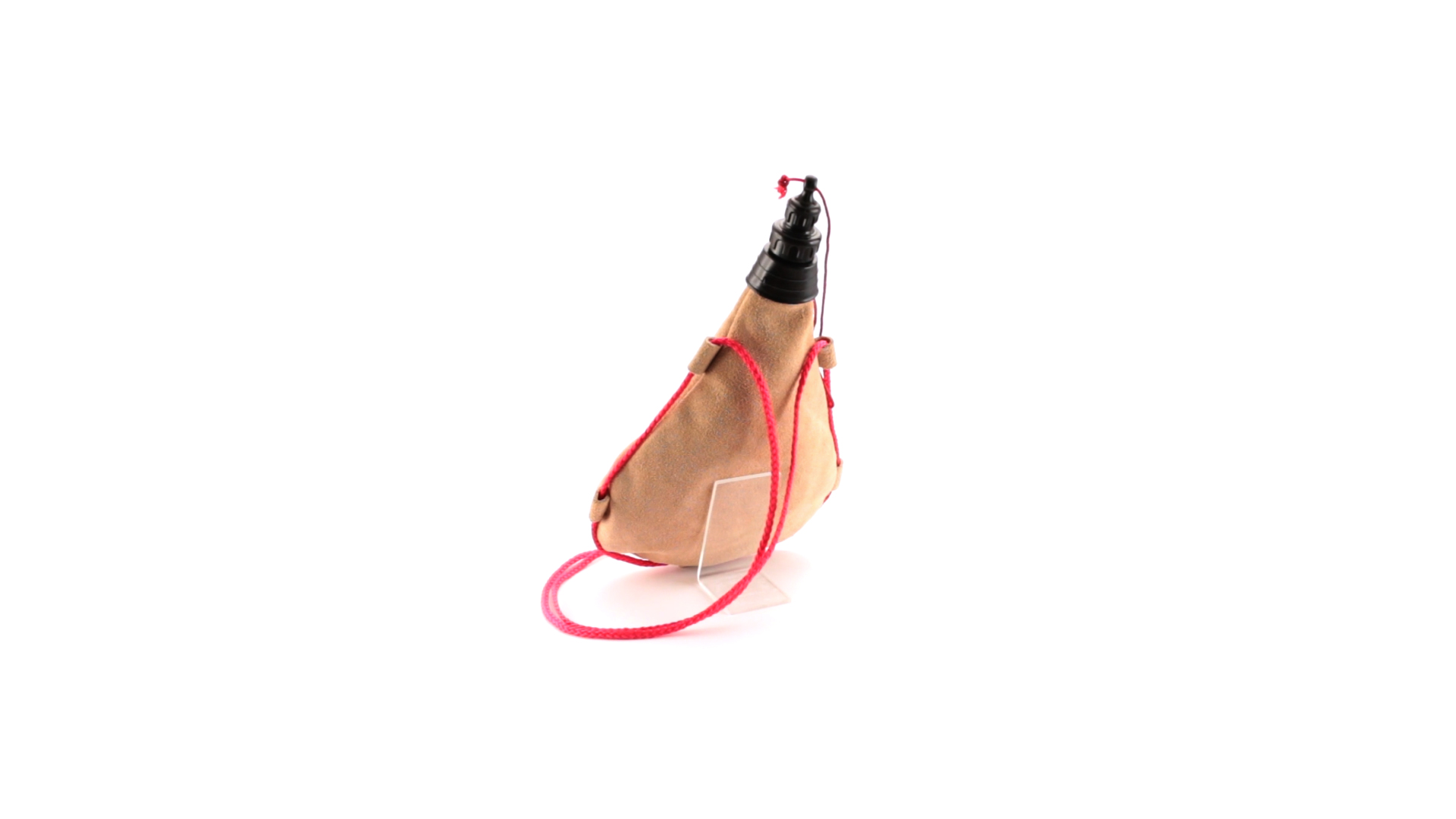 1 l Feldflasche aus Borkeleder. Mit Sicherheitsschraubverschluss und Schultergurt. Für den Lebensmittelgebrauch zugelassen.