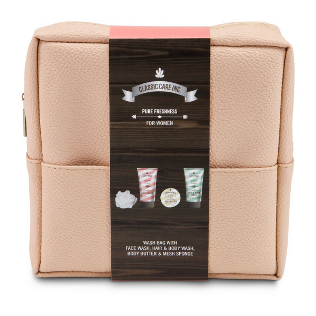 Bereite dich auf deine nächste Reise vor mit dem Wellness-Geschenkset Classic Care – Für Sie! Dieses kompakte Set in einer eleganten rosé-cremefarbenen Kosmetiktasche enthält alles, was du für deine Geschäftsreise oder deinen Urlaub brauchst. Ideal für unterwegs, ist es perfekt für die schnelle, aber gründliche Pflege.