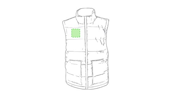 Weste aus einer warmen und weichen Nylon/Polyester-Kombination. Mit Polsterung aus recyceltem PET, Reissverschluss mit Zugband und grossen Seitentaschen. Erhältlich in den Grössen M, L, XL und XXL.