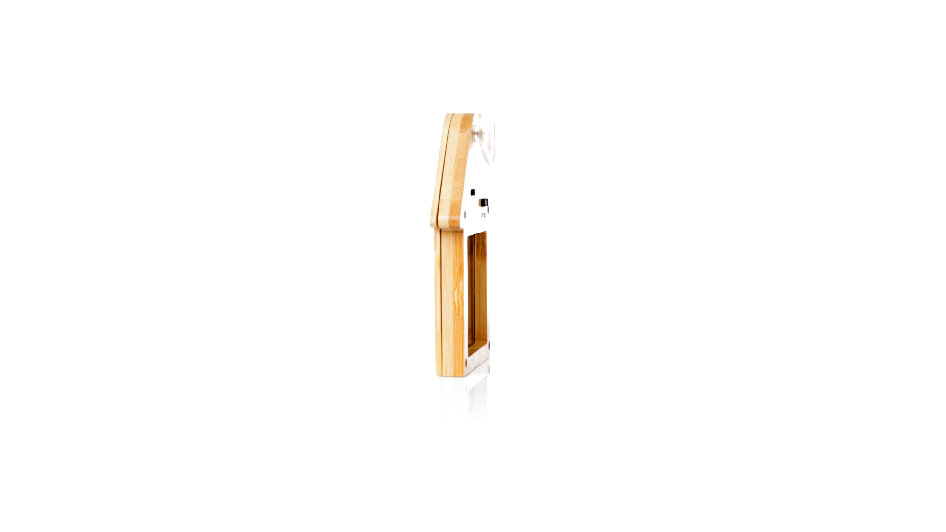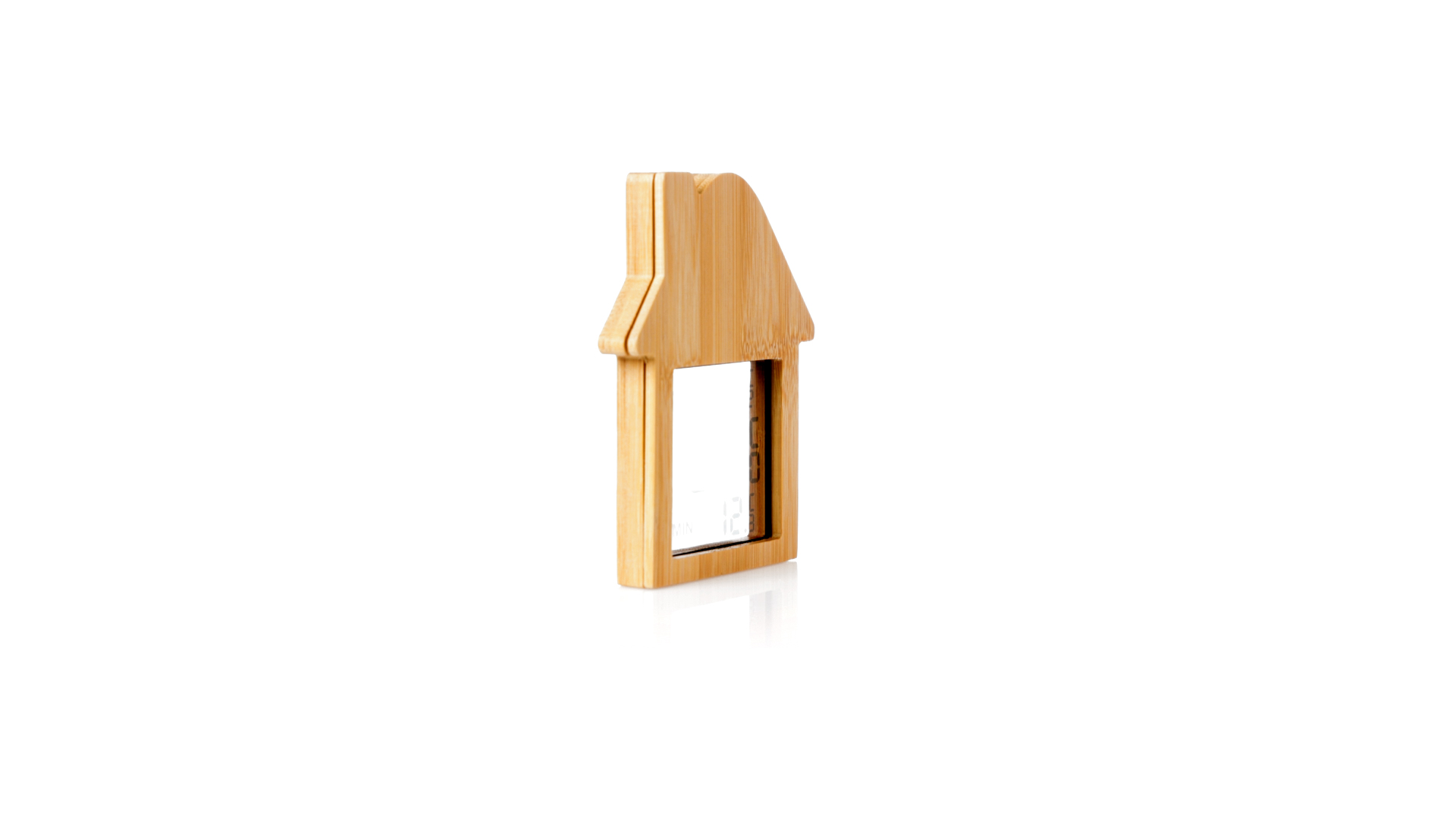 Wetterstation aus Bambus mit Saugnapfbefestigung. Gut ablesbares LCD-Display mit Thermometer, Maximum-/Minimum-Temperaturregister und Uhr. Batteriebetrieben (Knopfzelle im Lieferumfang enthalten). Präsentiert in einer individuellen Kraftpapier-Designbox, mit Bedienungsanleitung in Englisch und Spanisch.