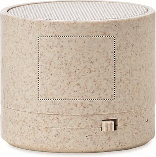 5.0 wireless-Lautsprecher aus Weizenstroh (35%) und ABS (65%). LED-Lichtanzeige. Inkl. wieder aufladbare Lithium 300 mAh Batterie. Spielzeit ca. 2h. Ausgangsleistung: 3W, 3 Ohm und 5V.