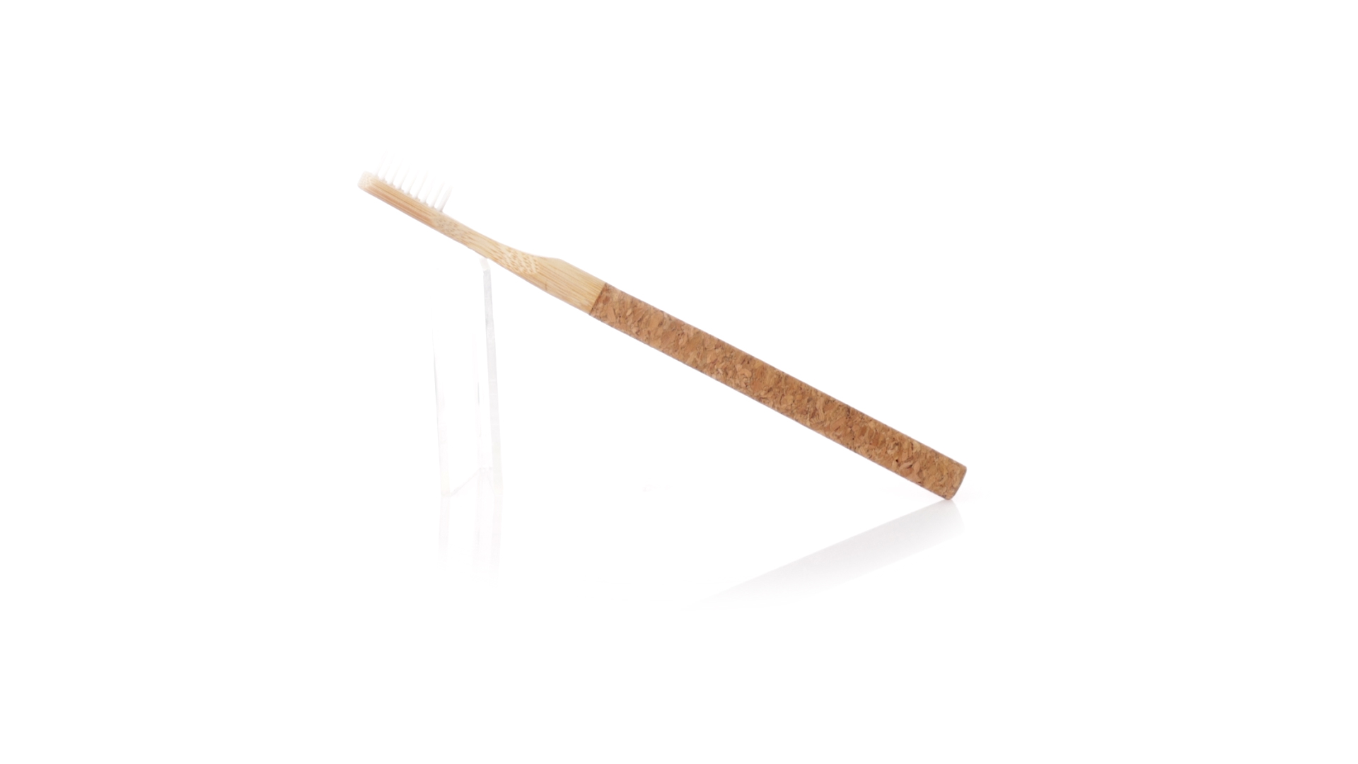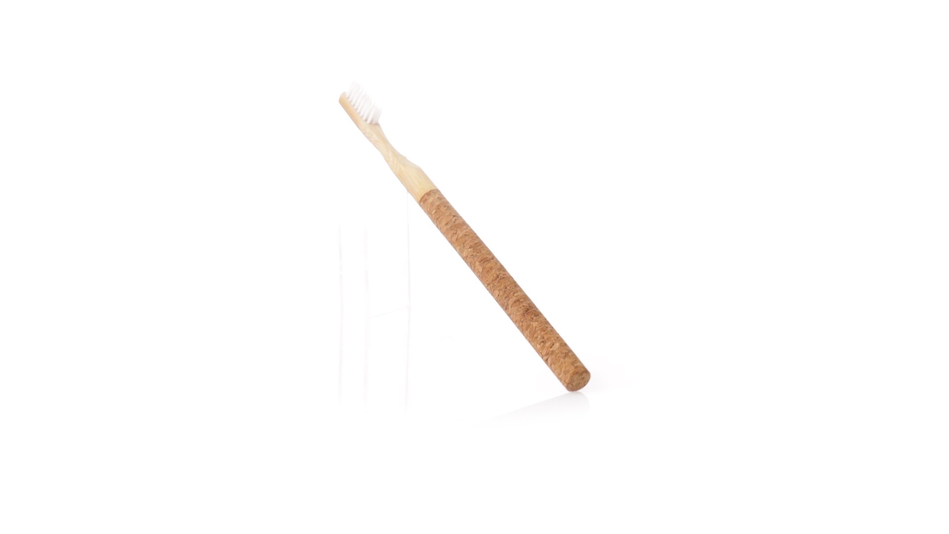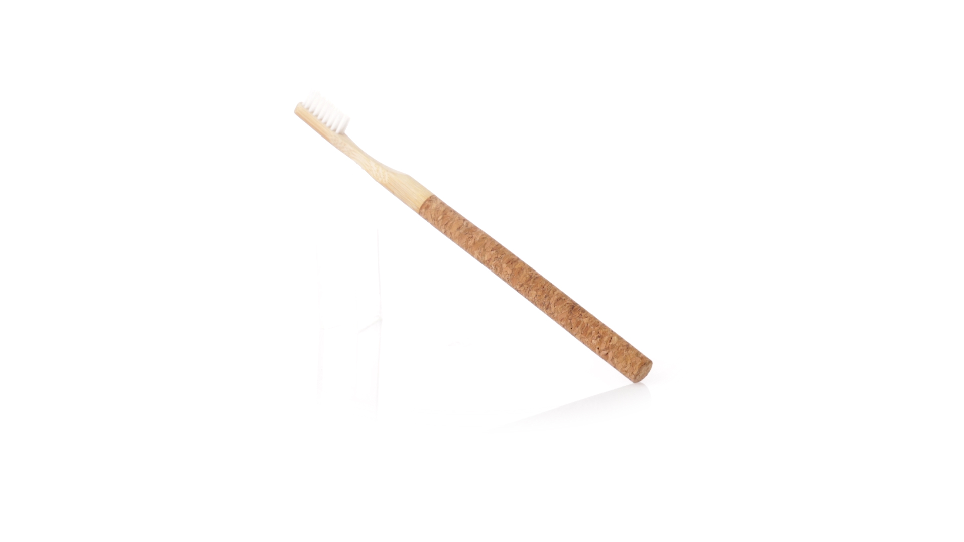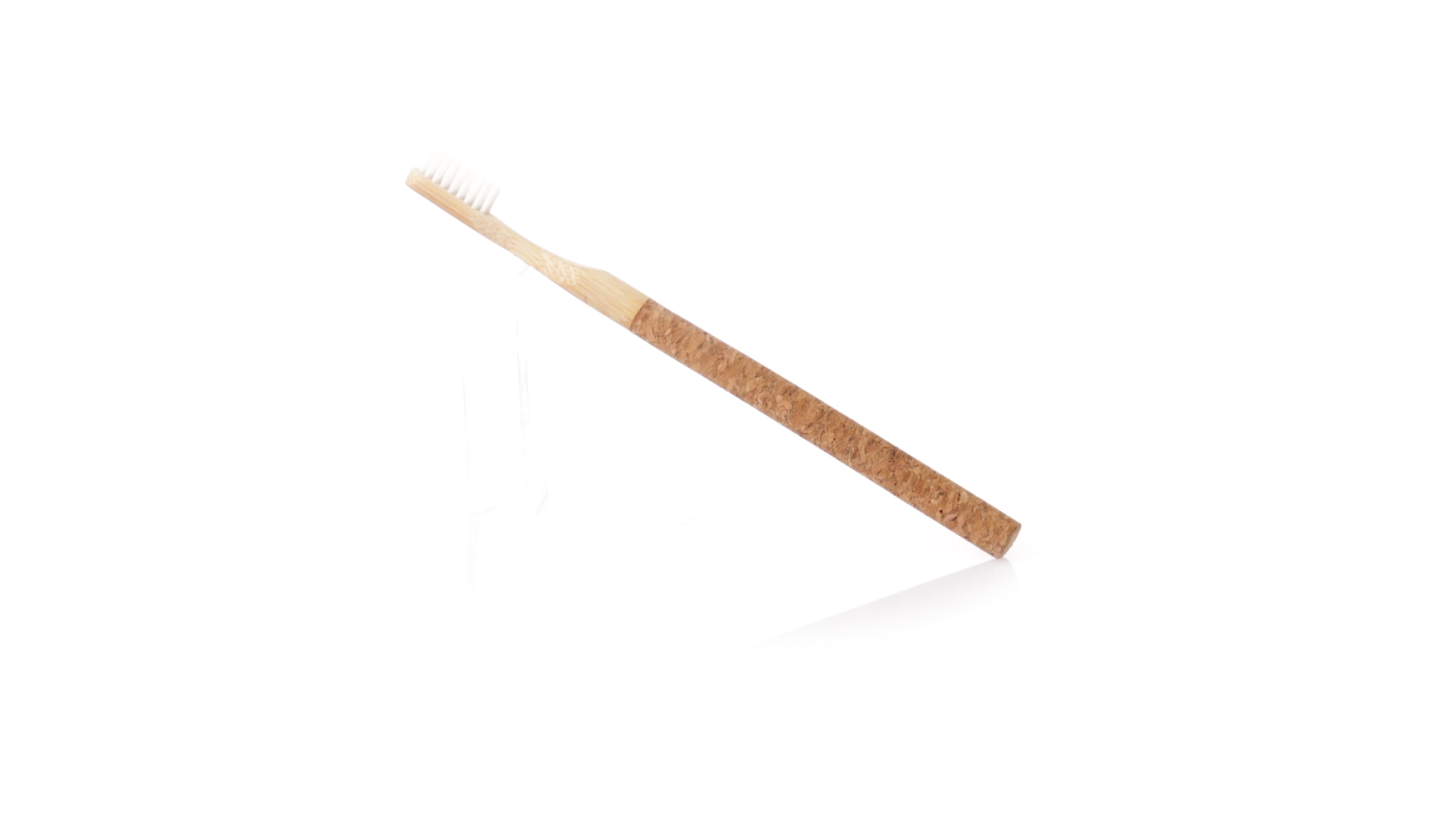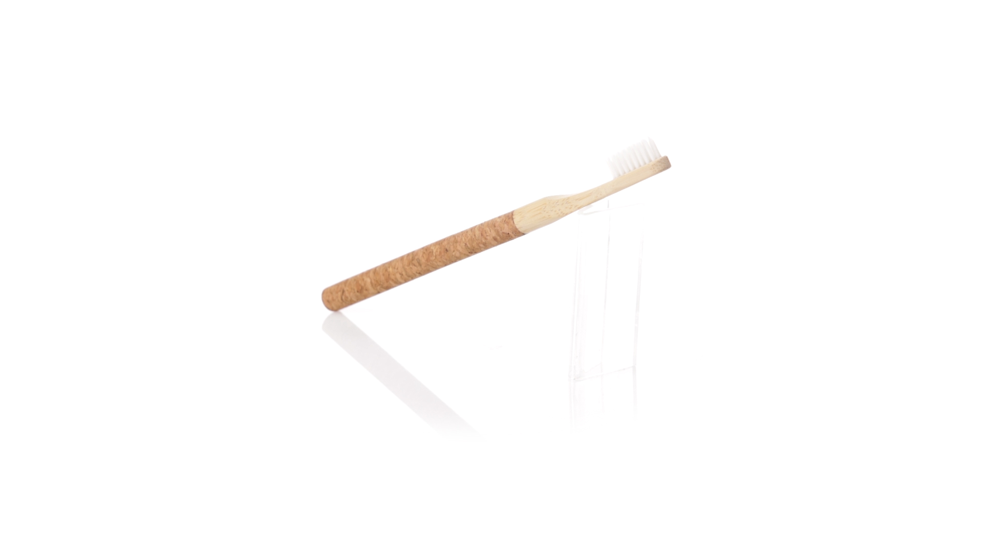 Linie Natur Zahnbürste. Mit einem Griff aus Naturkork und einem Korpus aus Bambus, der die Verwendung von natürlichen und nachhaltigen Rohstoffen fördert.