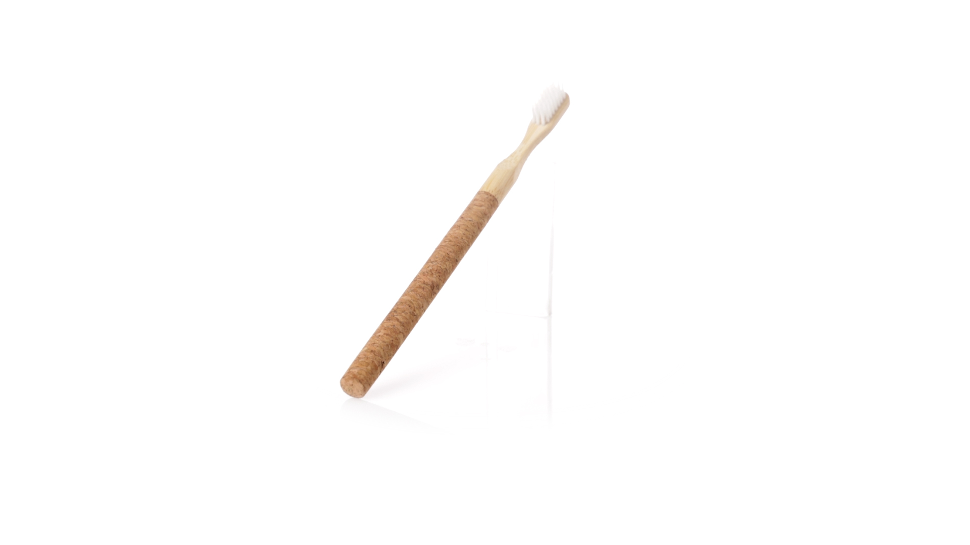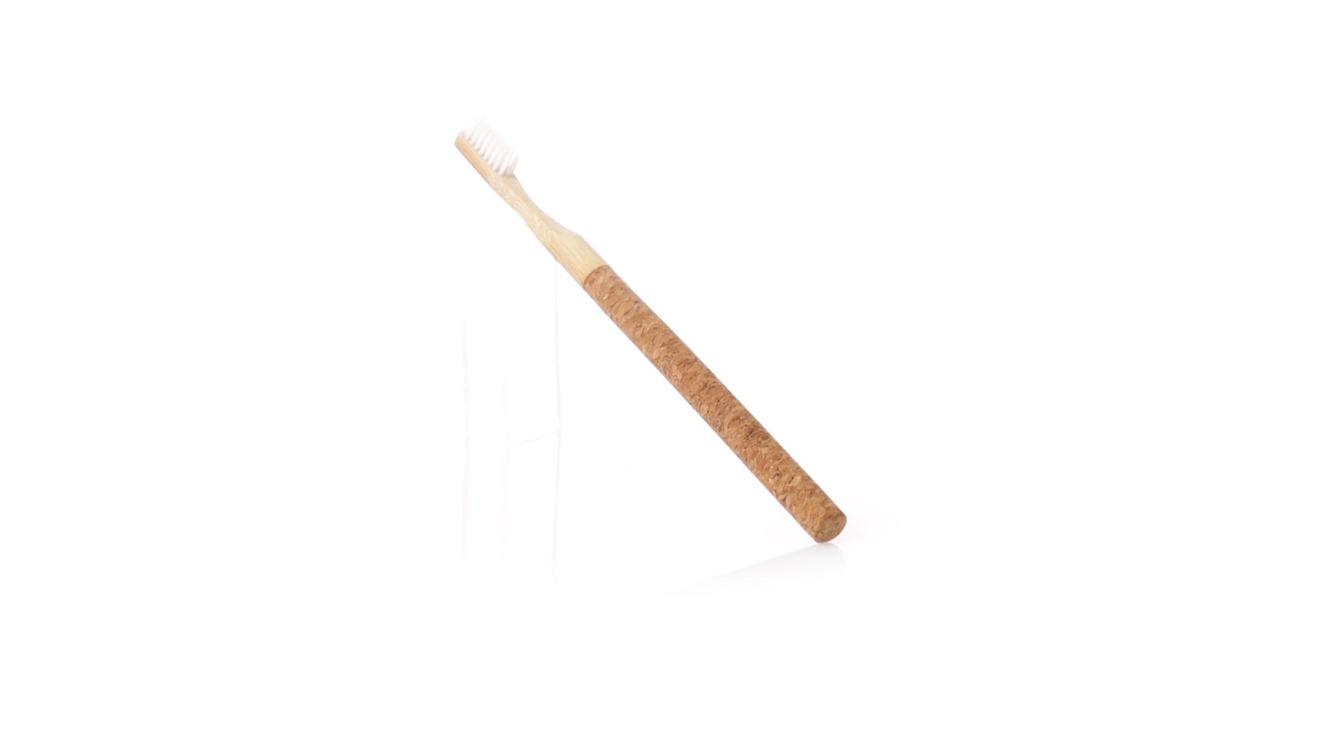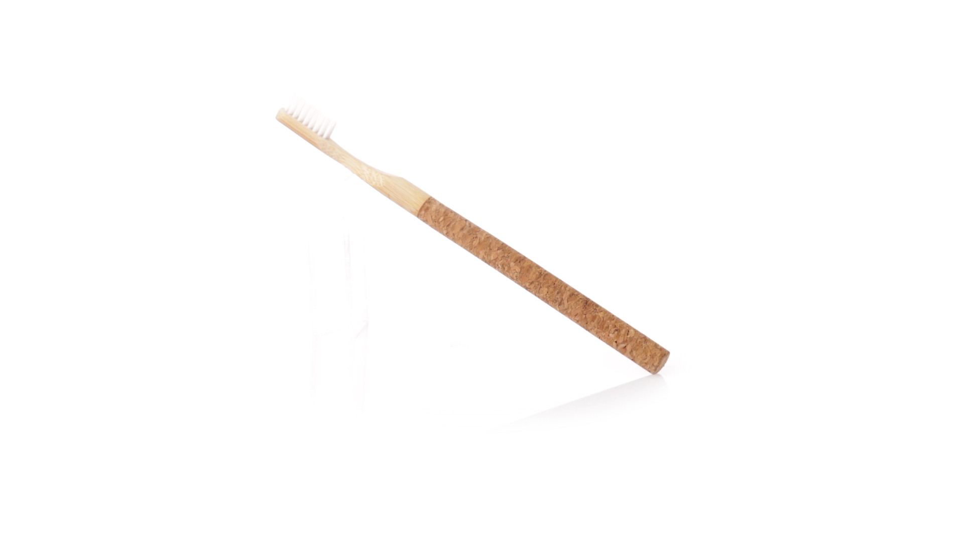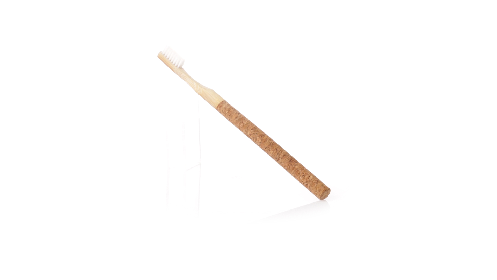 Linie Natur Zahnbürste. Mit einem Griff aus Naturkork und einem Korpus aus Bambus, der die Verwendung von natürlichen und nachhaltigen Rohstoffen fördert.