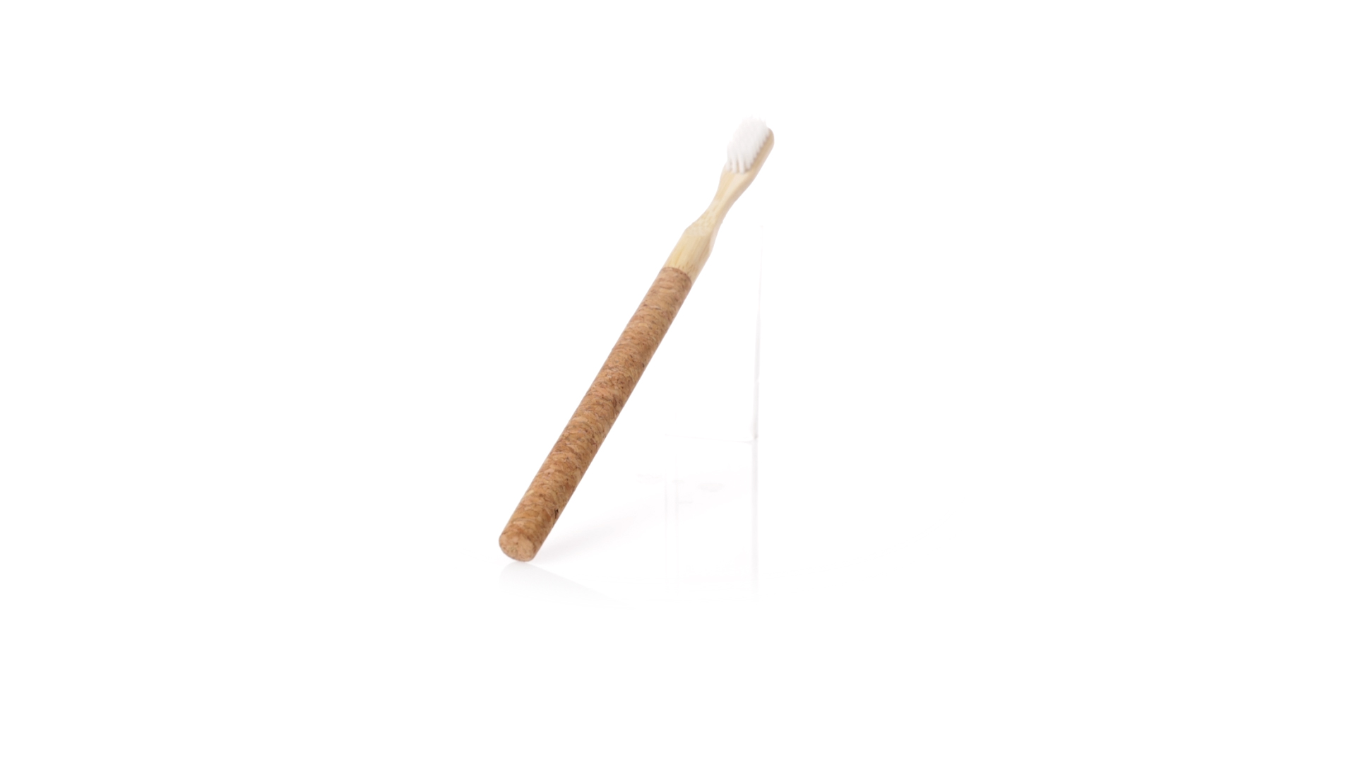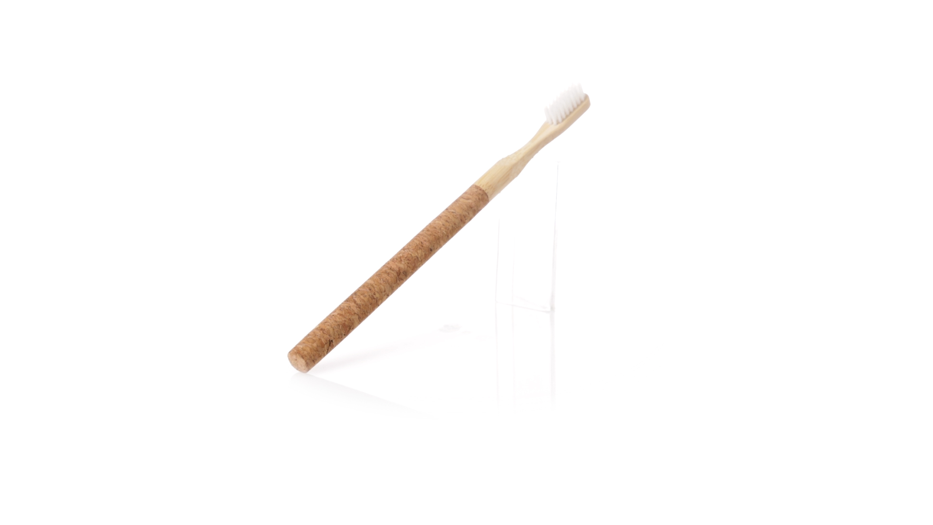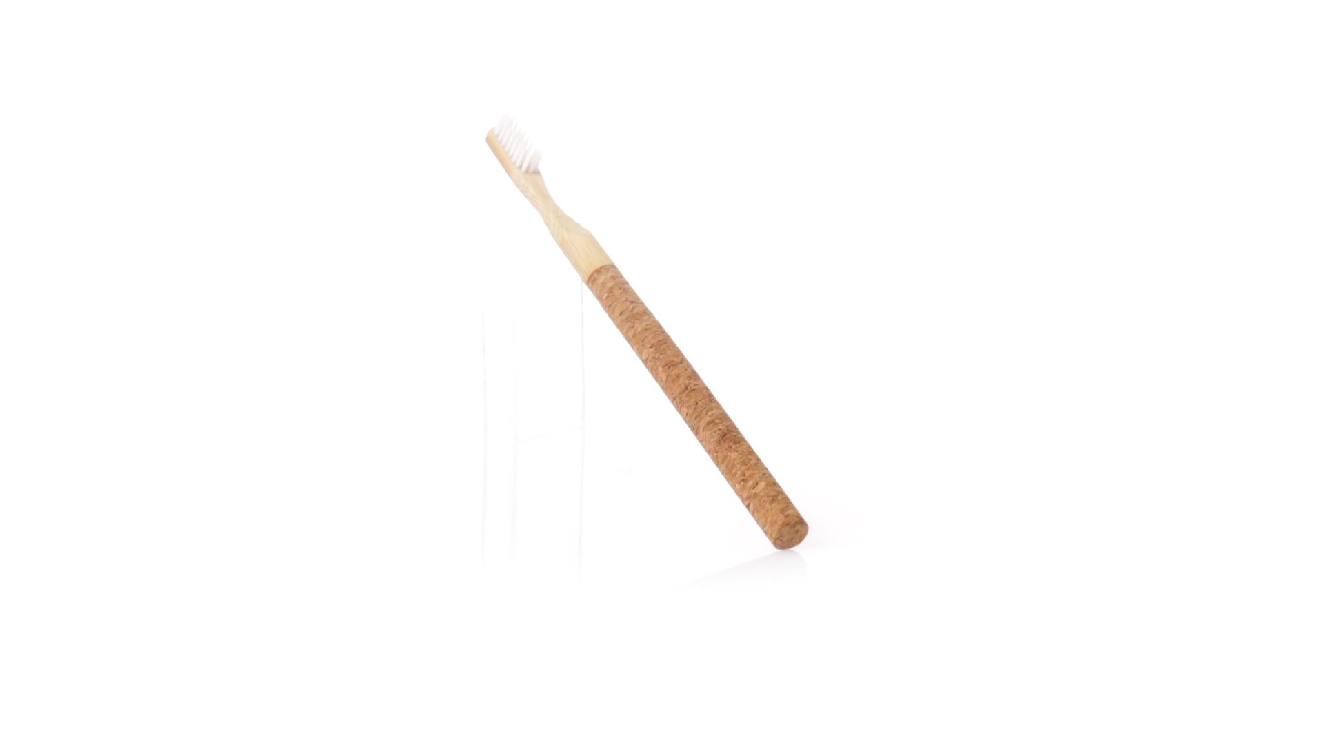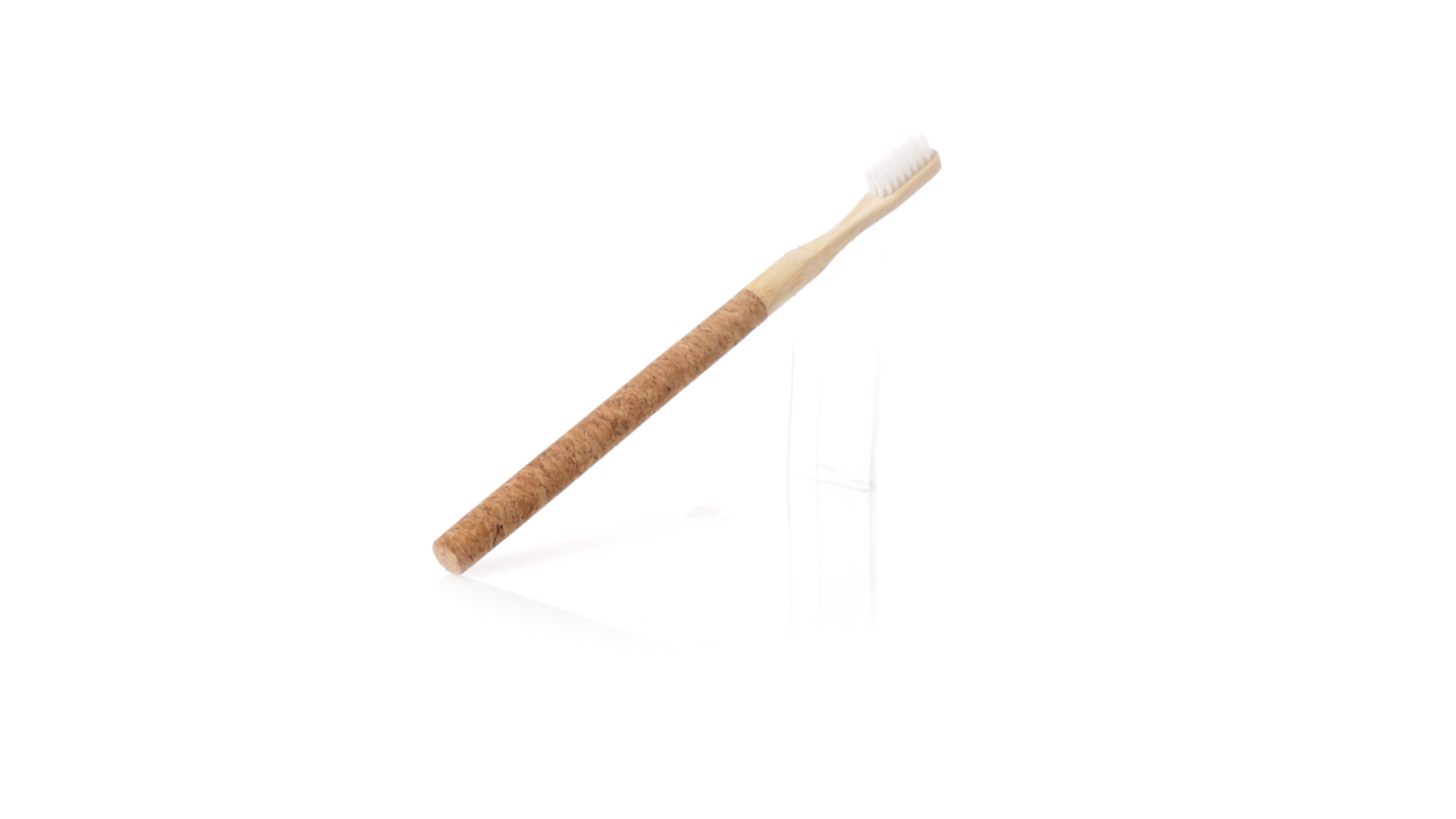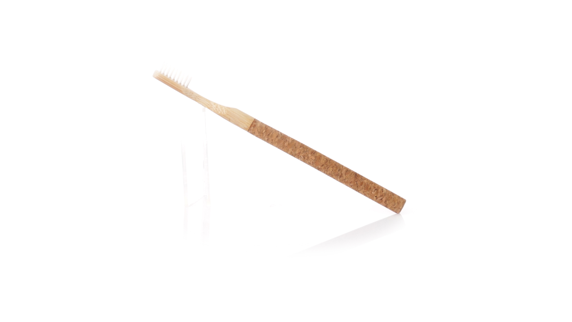 Linie Natur Zahnbürste. Mit einem Griff aus Naturkork und einem Korpus aus Bambus, der die Verwendung von natürlichen und nachhaltigen Rohstoffen fördert.