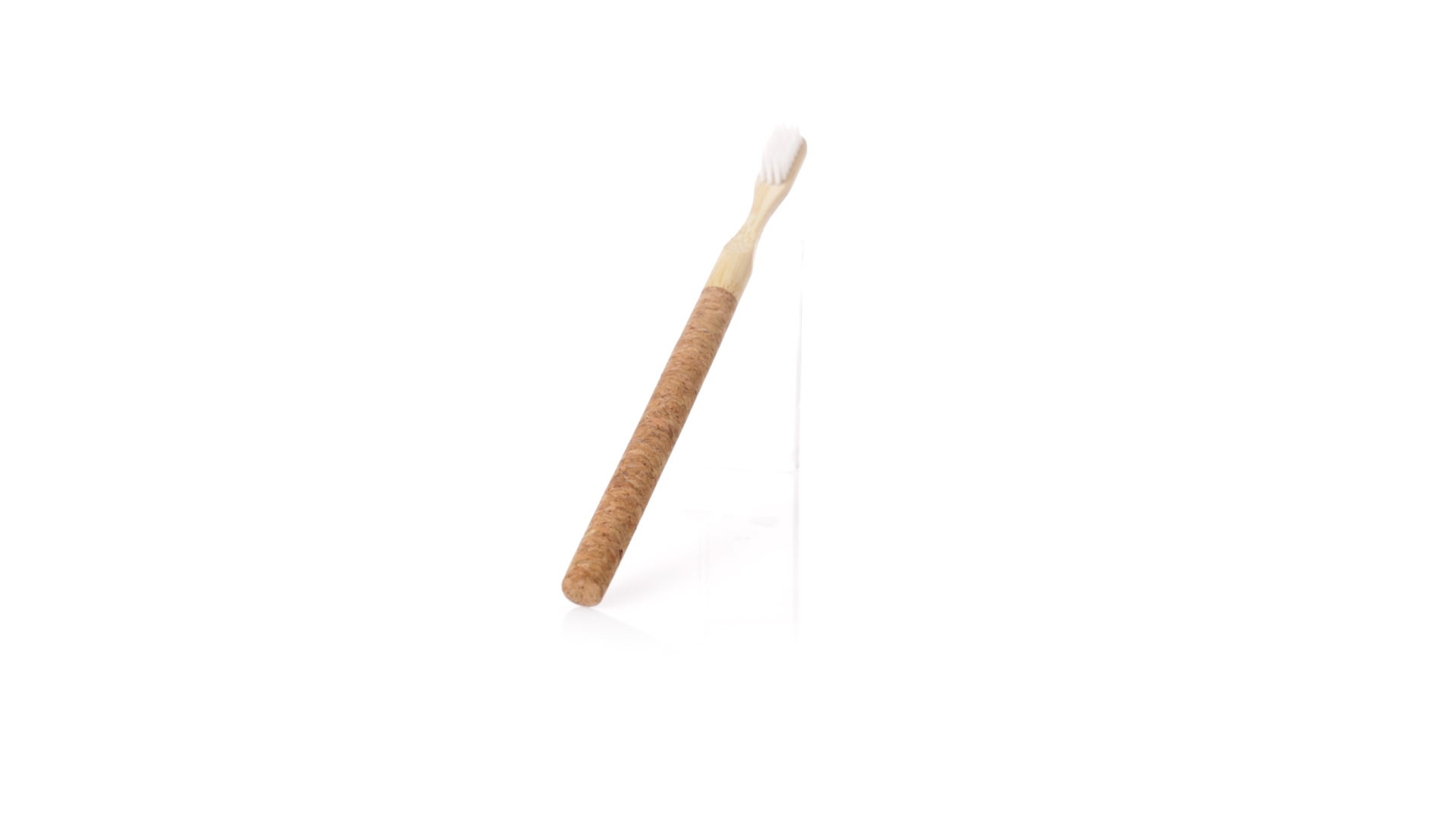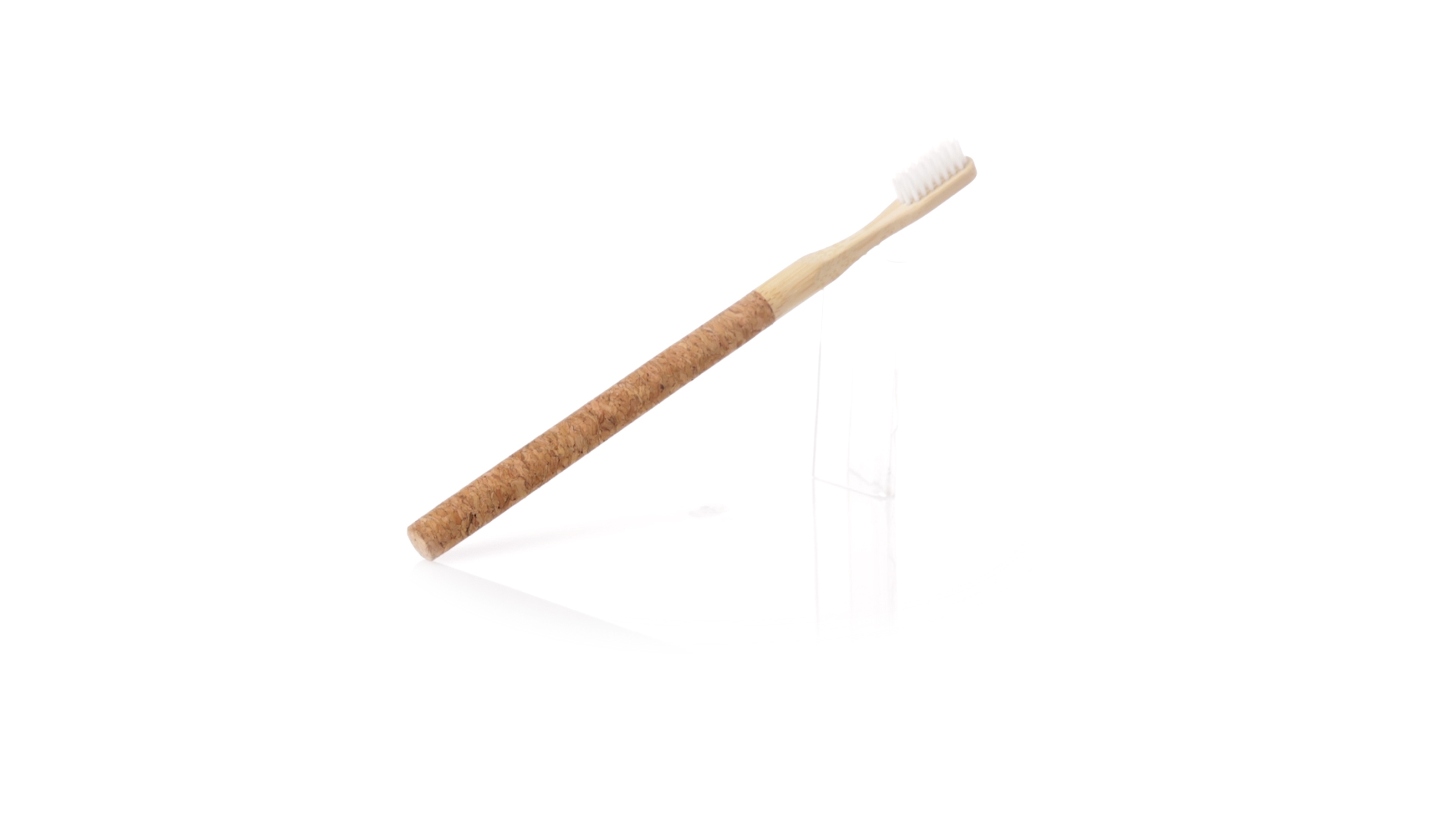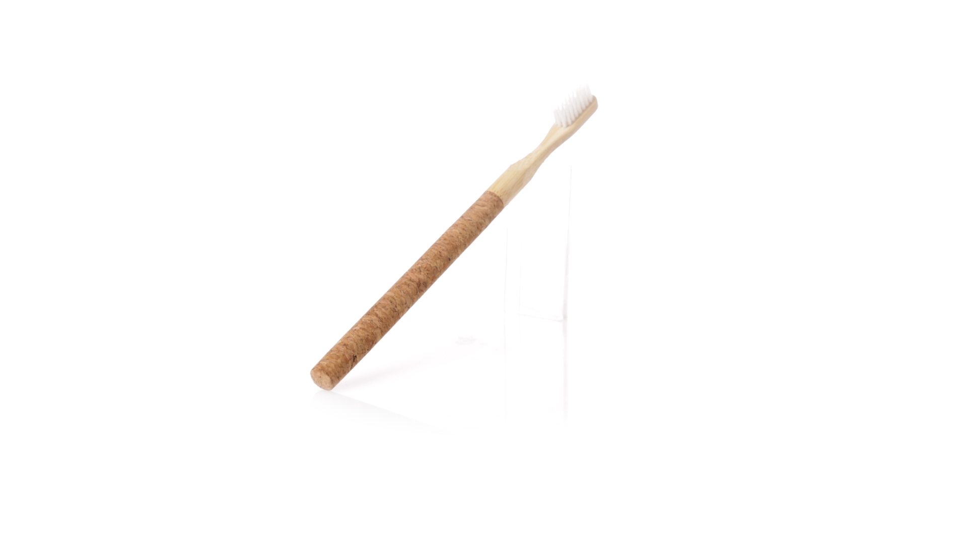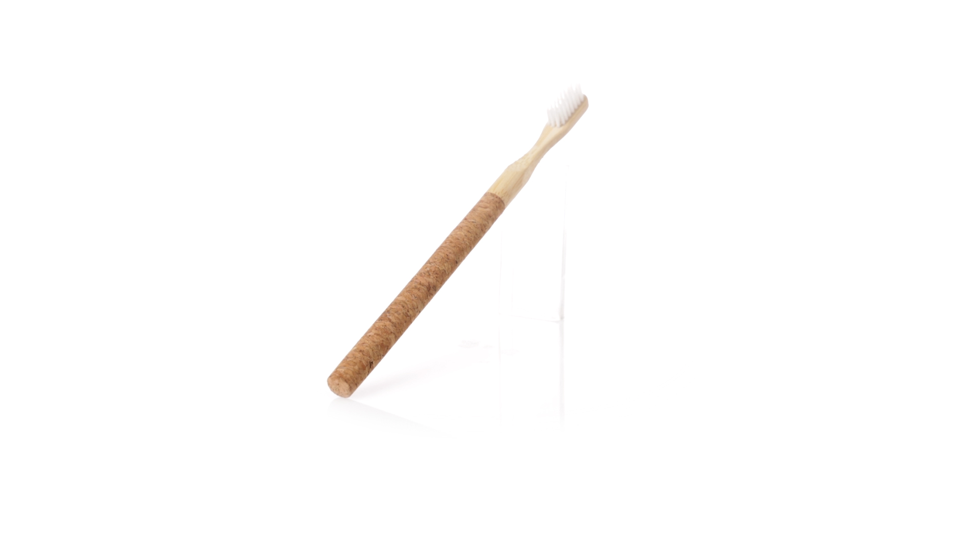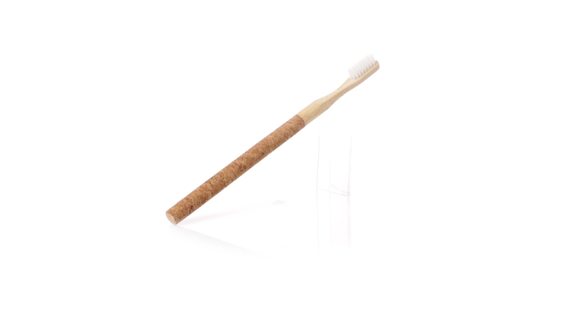 Linie Natur Zahnbürste. Mit einem Griff aus Naturkork und einem Korpus aus Bambus, der die Verwendung von natürlichen und nachhaltigen Rohstoffen fördert.