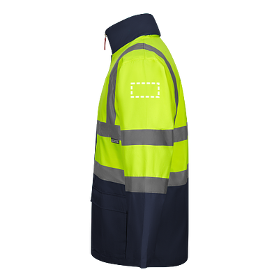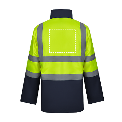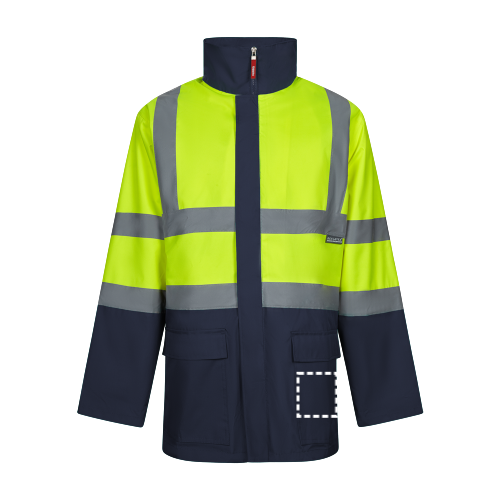 Zweifarbiger 4-in-1-Parka (180 g/m²), aus Polyester (100%) mit PU-Beschichtung. Vier in einem: Parka, Regenmantel, Jacke und Weste.Parka/Regenmantel: mit verdecktem Zentralklettverschluss, Reflexstreifen an Rumpf, Schultern und Ärmeln und verdeckter Kapuze, mit zwei Taschen unten.Jacke/Weste: mit zentralem Reissverschluss, Reflexstreifen an Rumpf und Schultern, Rippenbündchen und abnehmbaren Ärmeln. Mit drei Taschen (2 Taschen unten und 1 Innentasche). Produkt gemäss EU-Verordnung 2016/425, zertifiziert nach EN20471 und Klasse Nº 2. Grösse: S, M, L, XL, 2XL, 3XL